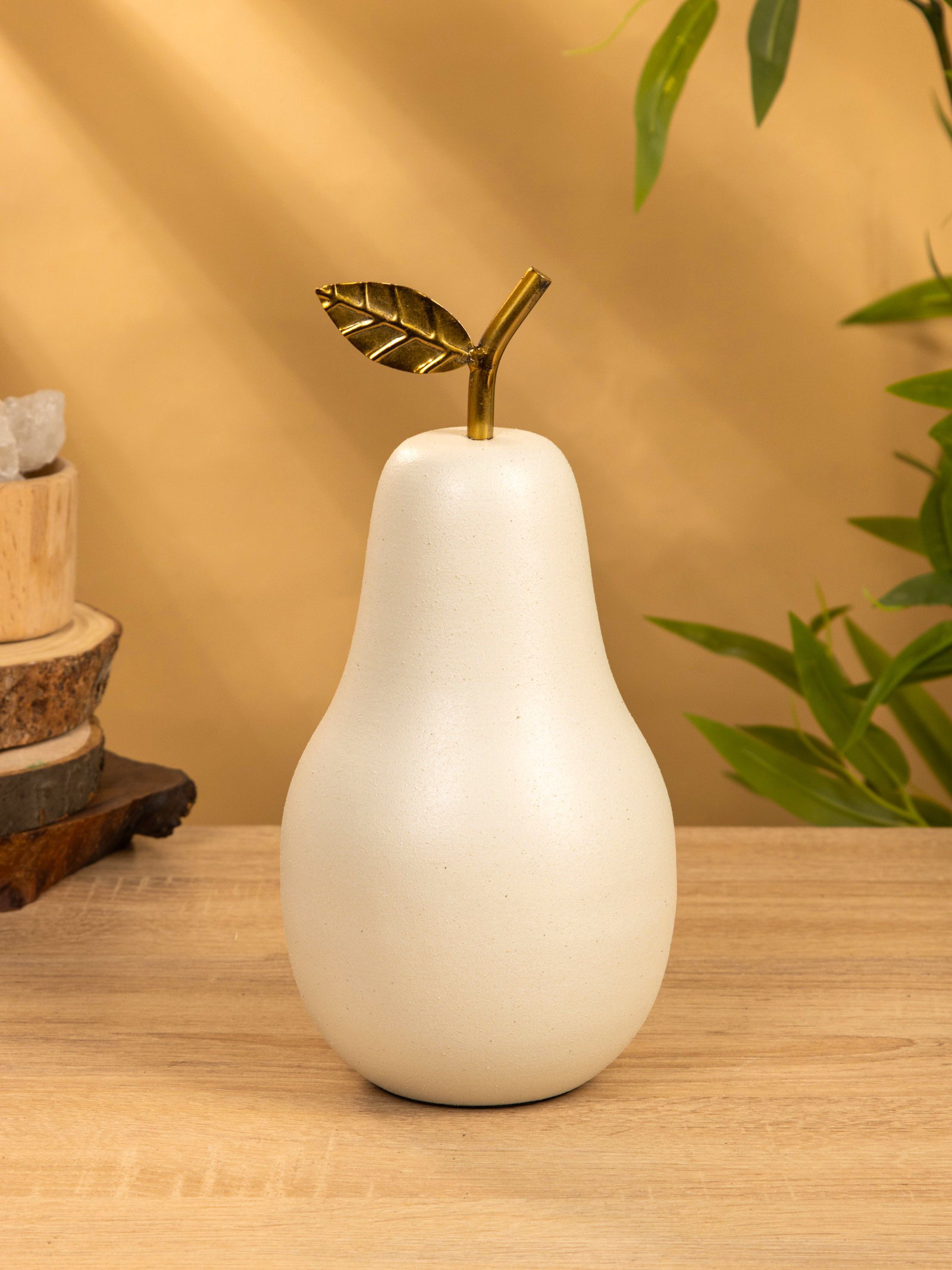 Сувенир "Груша с золотым листом" 12х12х25 см, цв. матовый белый, 12x12x25 см., Индия