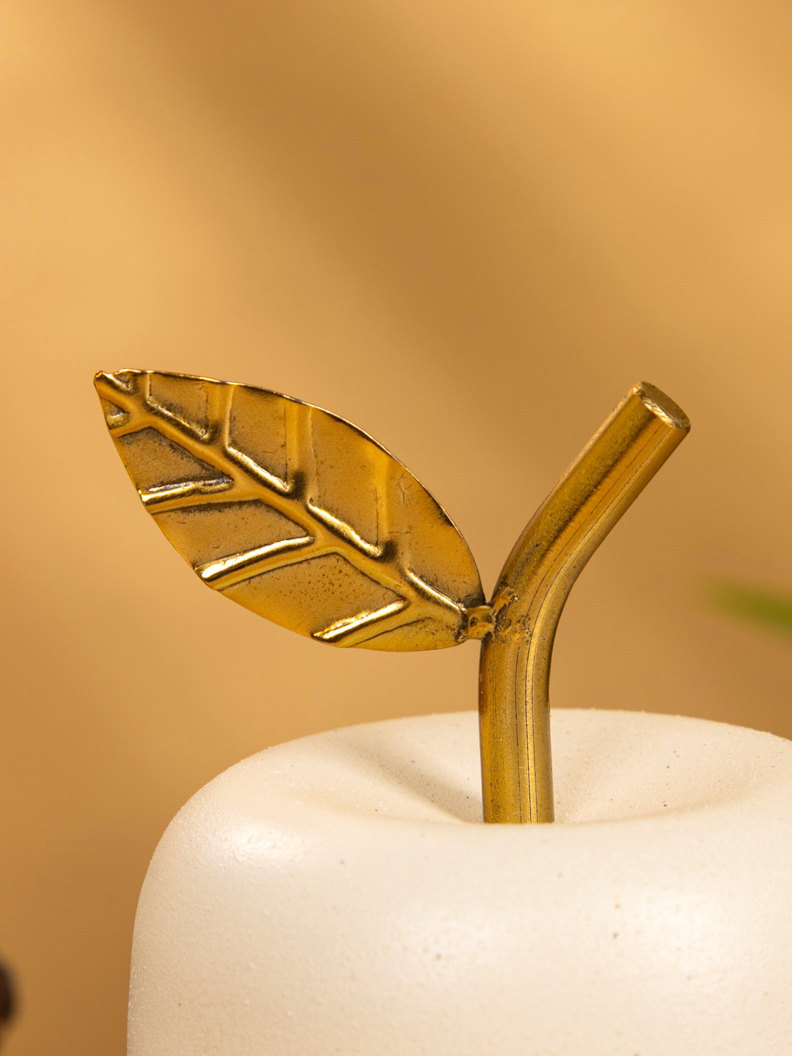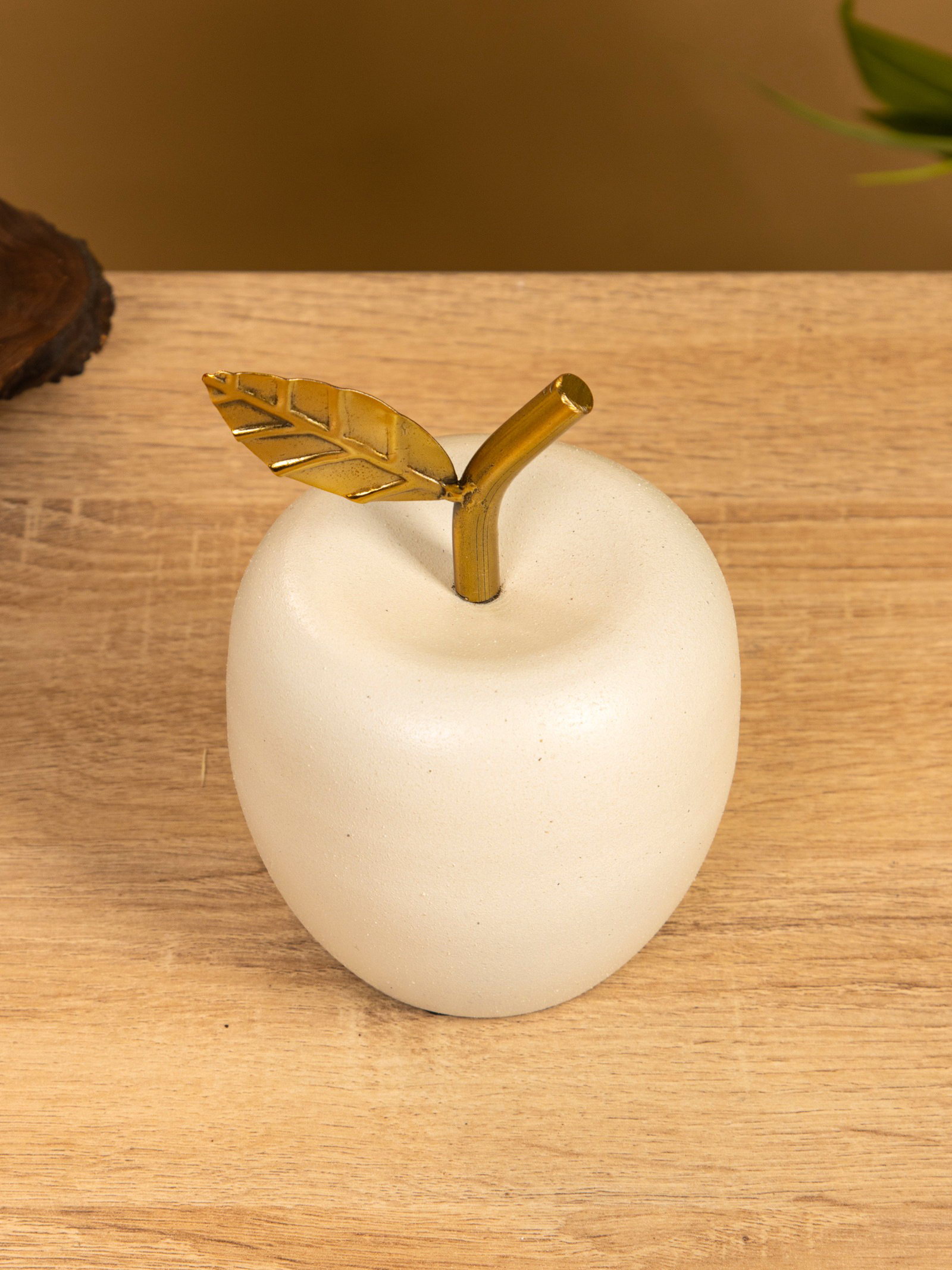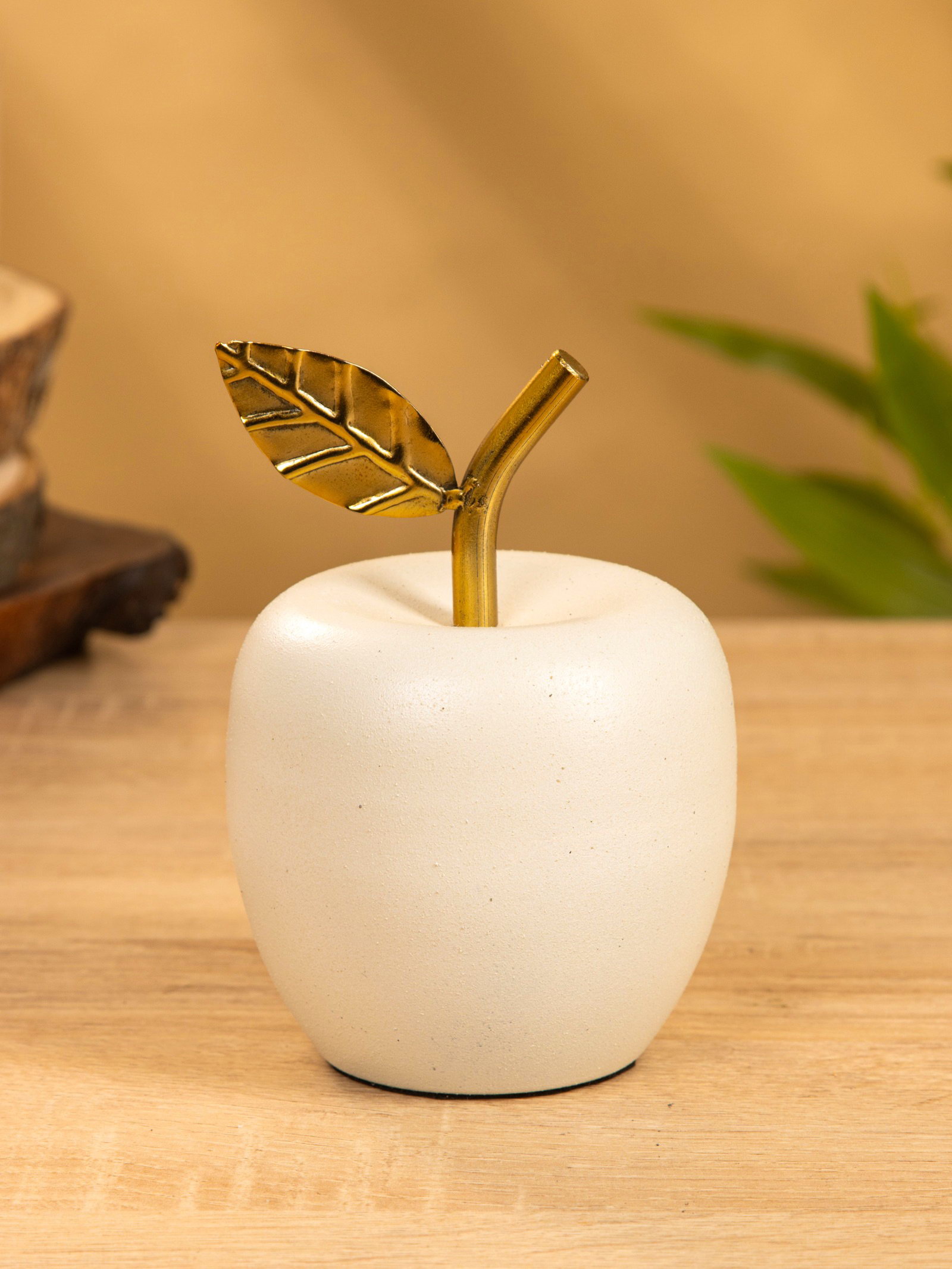 Сувенир "Яблоко с золотым листом" 10х10х12 см, цв. матовый белый, 10x10x12 см., Индия