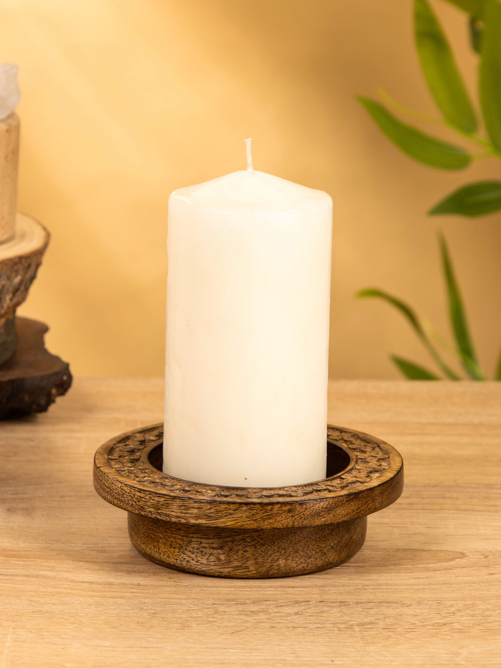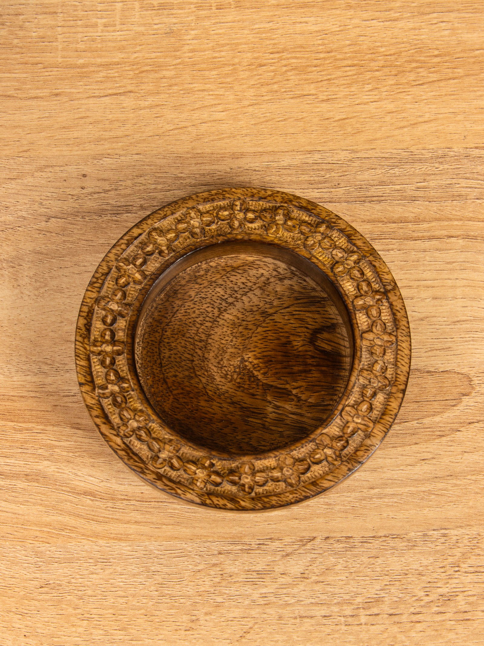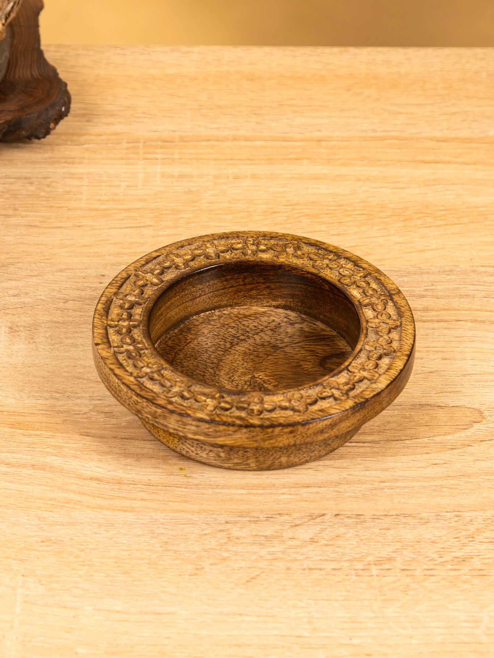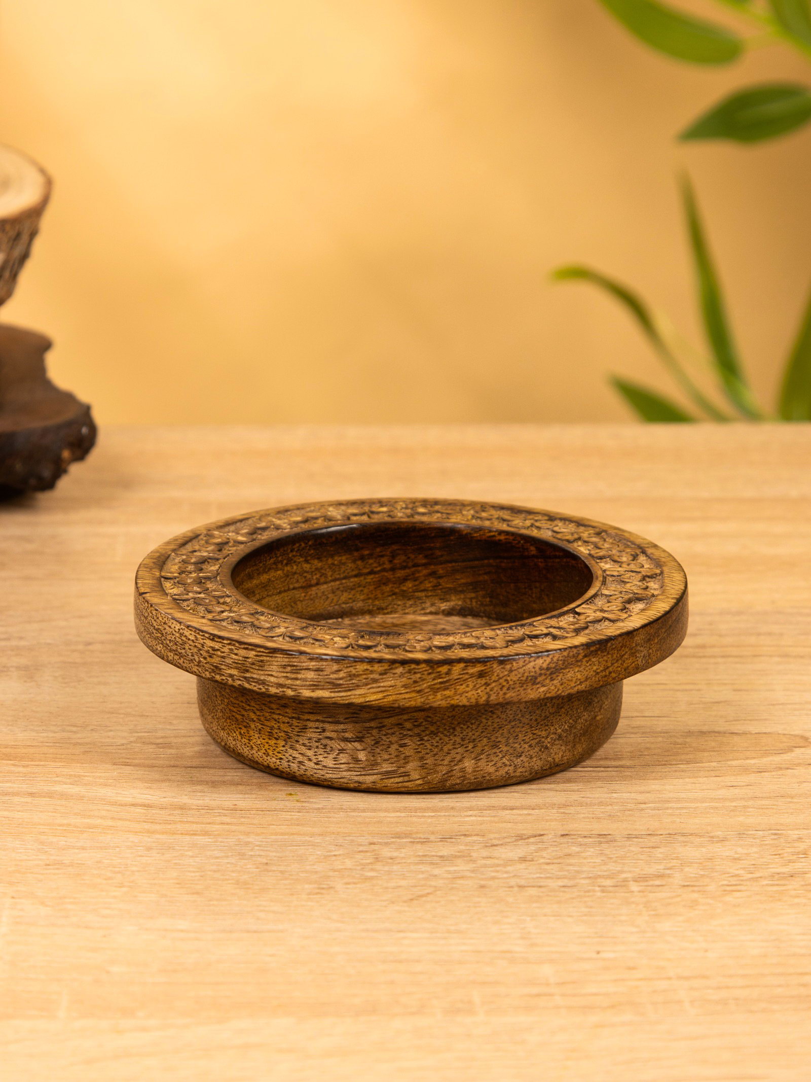 Подсвечник для свечи 8 см "Клевер" 13х13х3.5 см, манговое дерево, 12x12x3.5 см., Индия