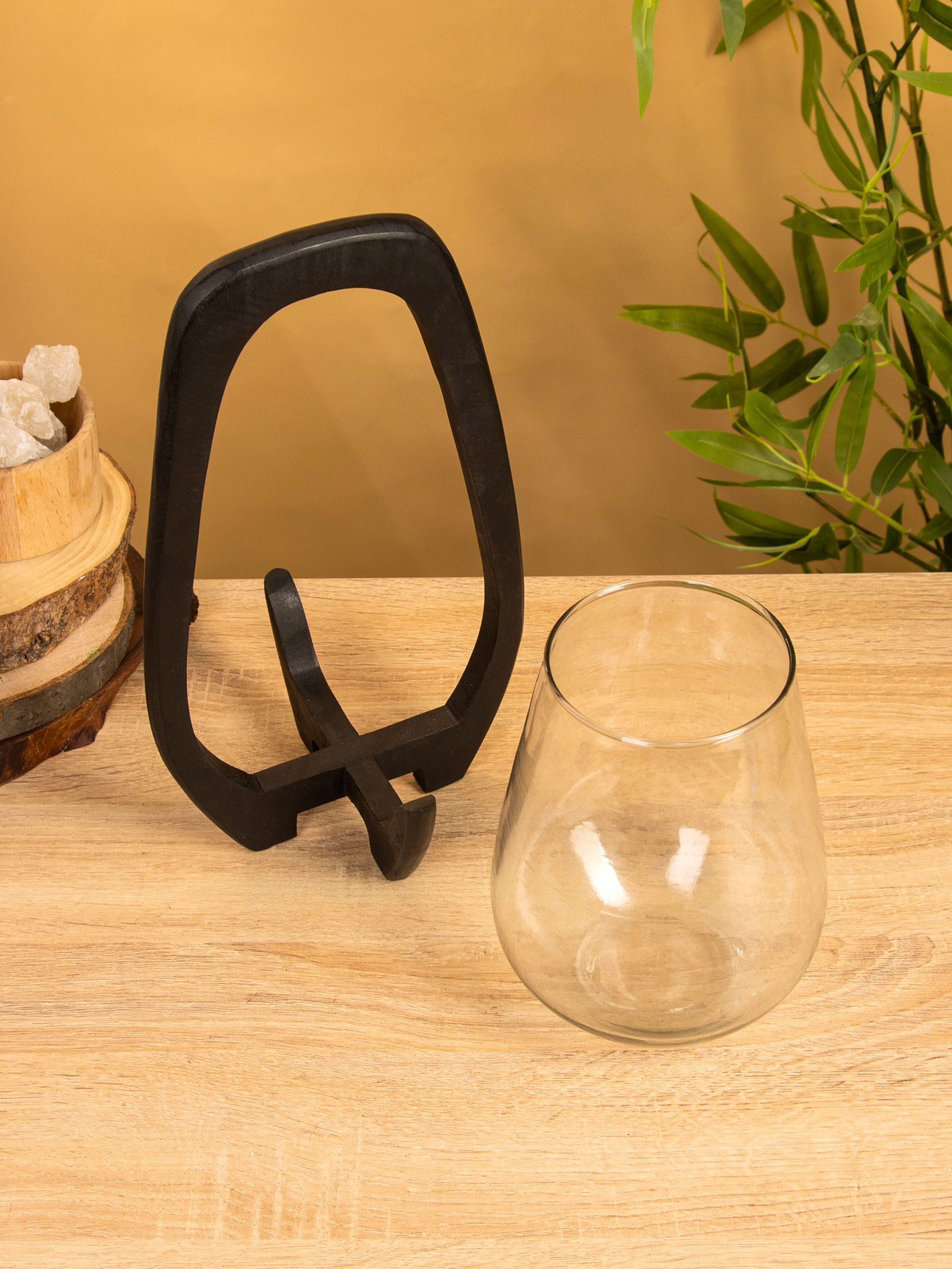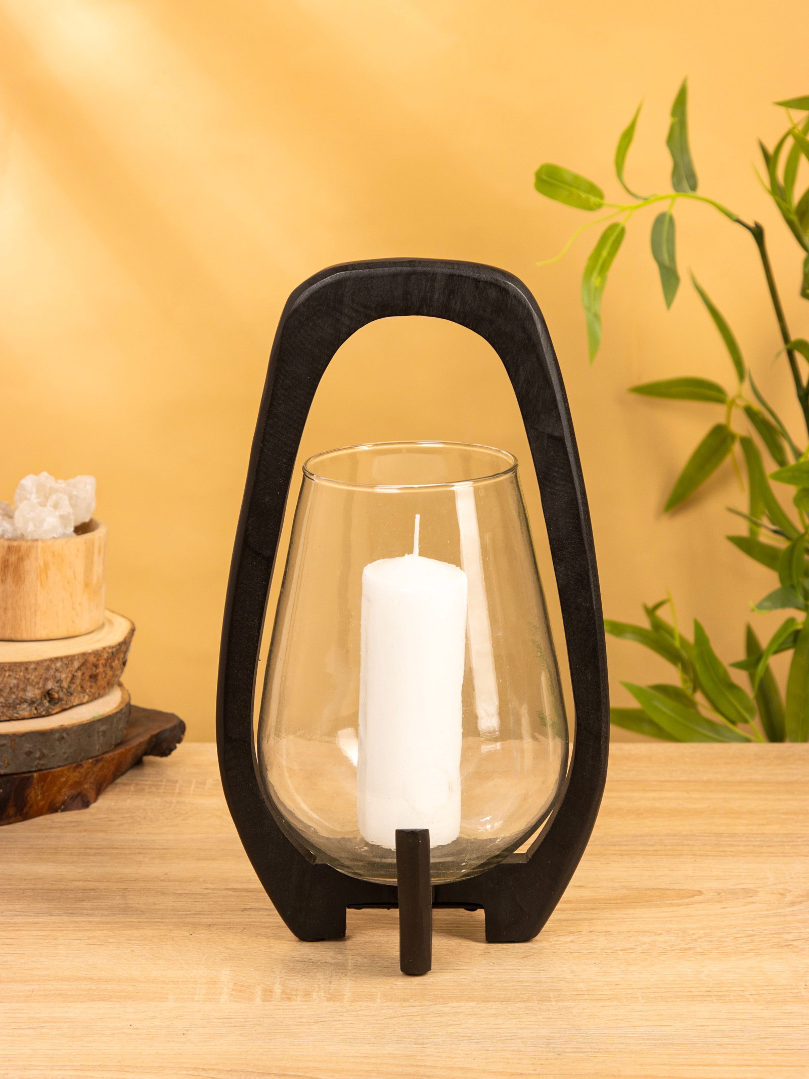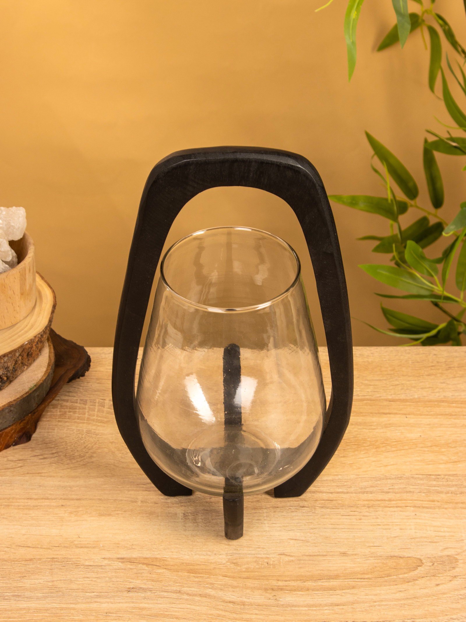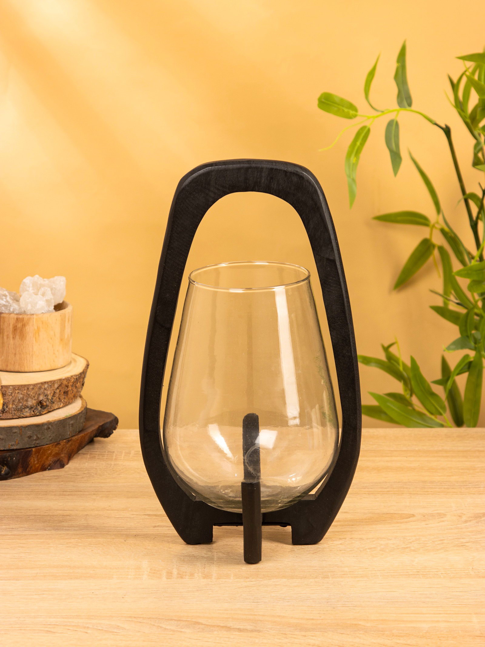 Подсвечник "Аура", 18x19x33 см, стекло, дерево, 19x18x33 см., Индия
