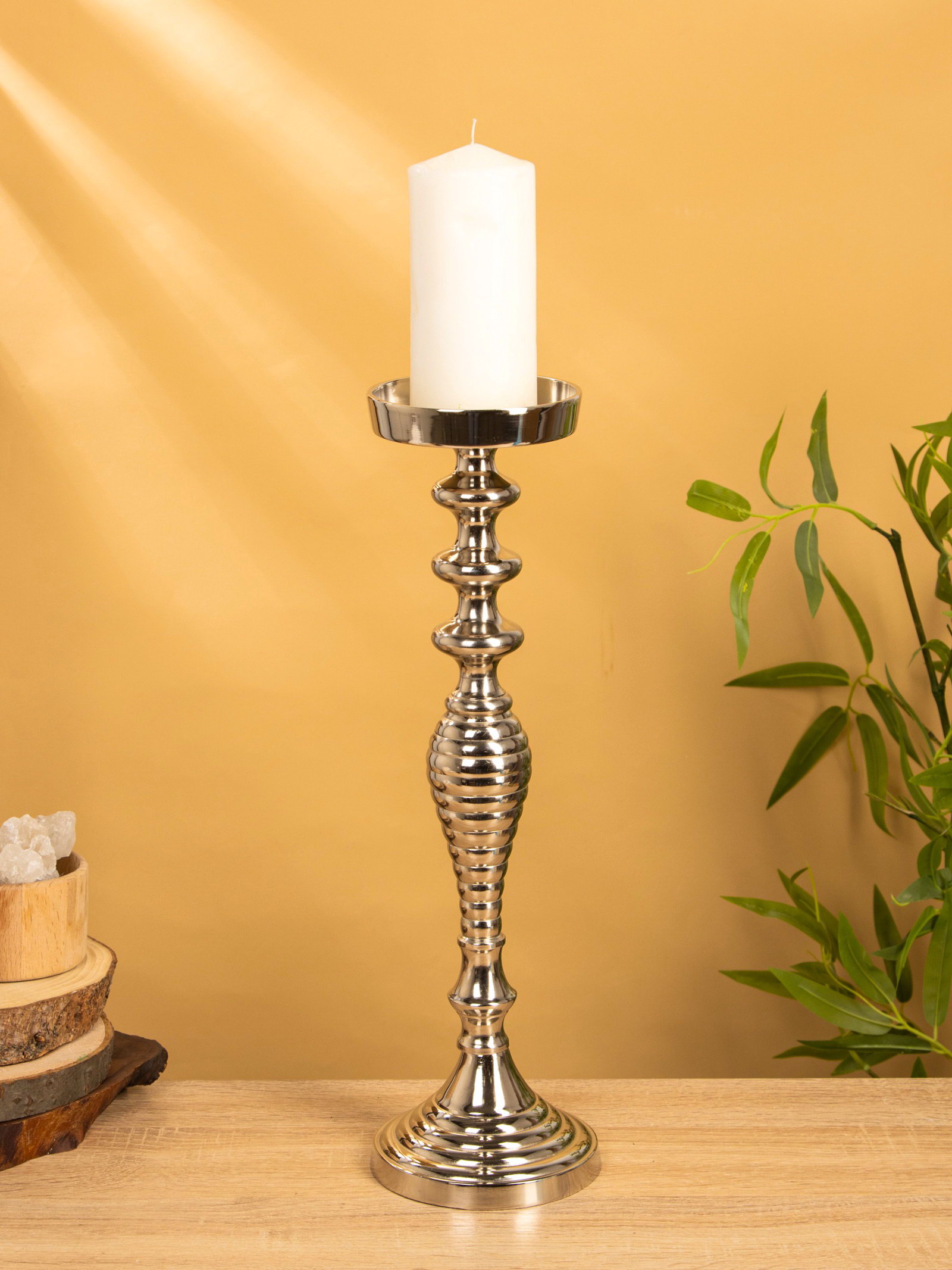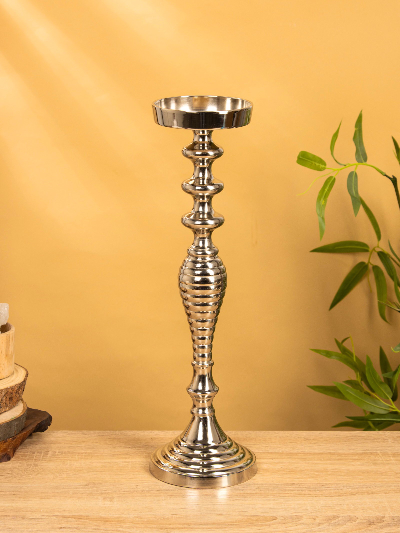 Подсвечник "Кубок", 13x13x43 см, алюминий, серебристый, 13x13x43 см., Индия