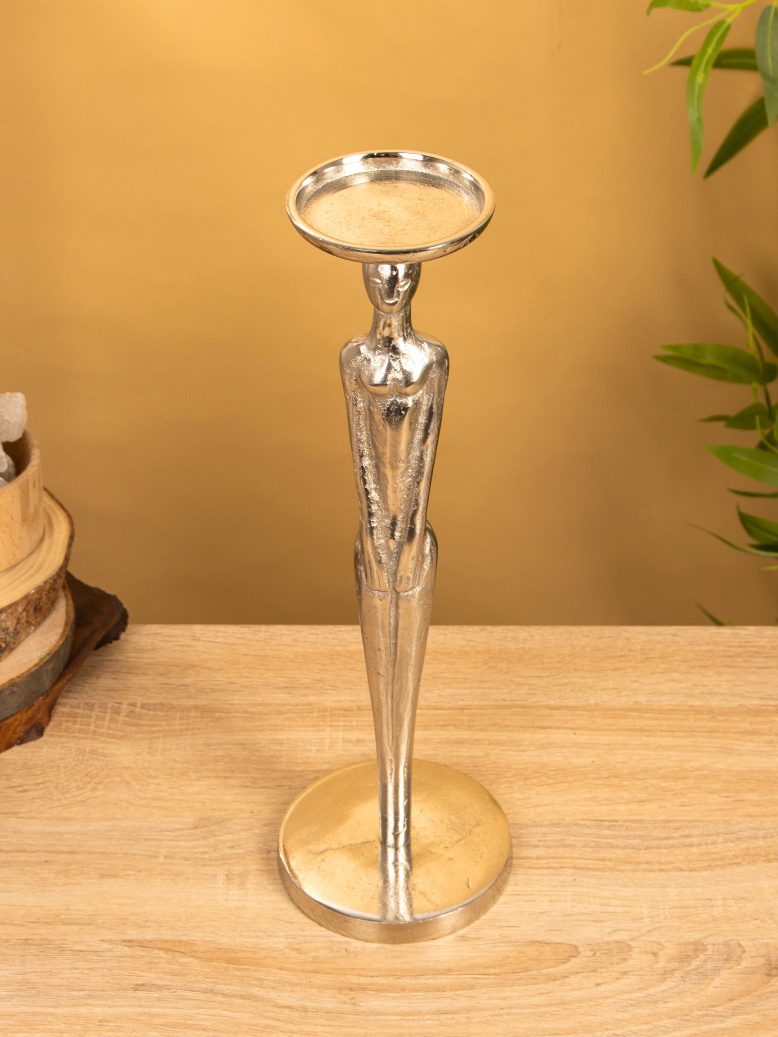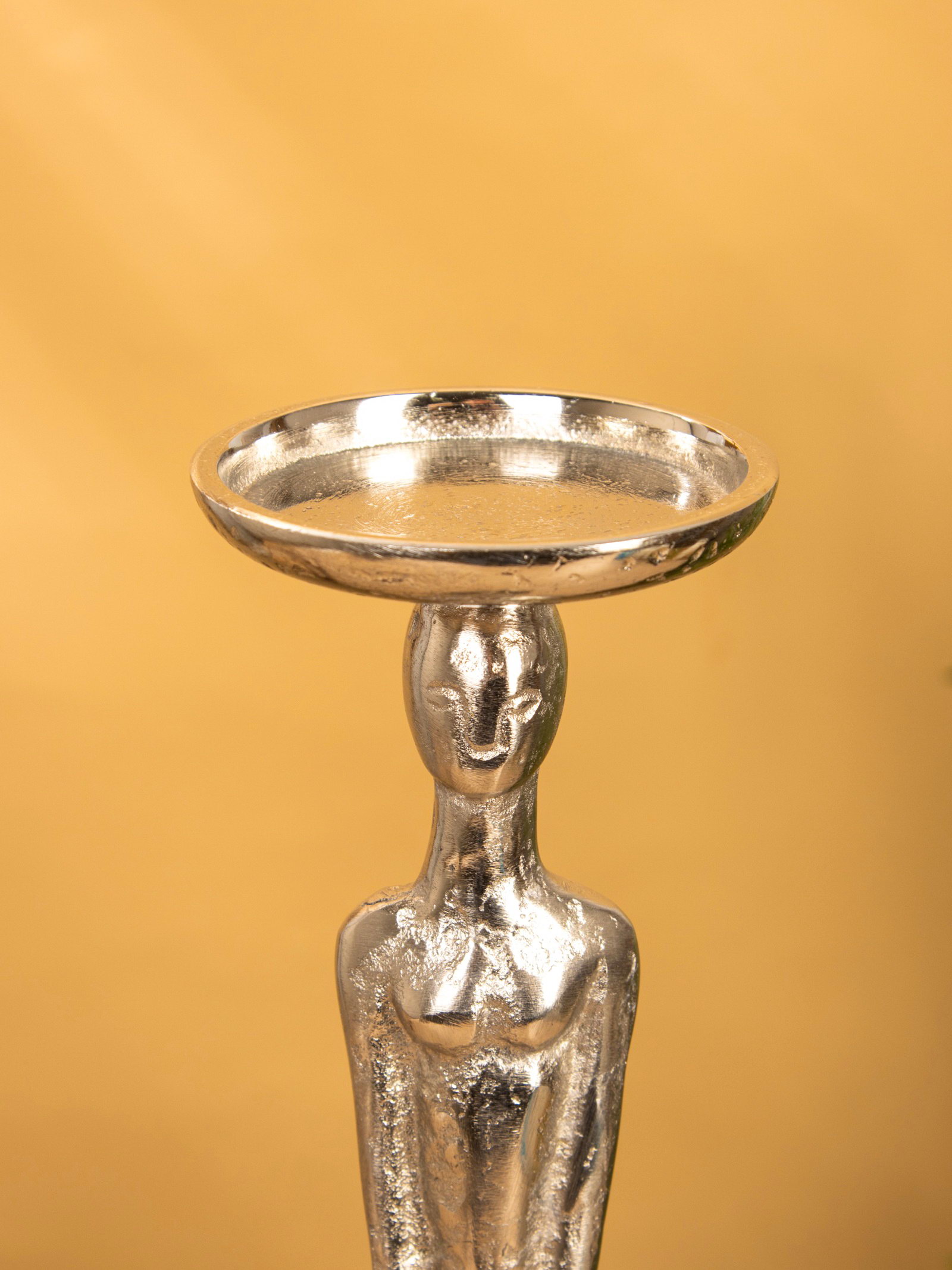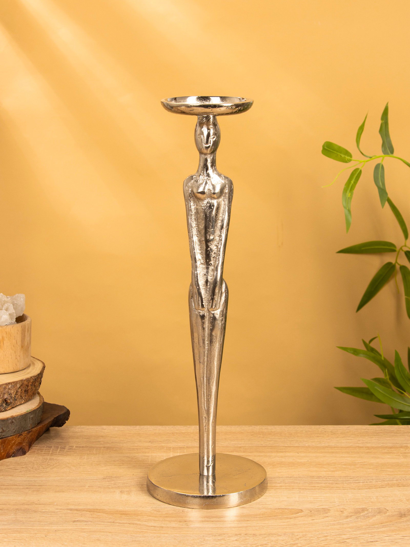 Подсвечник "Цивилизация", 13x13x41 см, алюминий, серебристый, 13x13x41 см., Индия