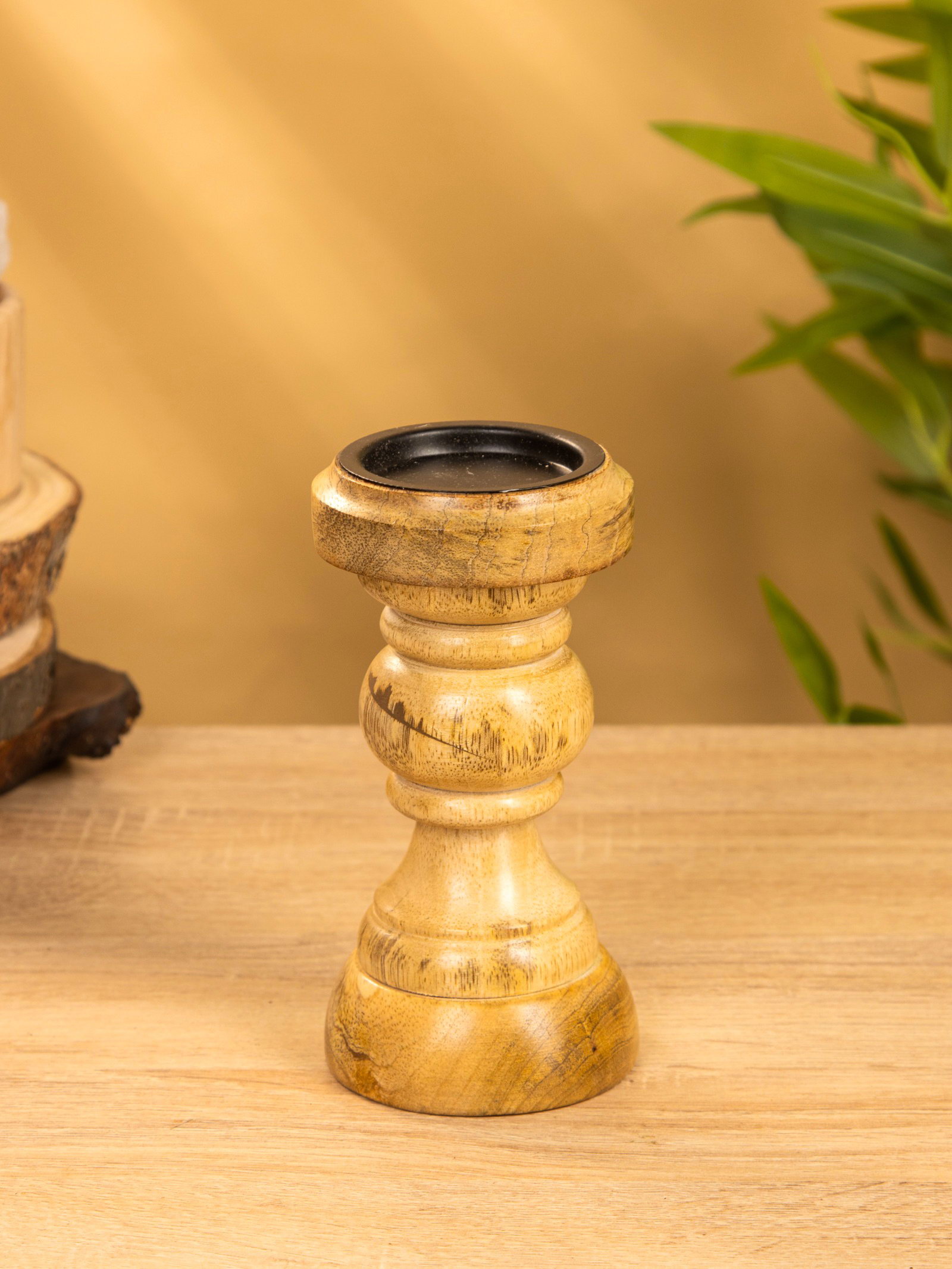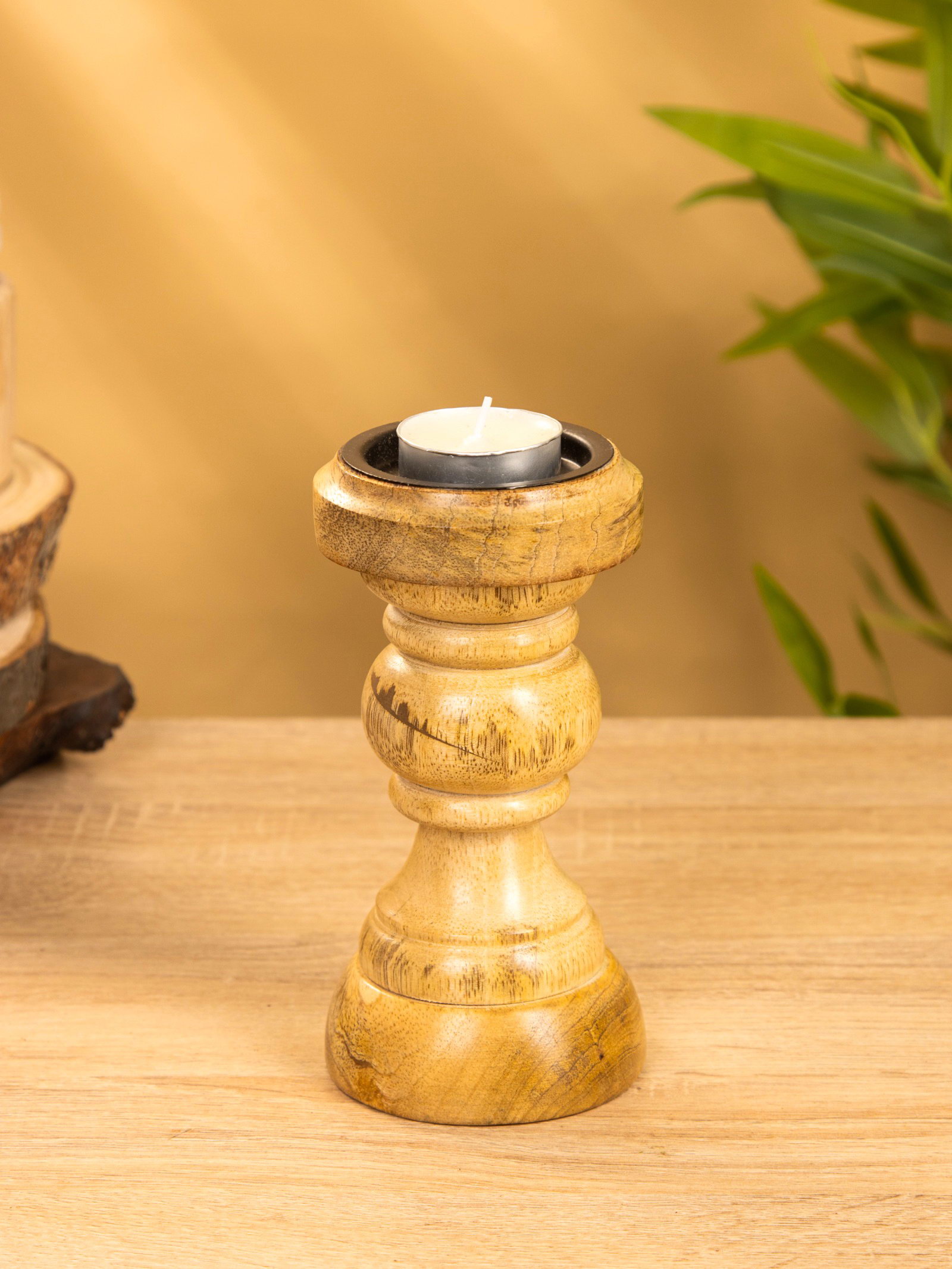 Подсвечник "Стич", 8x8x15.5 см, дерево шишам, 7x7x15 см., Индия