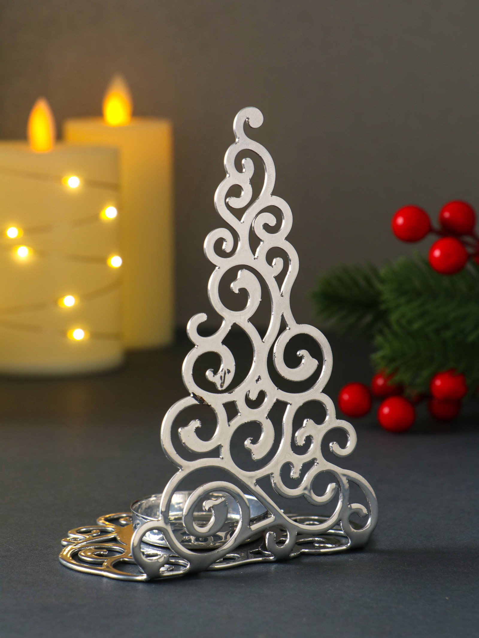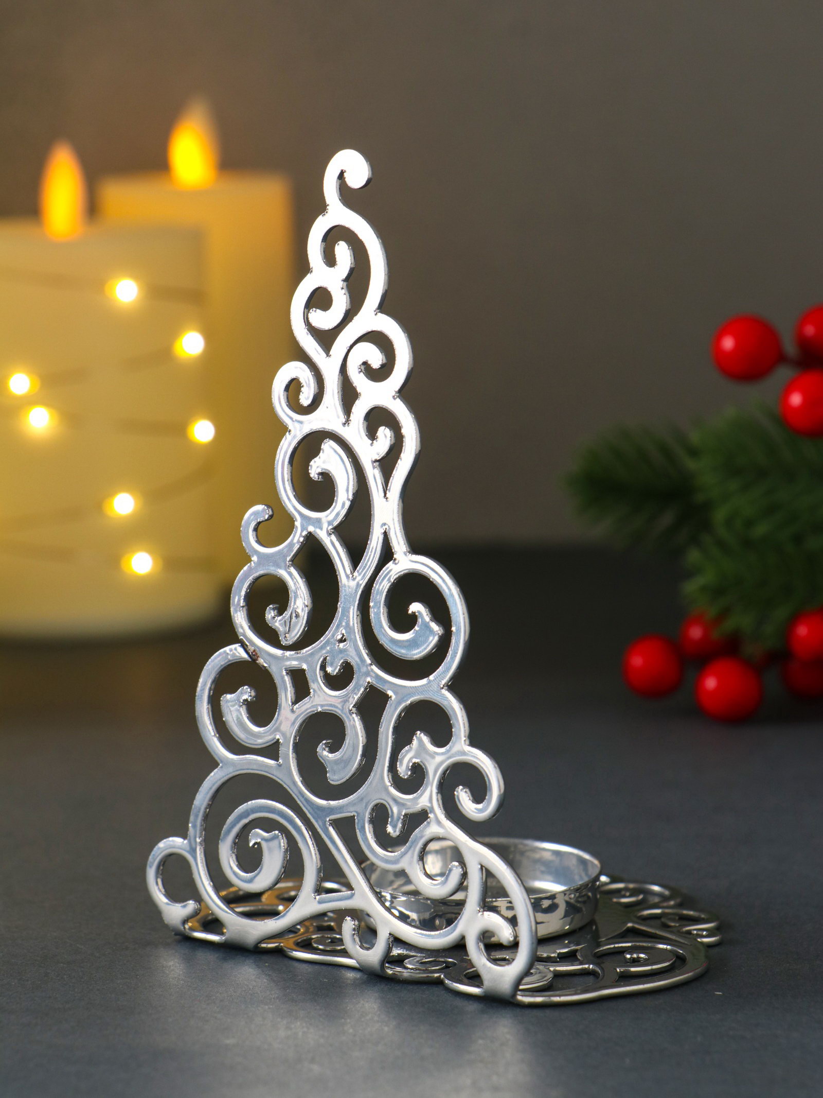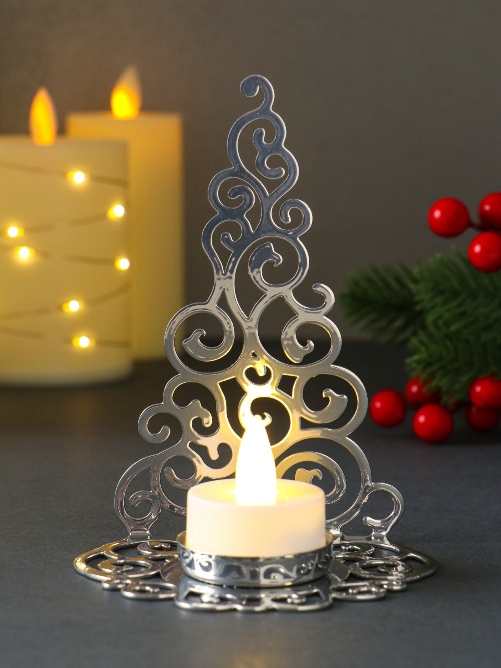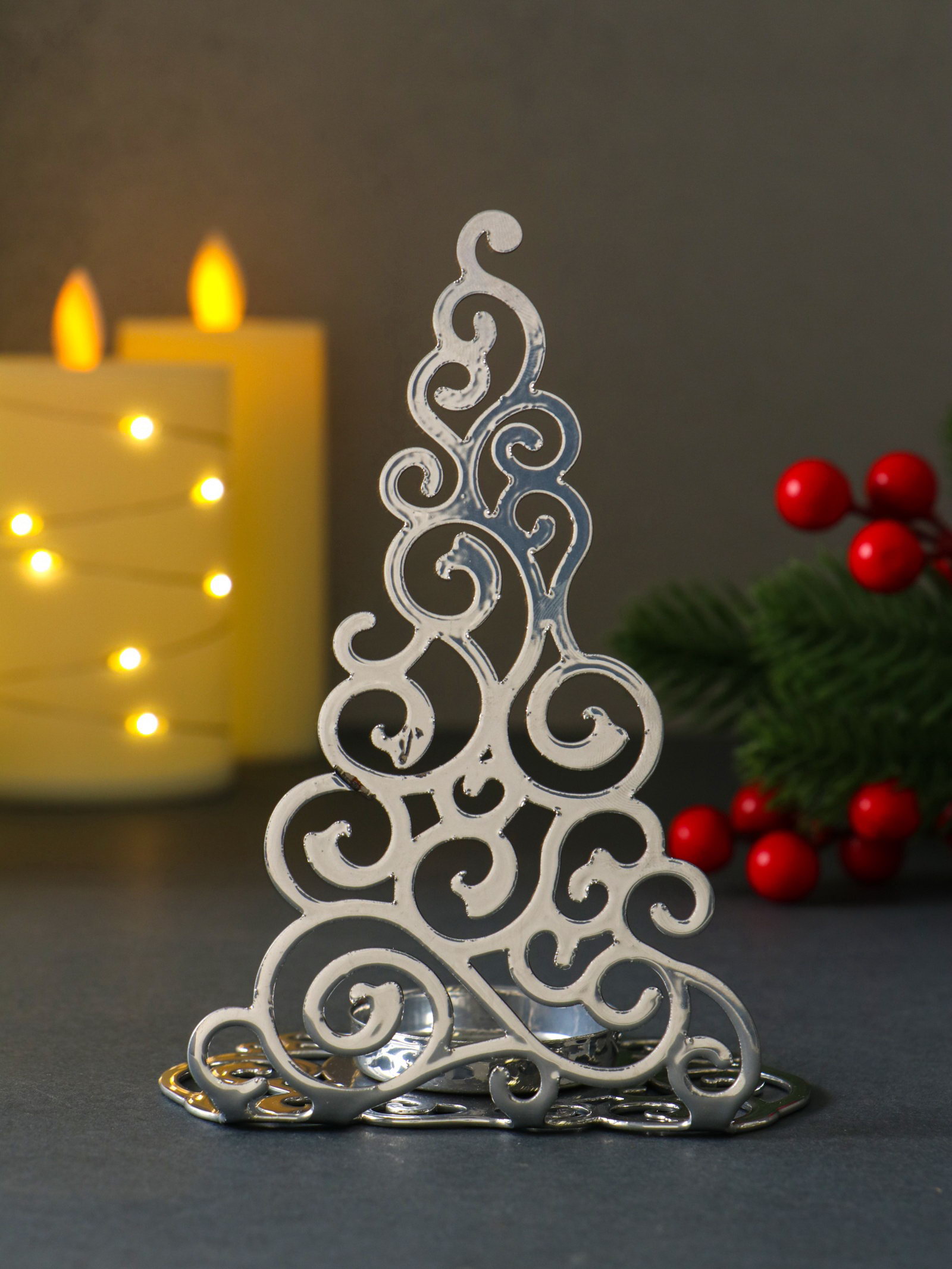 Подсвечник на 1 свечу "Ёлка новогодняя нарядная", металл под хром, 10x7.5x13.5 см, Омский свечной завод, Россия