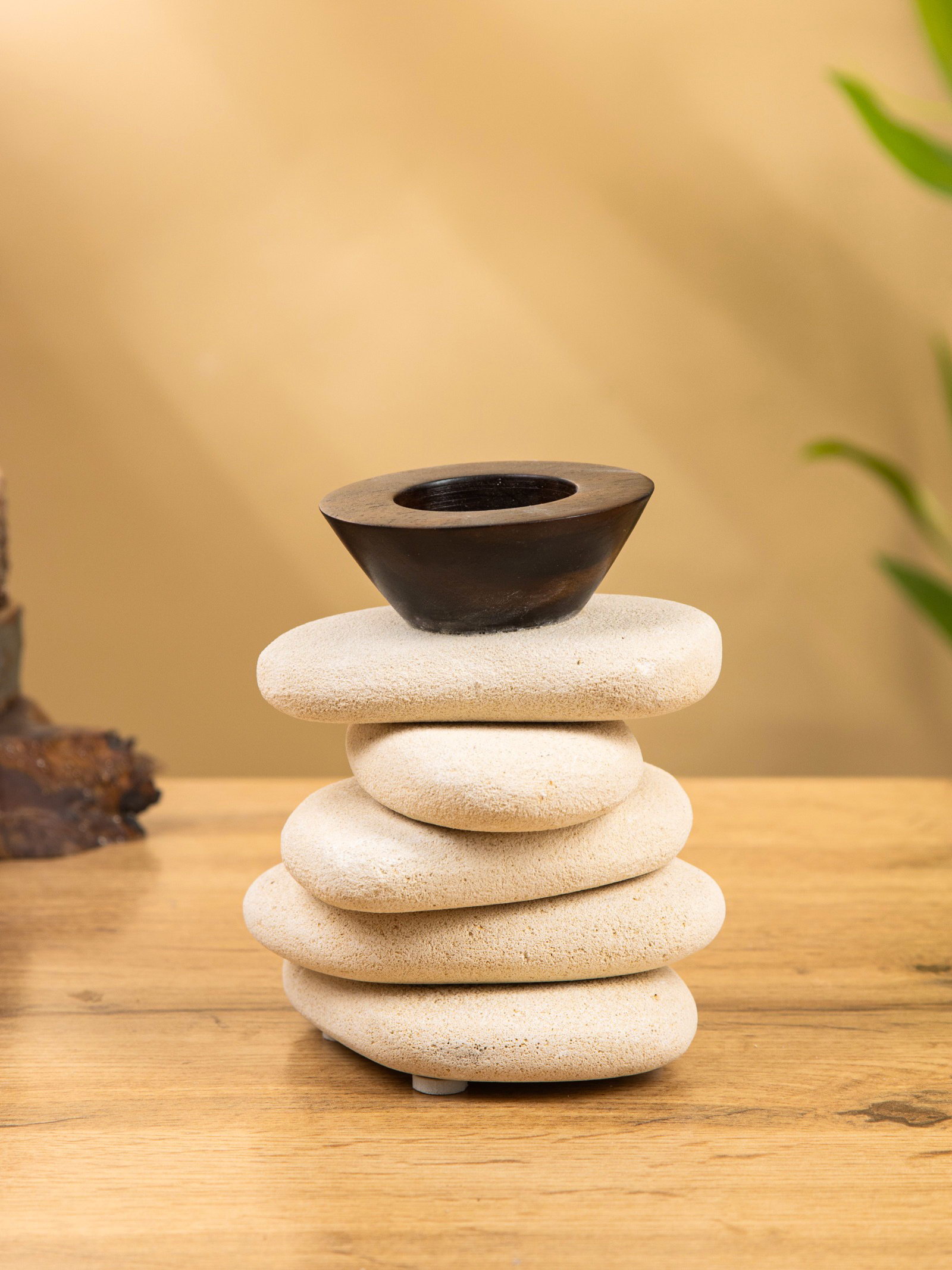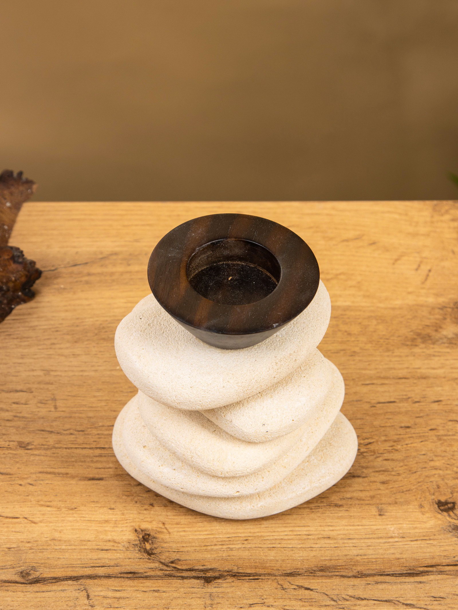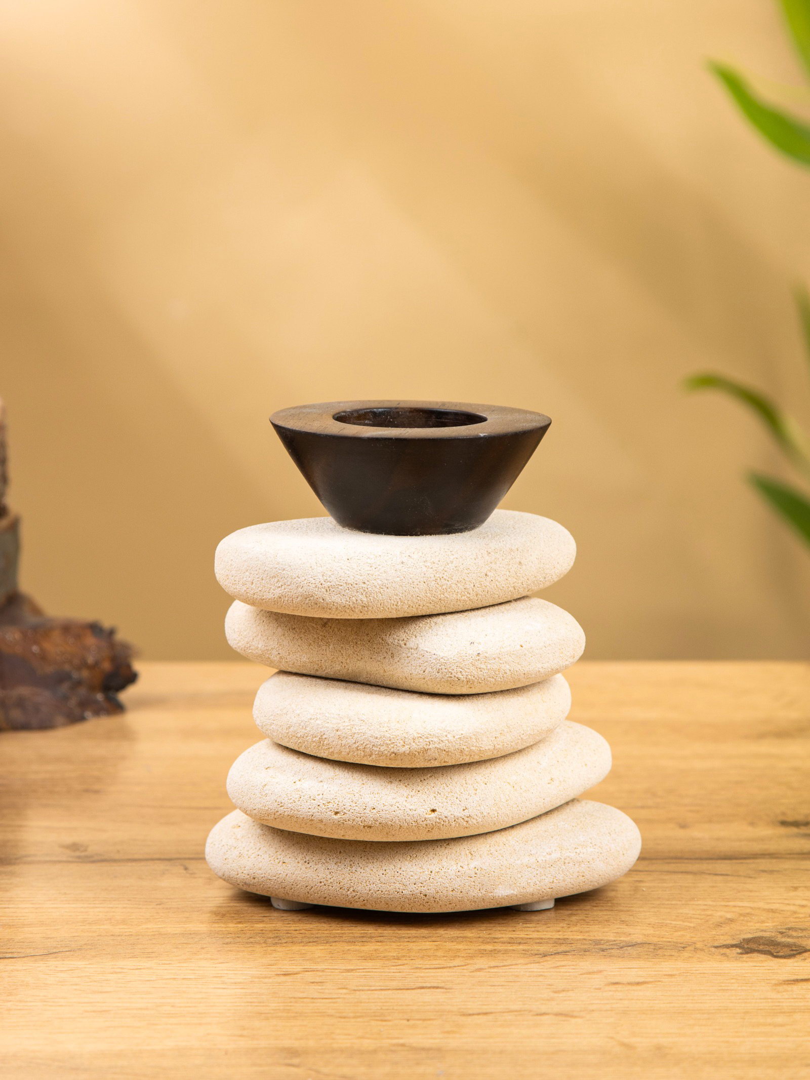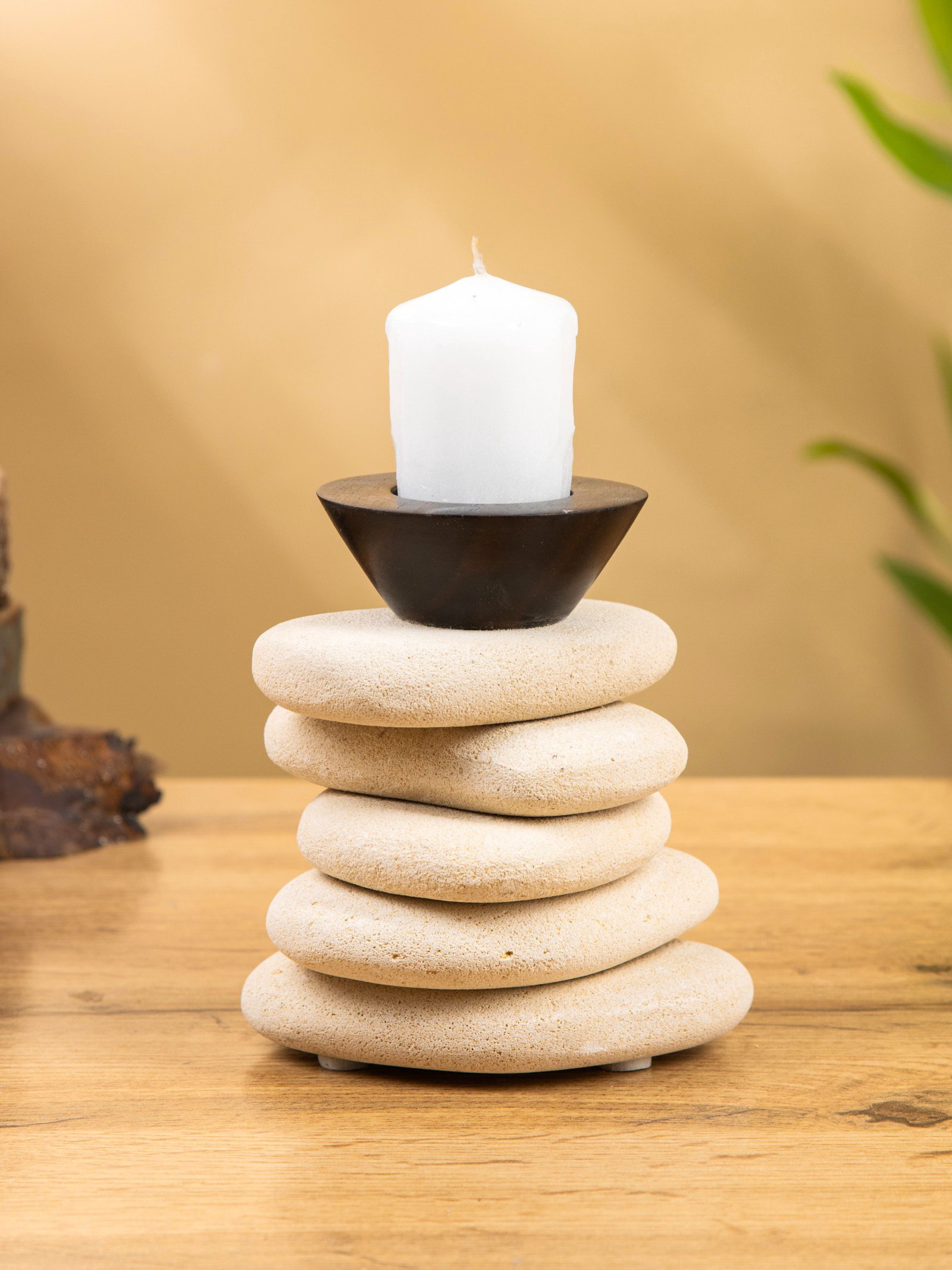 Подсвечник "Каменная башня", 10x10x13 см, камень, бежевый, 10x10x13 см., Индонезия