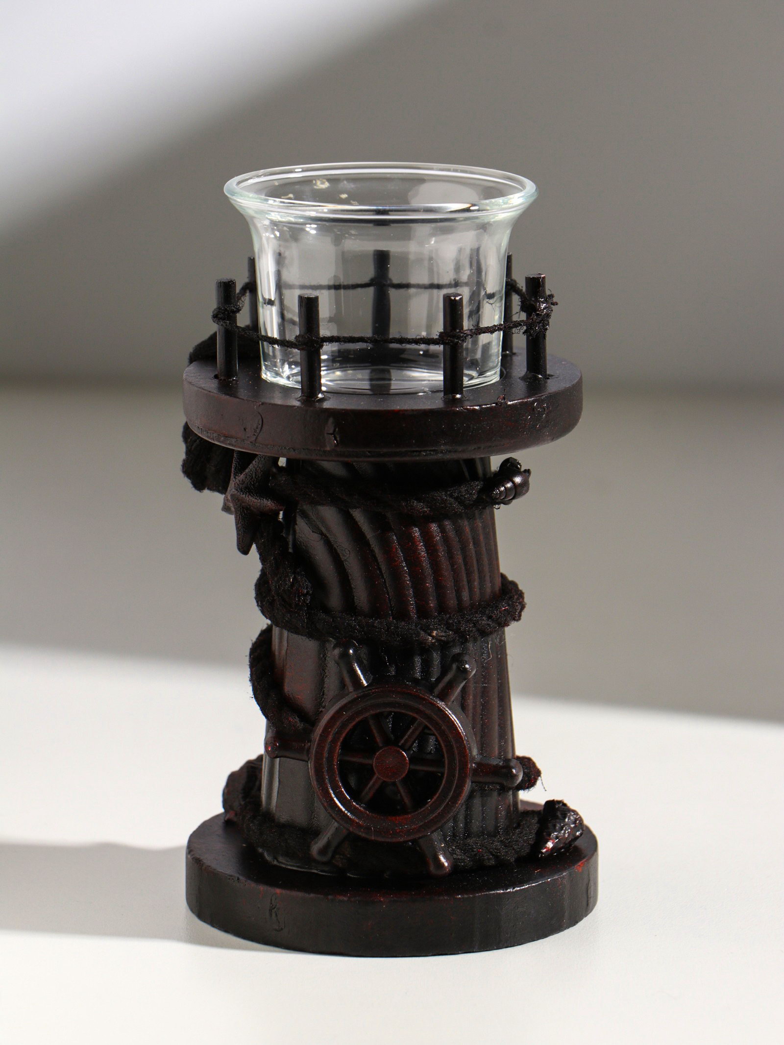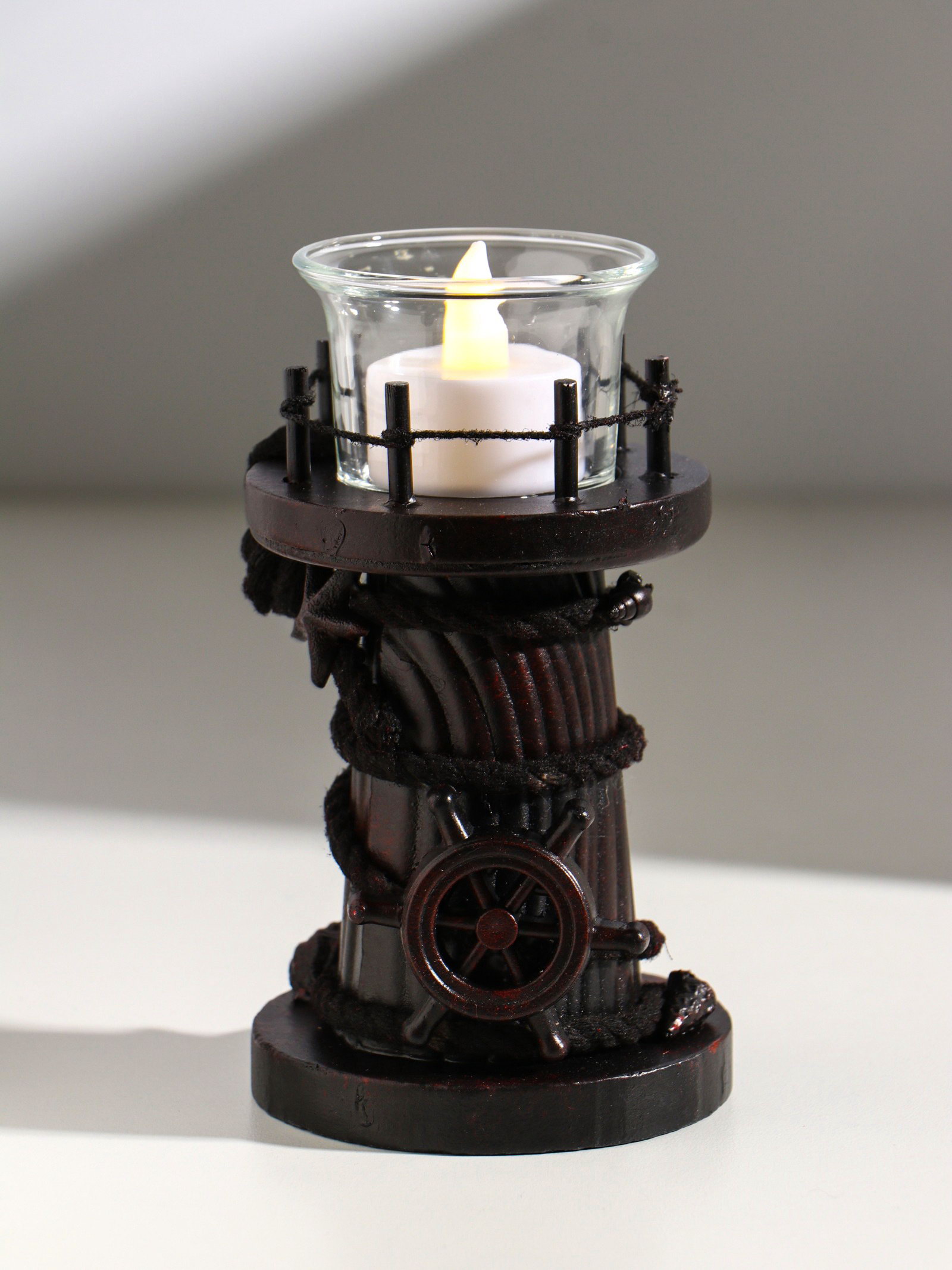 Подсвечник на 1 свечу "Маяк и штурвал", дерево, стекло, 8.5x8.5x15.5 см, 8.5x8.5x15.5 см., Китай