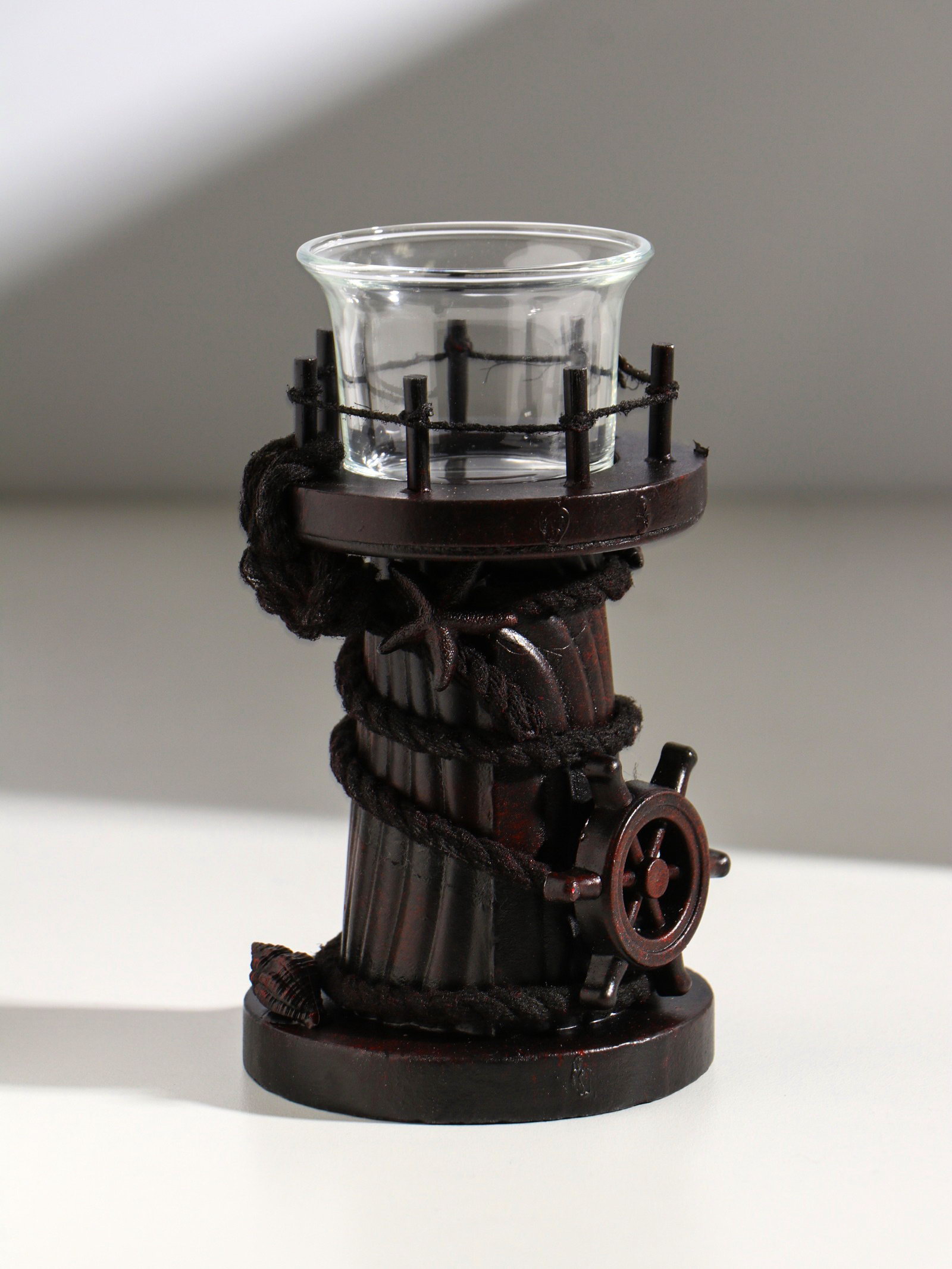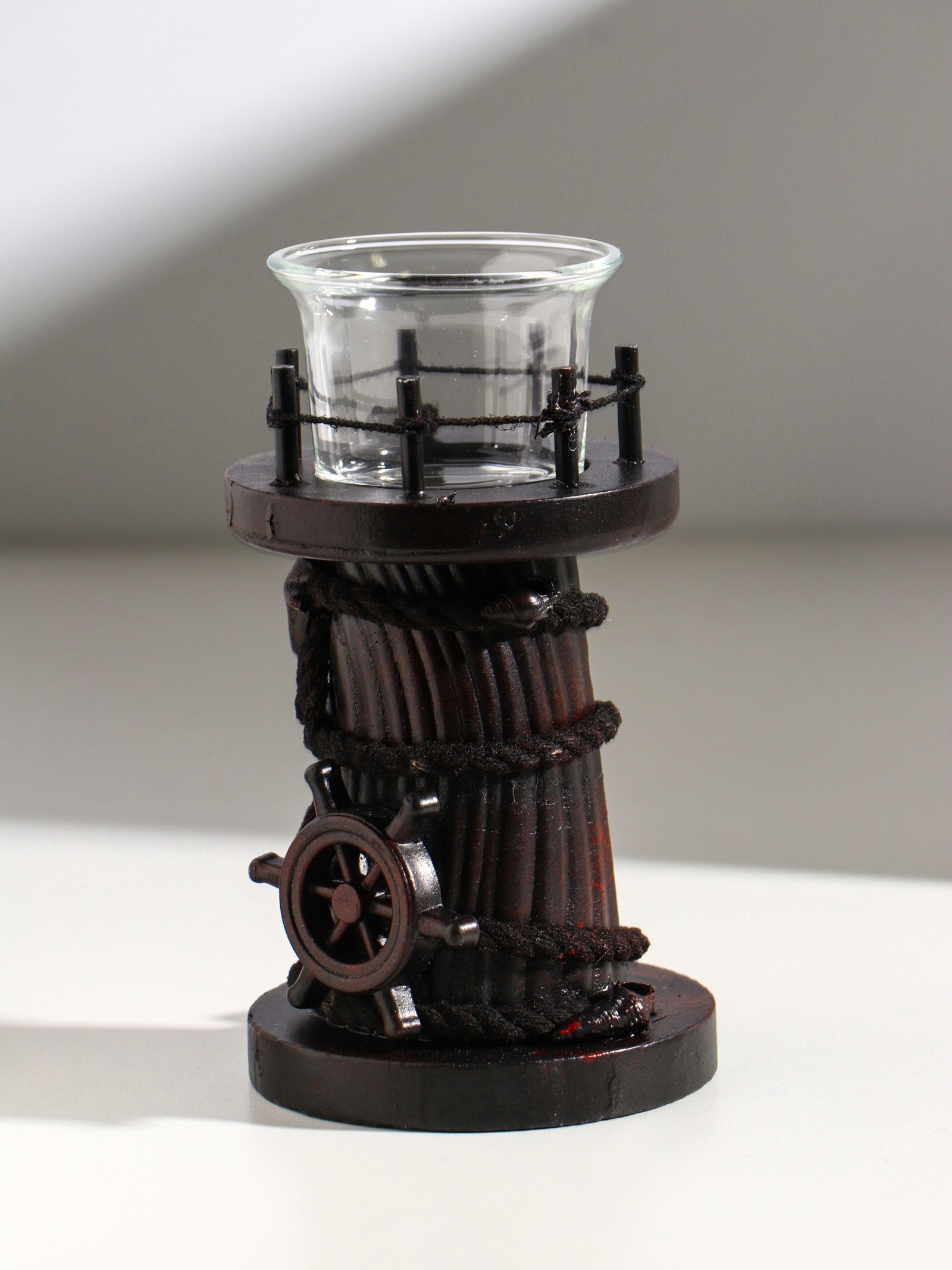 Тематика праздника: 23 Февраля, Военные праздники, Мальчишник, Профессиональные праздники, Универсальная тематика Размер упаковки: 13 x 15 x 9 см. tnved: 9405500000 Цвет: Коричневый Свеча в комплекте: Нет Высота, см: 15.5 Набор: Нет Количество рожков: 1 Диаметр под свечу, см: 3.9 Этот морской подсвечник станет стильным акцентом в интерьере и особым подарком для мужчины. Комбинация дерева и стекла создаёт сдержанную и прочную конструкцию, напоминающую о морских путешествиях и отваге. Особенности