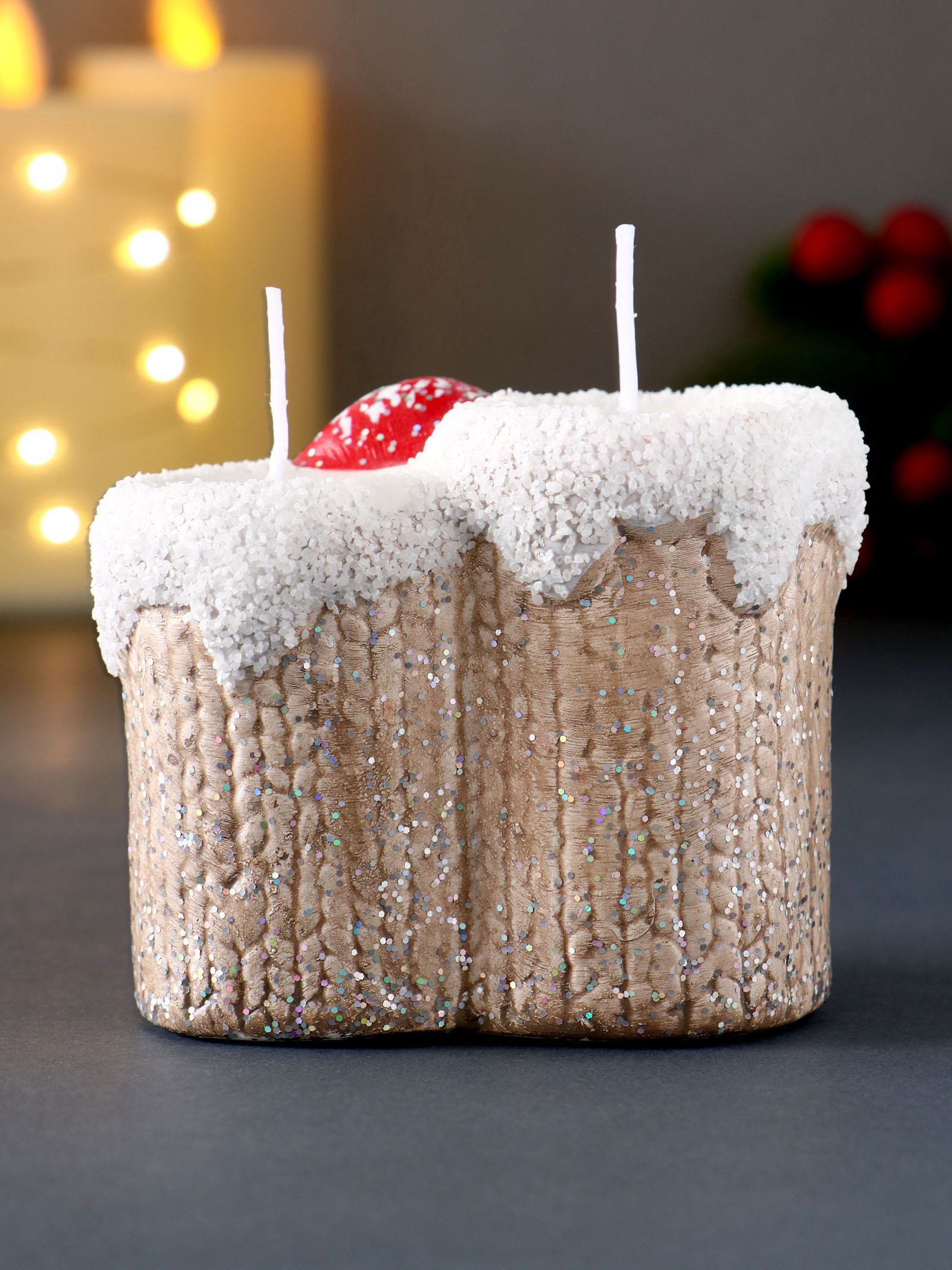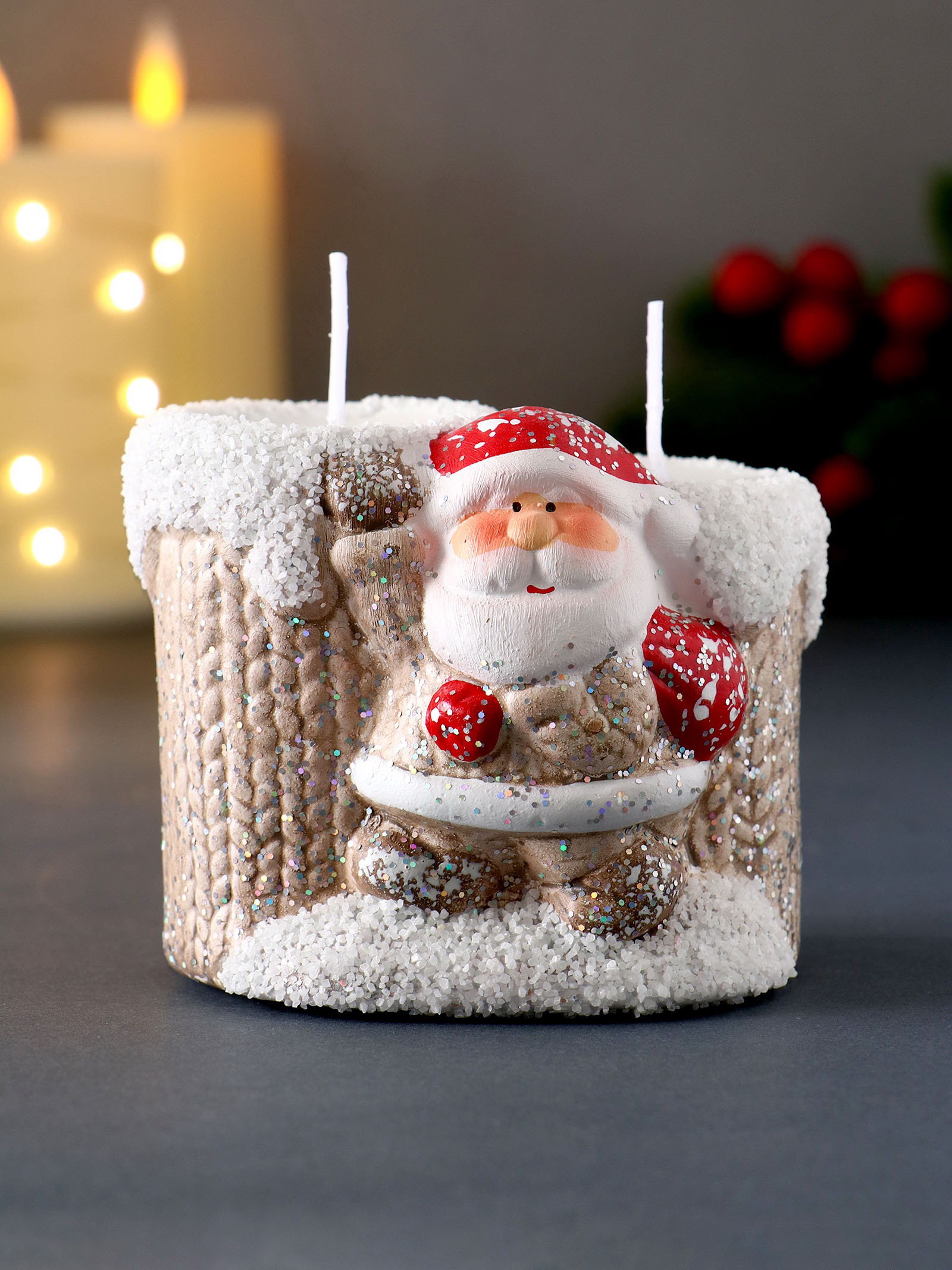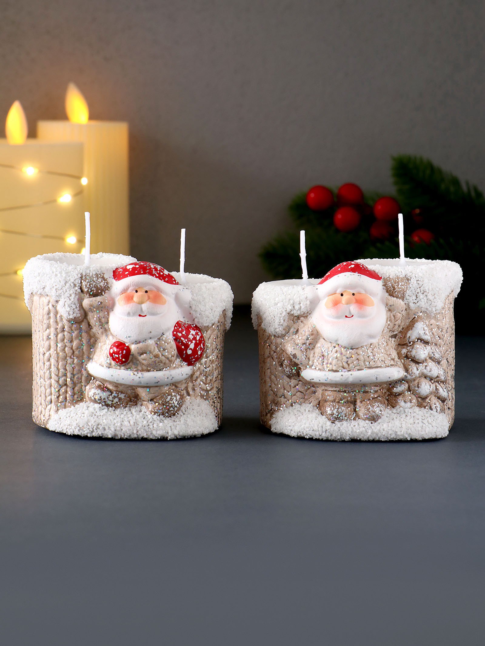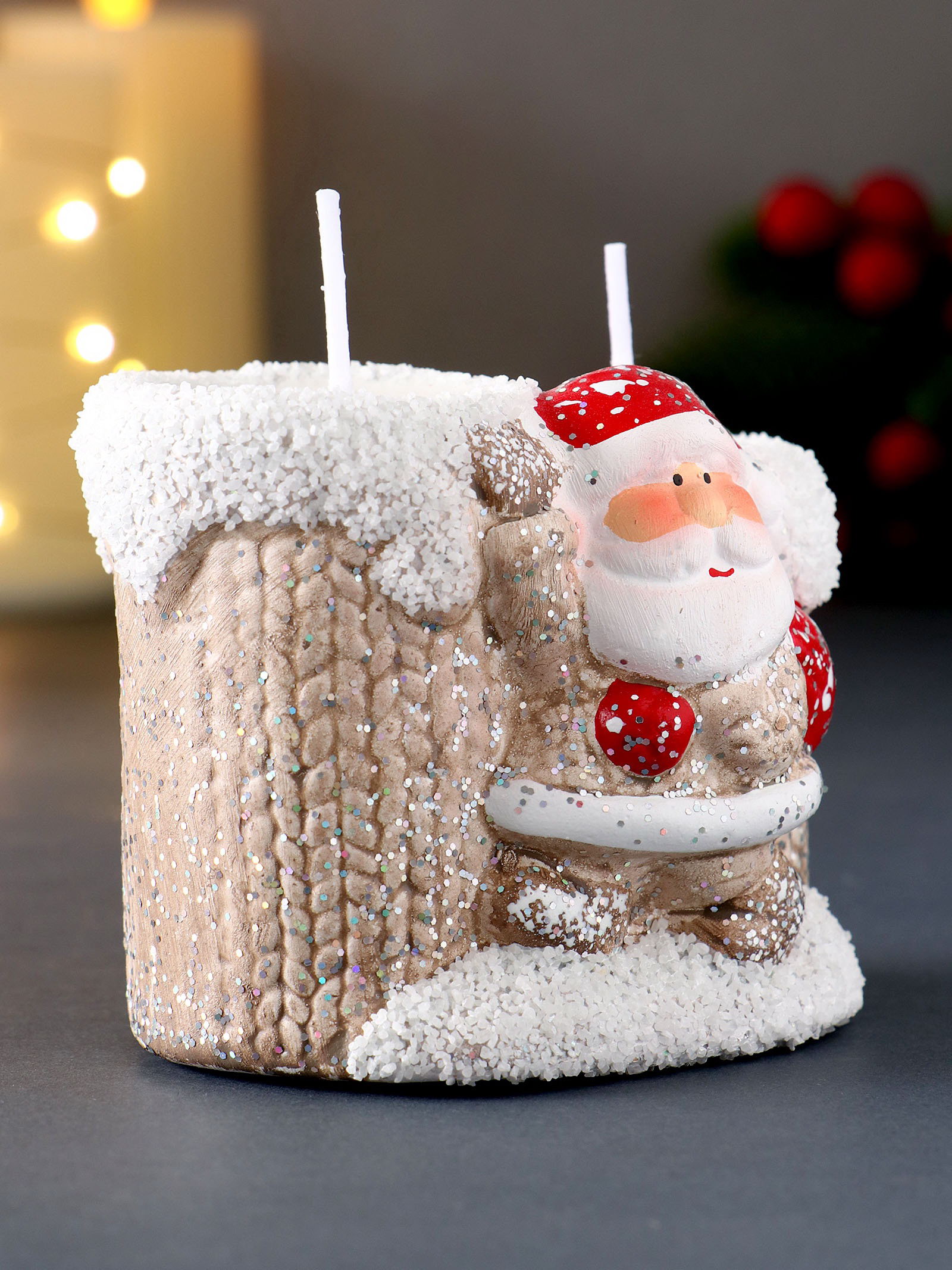 Подсвечник со свечами "Дед Мороз в бежевом кафтане", на 2 свечи, керамика, 7.5x5.5x6.5 см, МИКС, 5.5x7.5x6.5 см., Китай