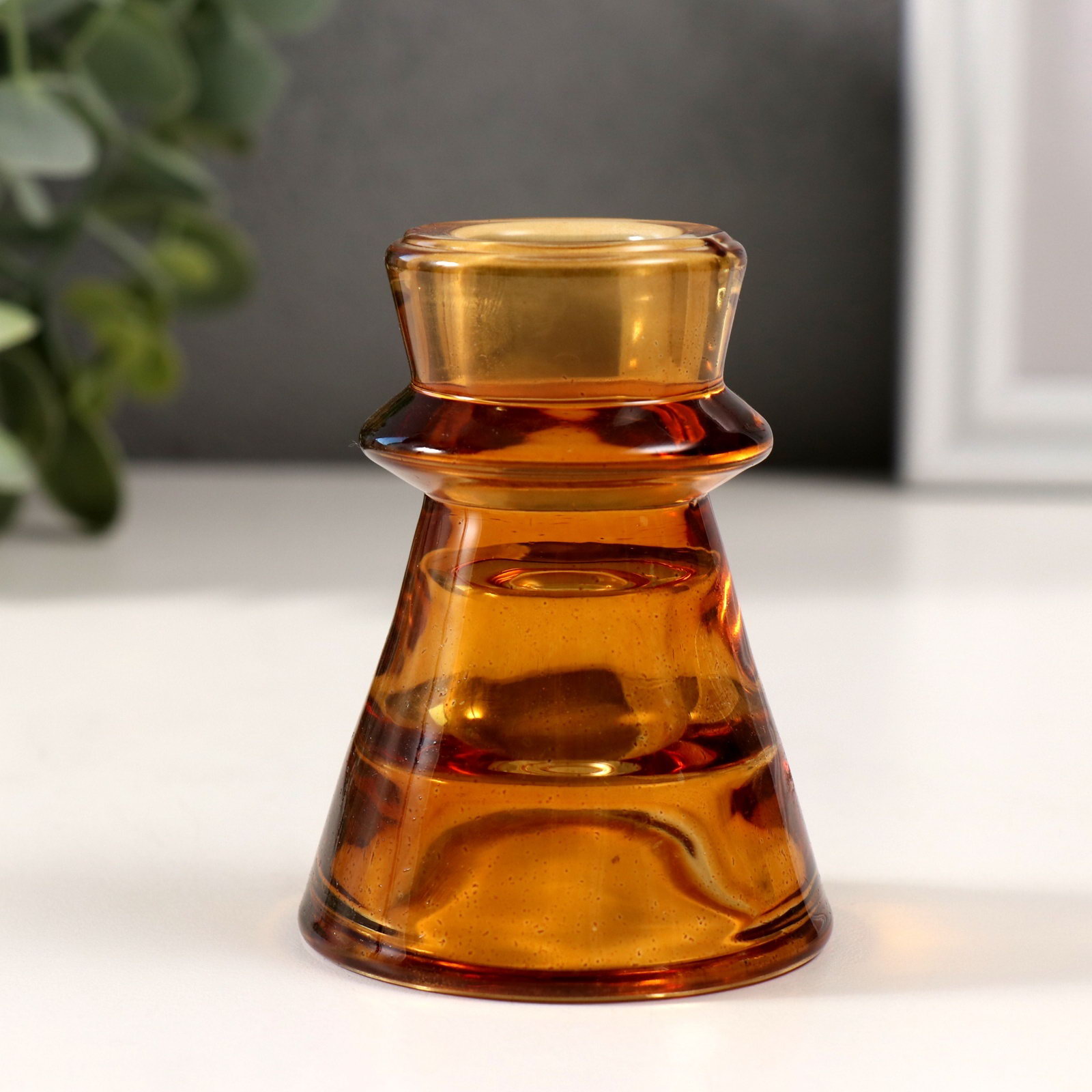 Подсвечник стекло на 1 свечу "Нео" прозрачный корица d=2.3 см 6х6х7.5 см, 6x6x7.5 см., Китай