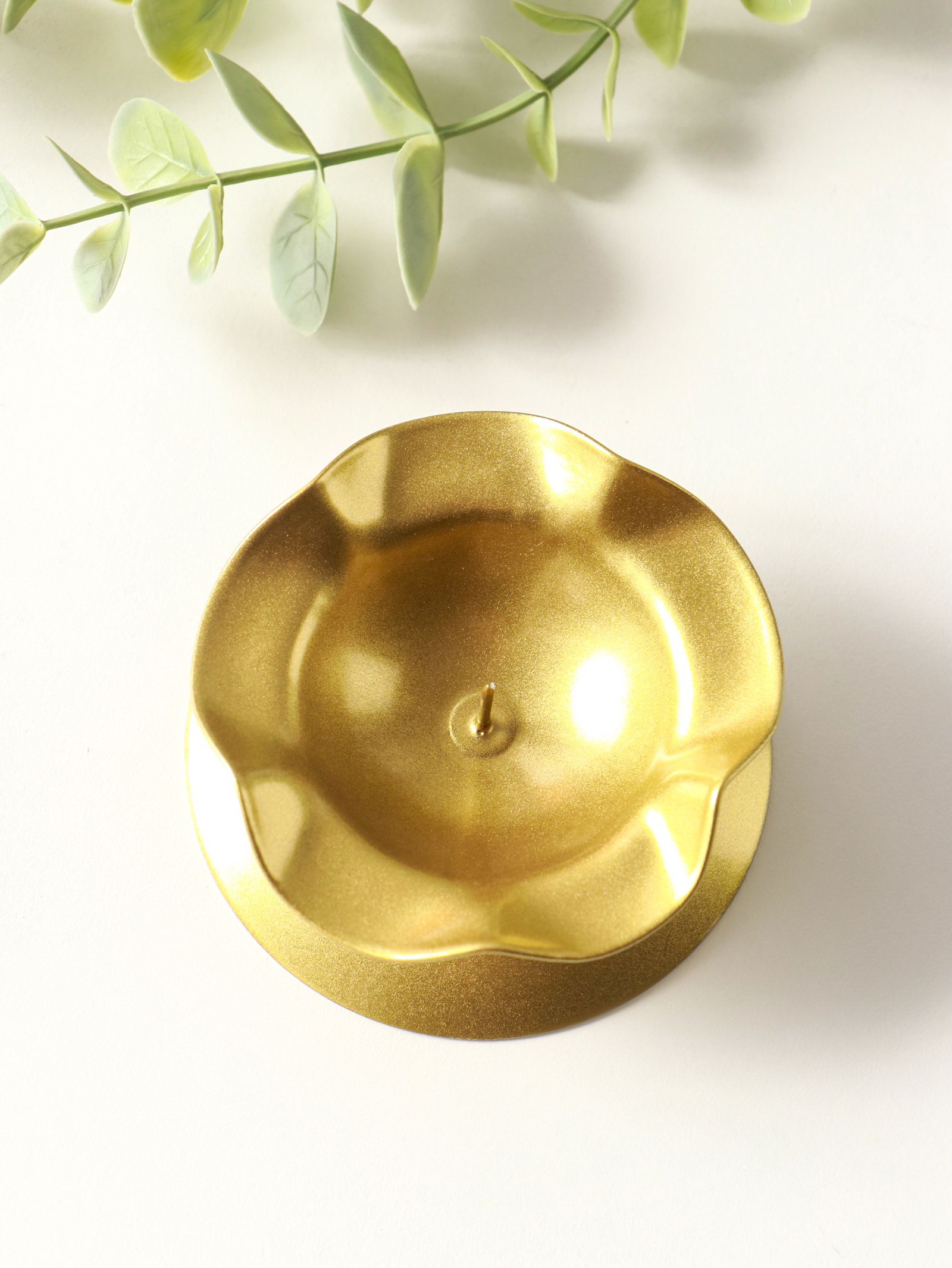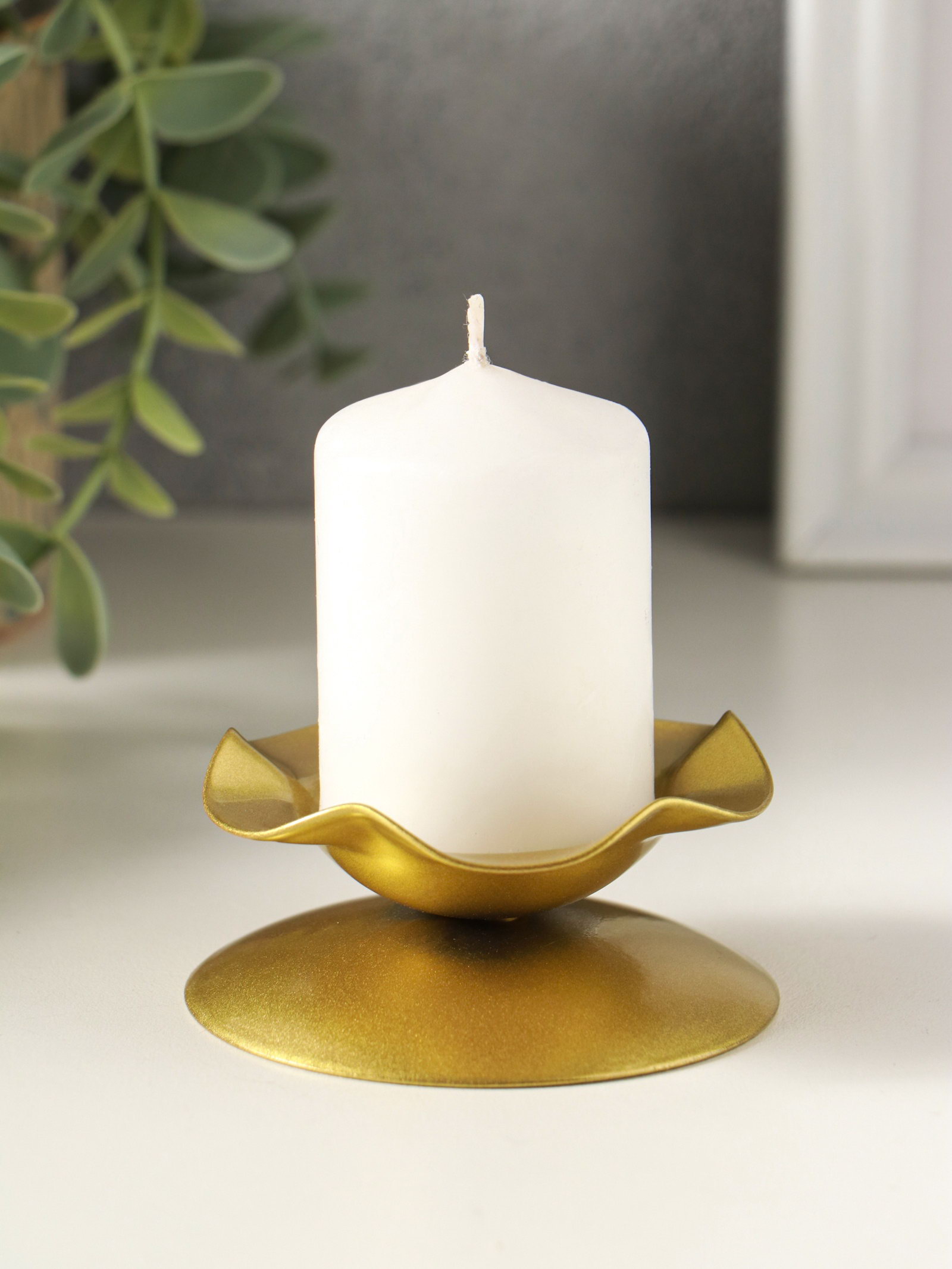 Металлический подсвечник на 1 свечу "Кувшинка", 7.3x3.5 см, под золото, Омский свечной завод, Россия