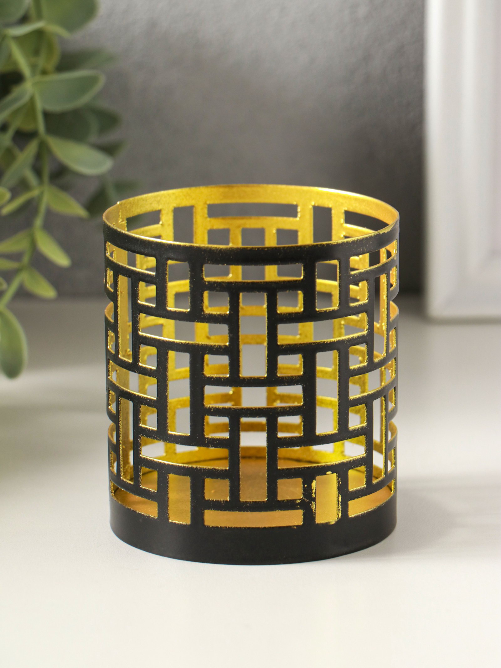 Металлический подсвечник "Цилиндр геометрия", 7.5x7.5x8 см, чёрный с золотом, Омский свечной завод, Россия