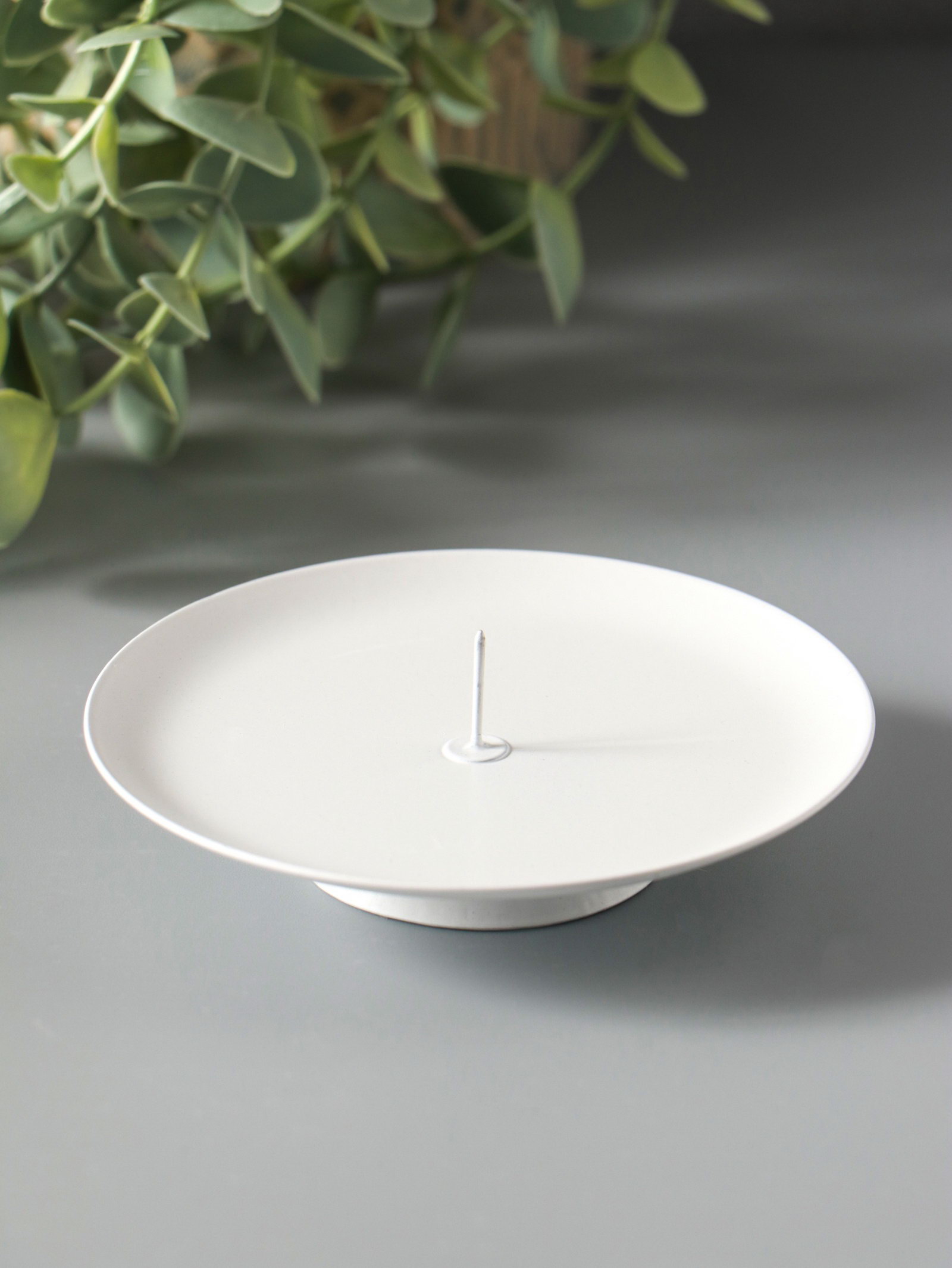 Металлический подсвечник плоский "Чашка на подставке", 10 см, белый, Омский свечной завод, Россия