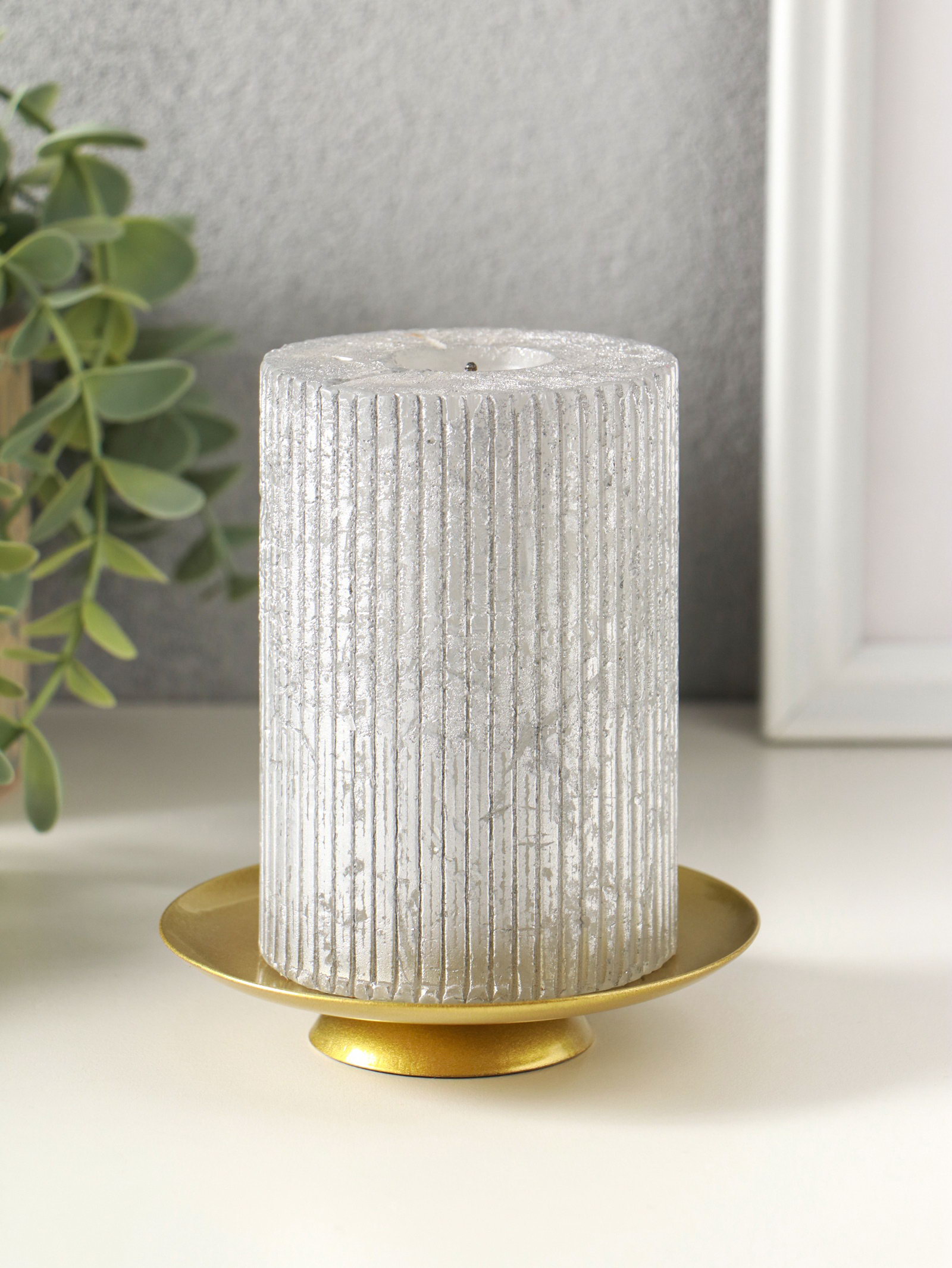 Создайте настроение Плоский подсвечник безопасно разместит любую стандартную свечу-таблетку. Мерцание огня в золотой чаше добавляет интерьеру тепла и глубины, превращая обычный вечер в особенный момент. Это простой и эффектный способ расставить световые акценты в доме. | ||
