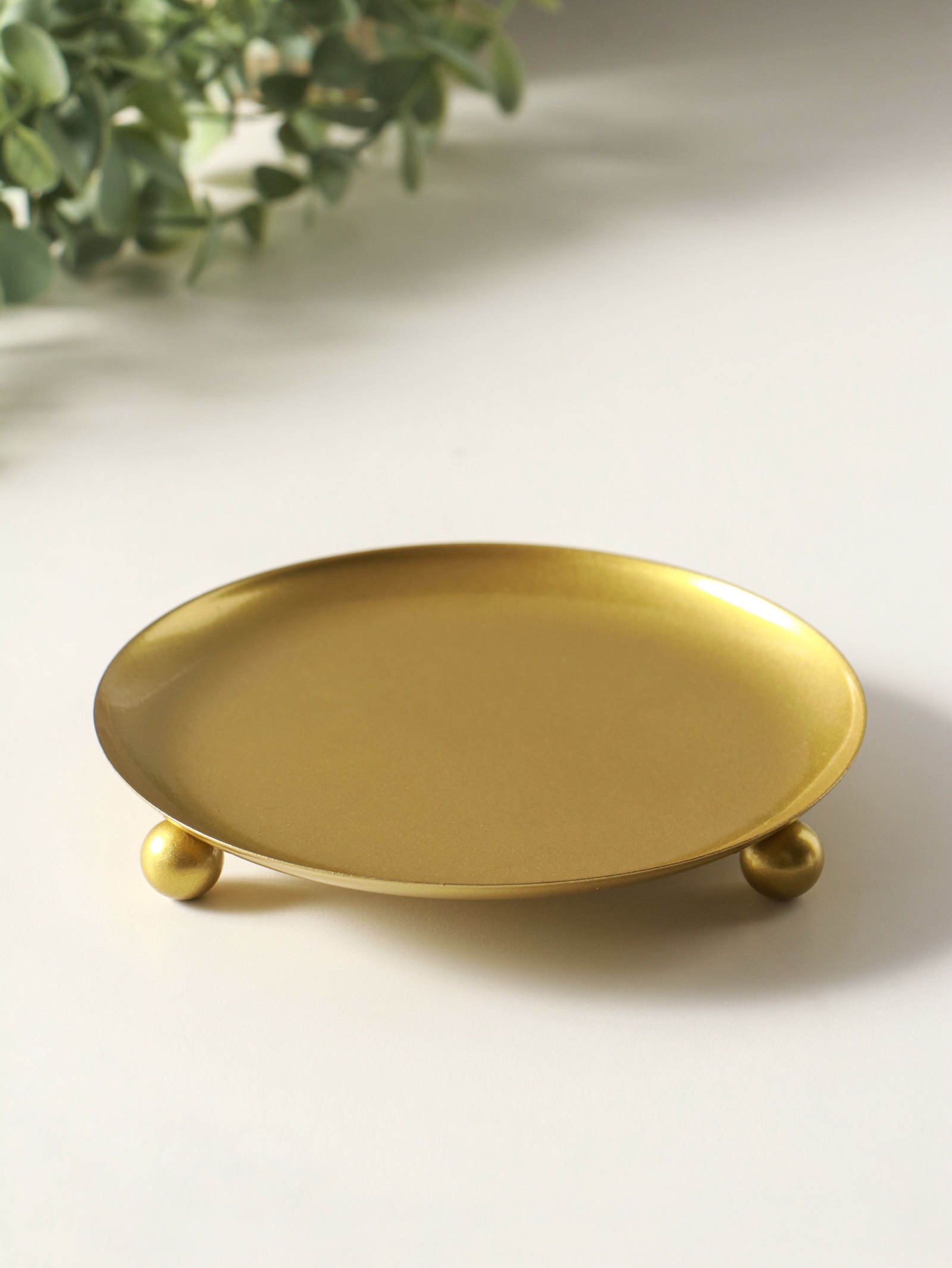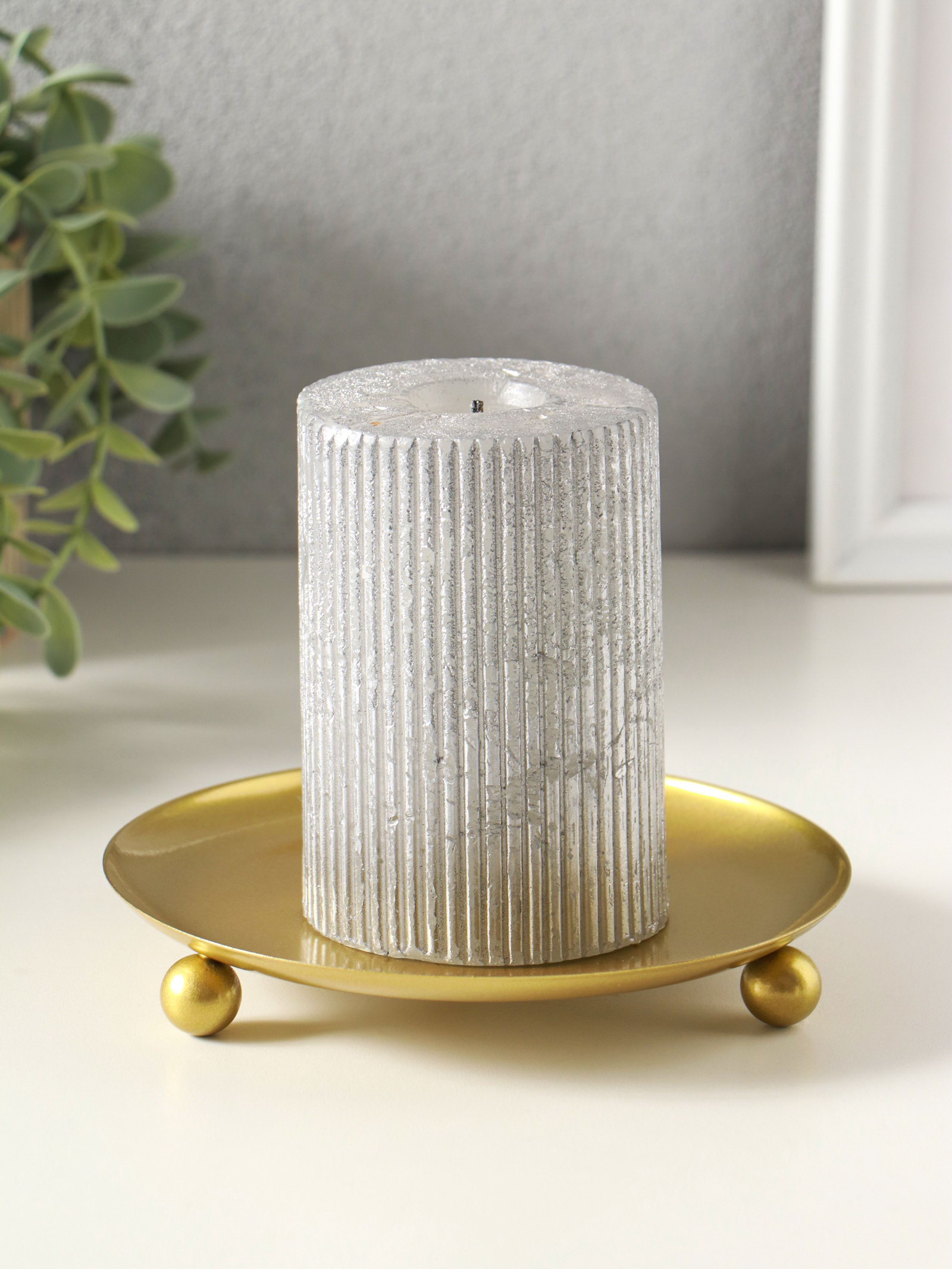 Металлический подсвечник плоский "Чашка на шариках" 14 см, под золото, Омский свечной завод, Россия