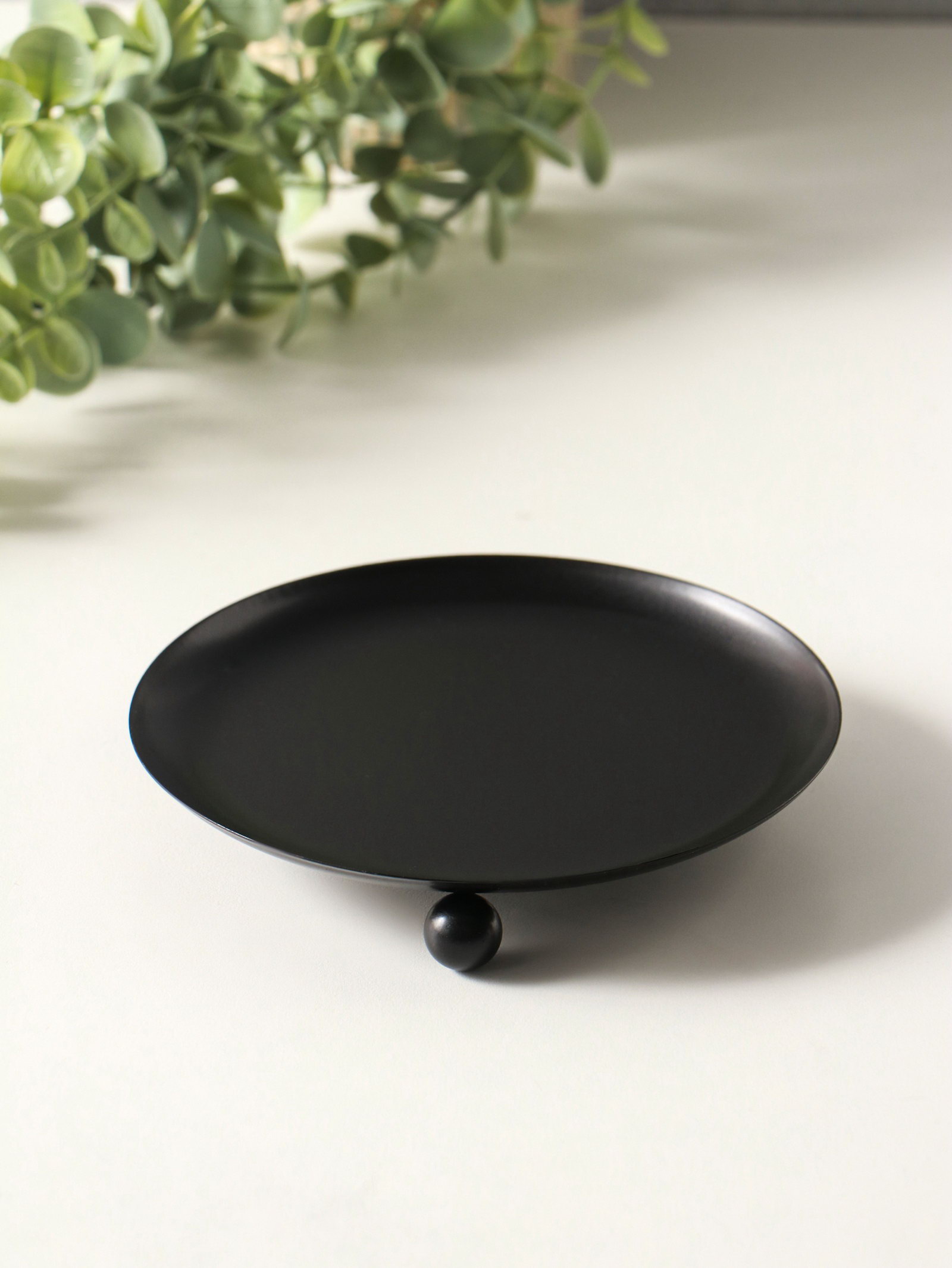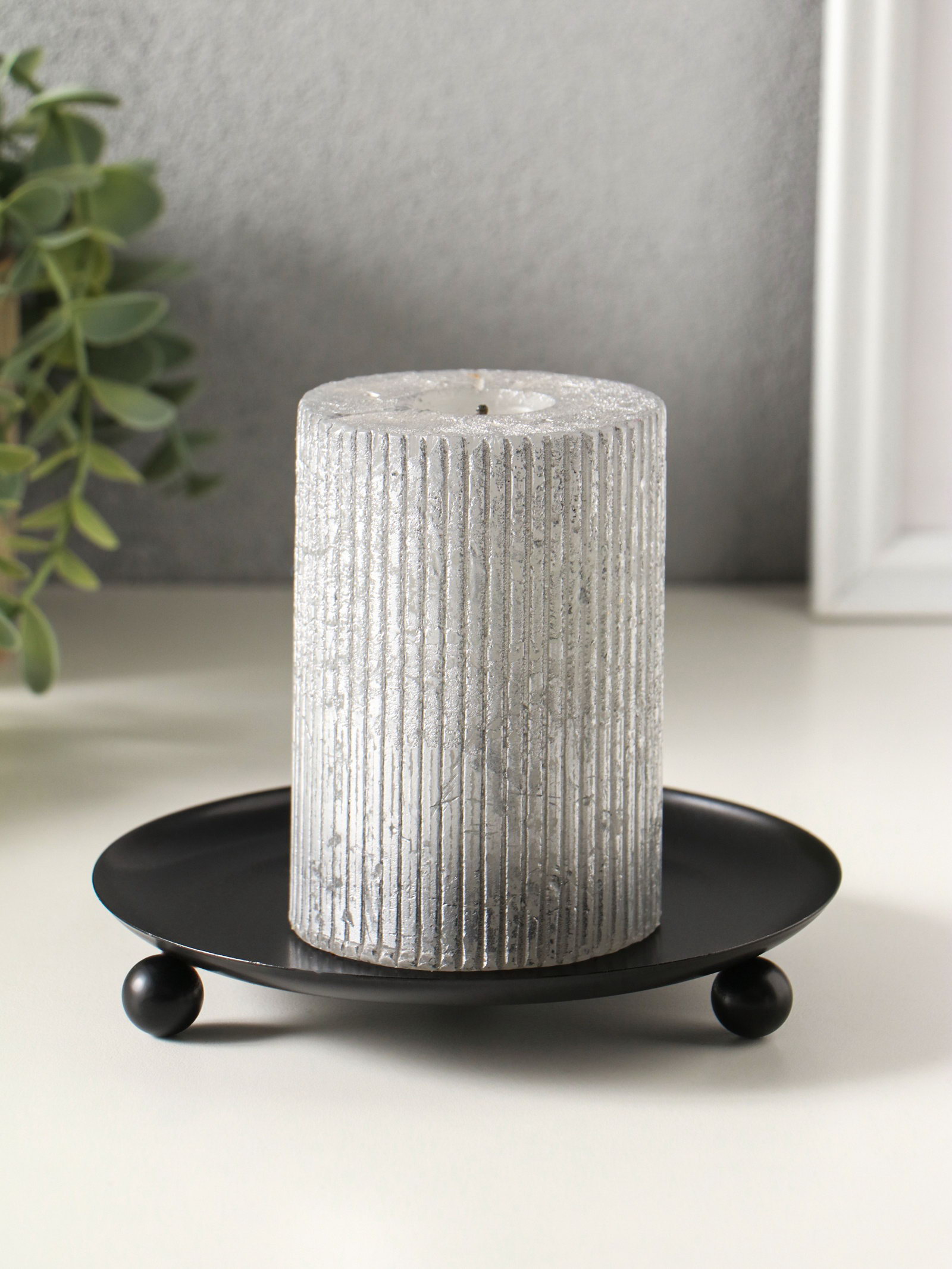 Металлический подсвечник плоский "Чашка на шариках", 14 см, чёрный, Омский свечной завод, Россия