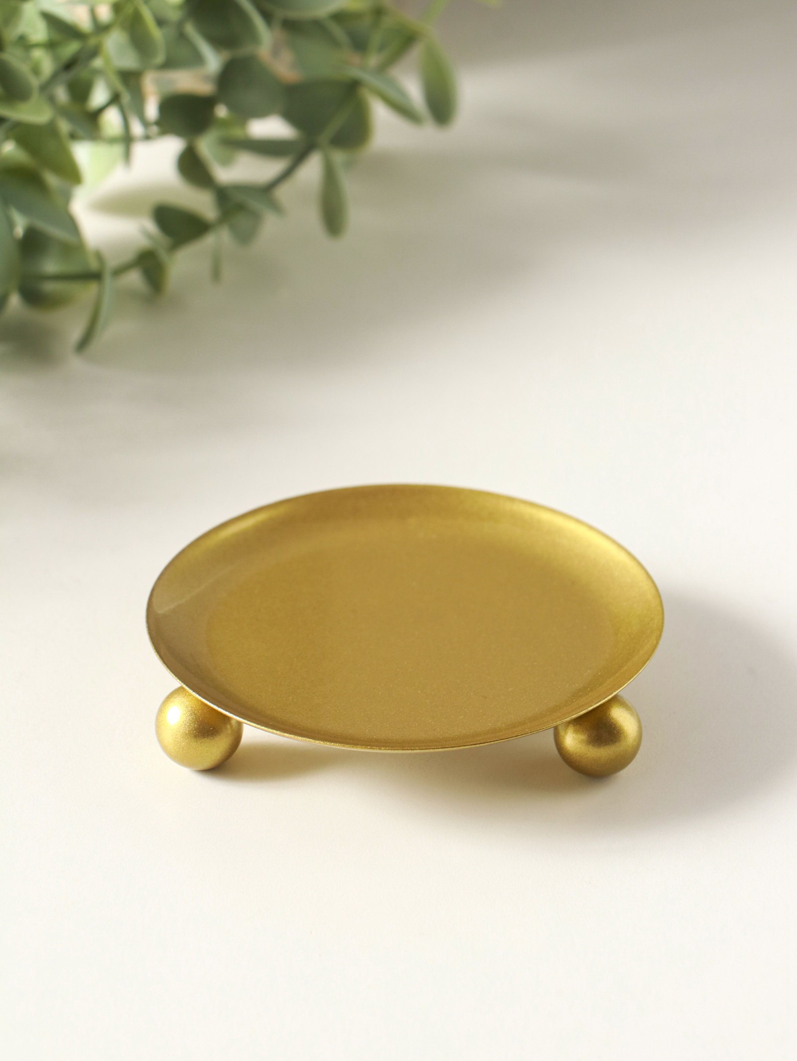 Металлический подсвечник плоский "Чашка на шариках", 9 см, под золото, Омский свечной завод, Россия