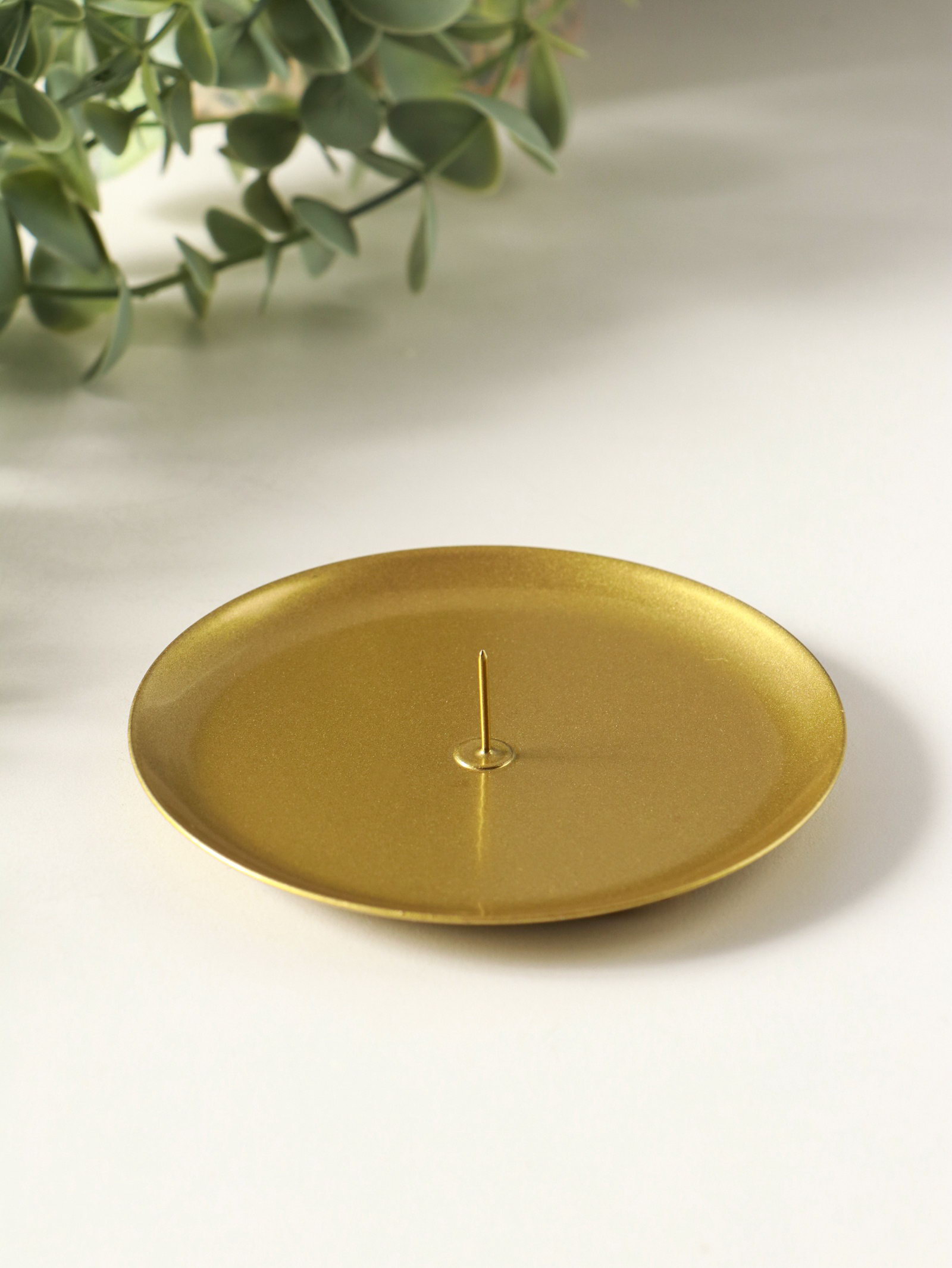 Металлический подсвечник плоский "Чашка", 10 см, под золото, Омский свечной завод, Россия
