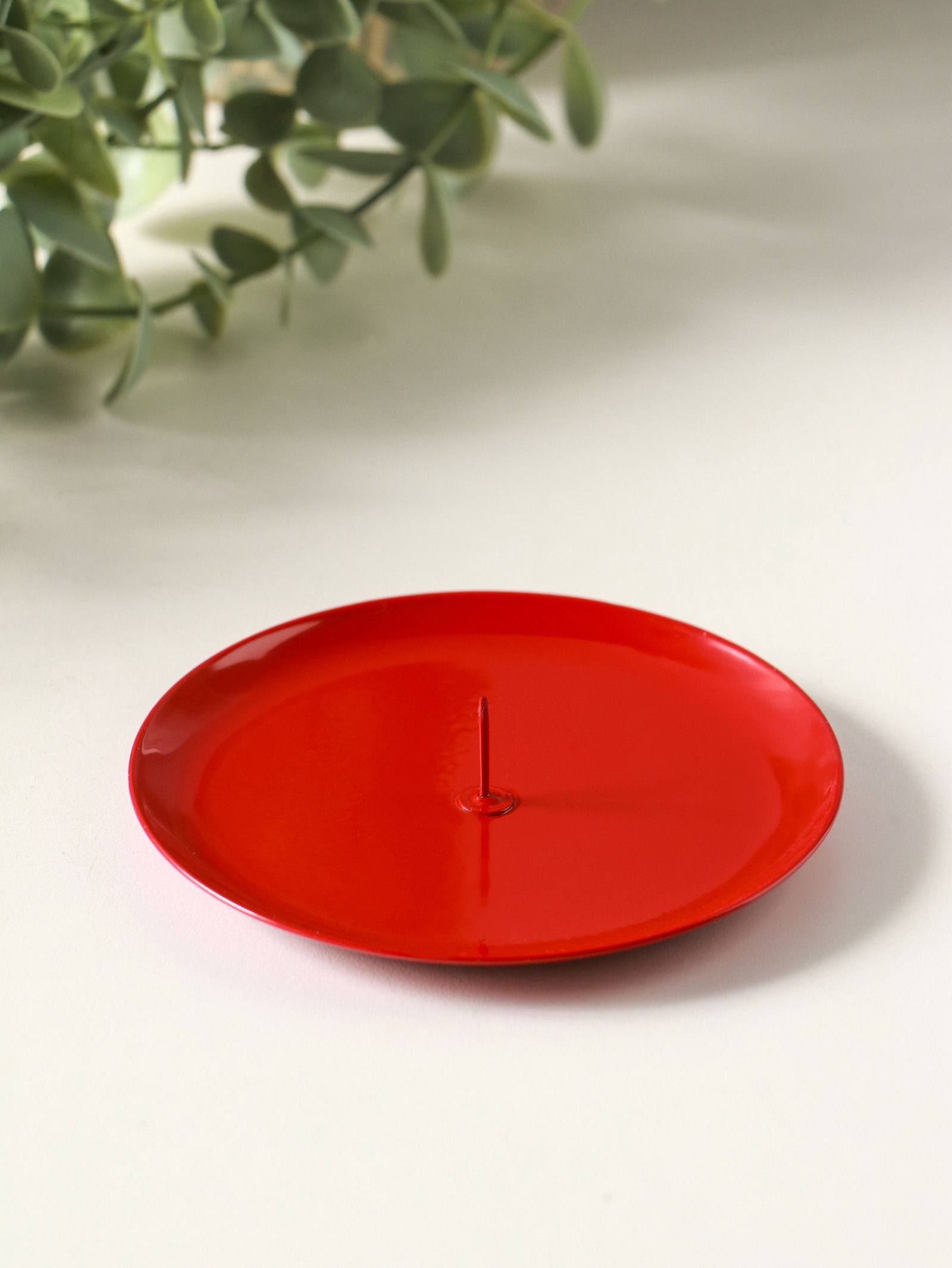 Металлический подсвечник плоский "Чашка" 10 см, красный, Омский свечной завод, Россия