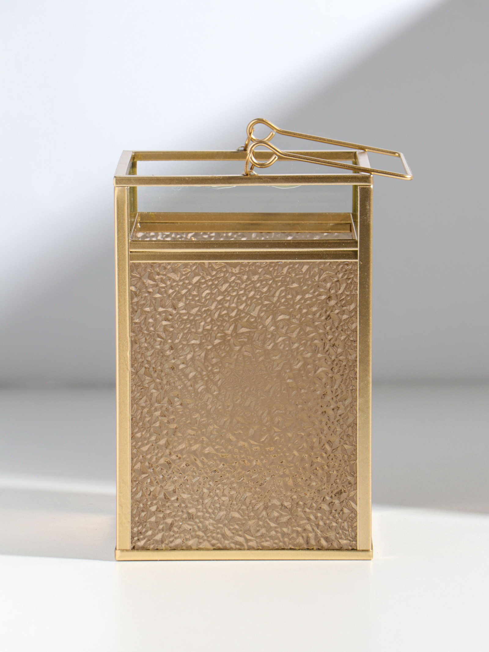 Подсвечник - фонарь "Капли", с ручкой, стекло, металл под золото, 10.5x12x19.4 см, 12x10.5x19.4 см., Китай