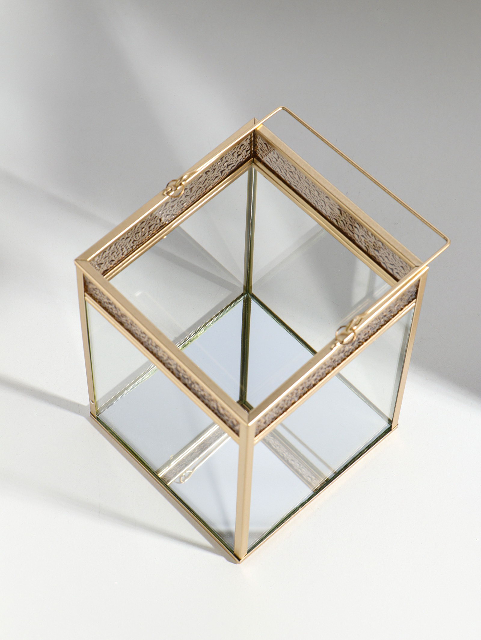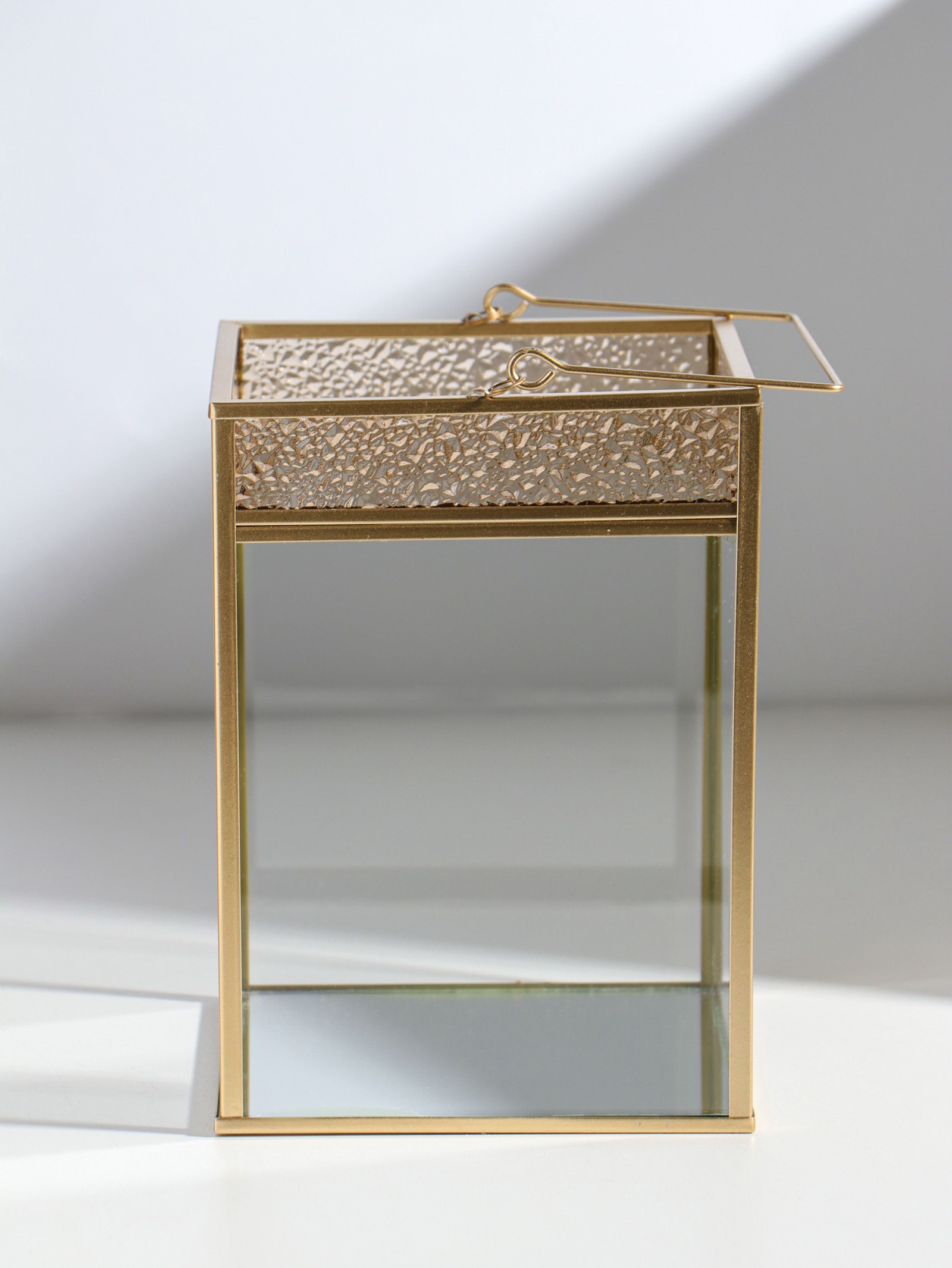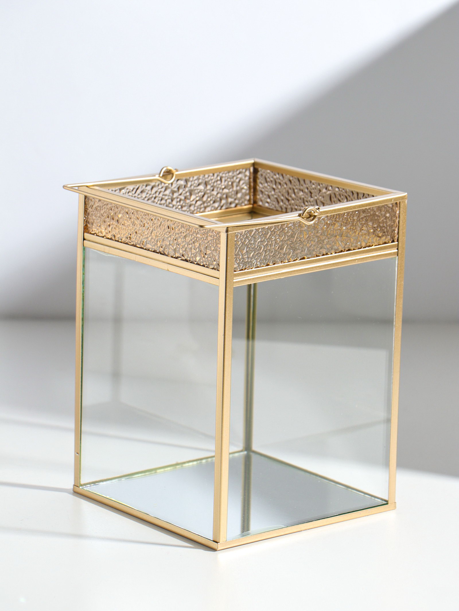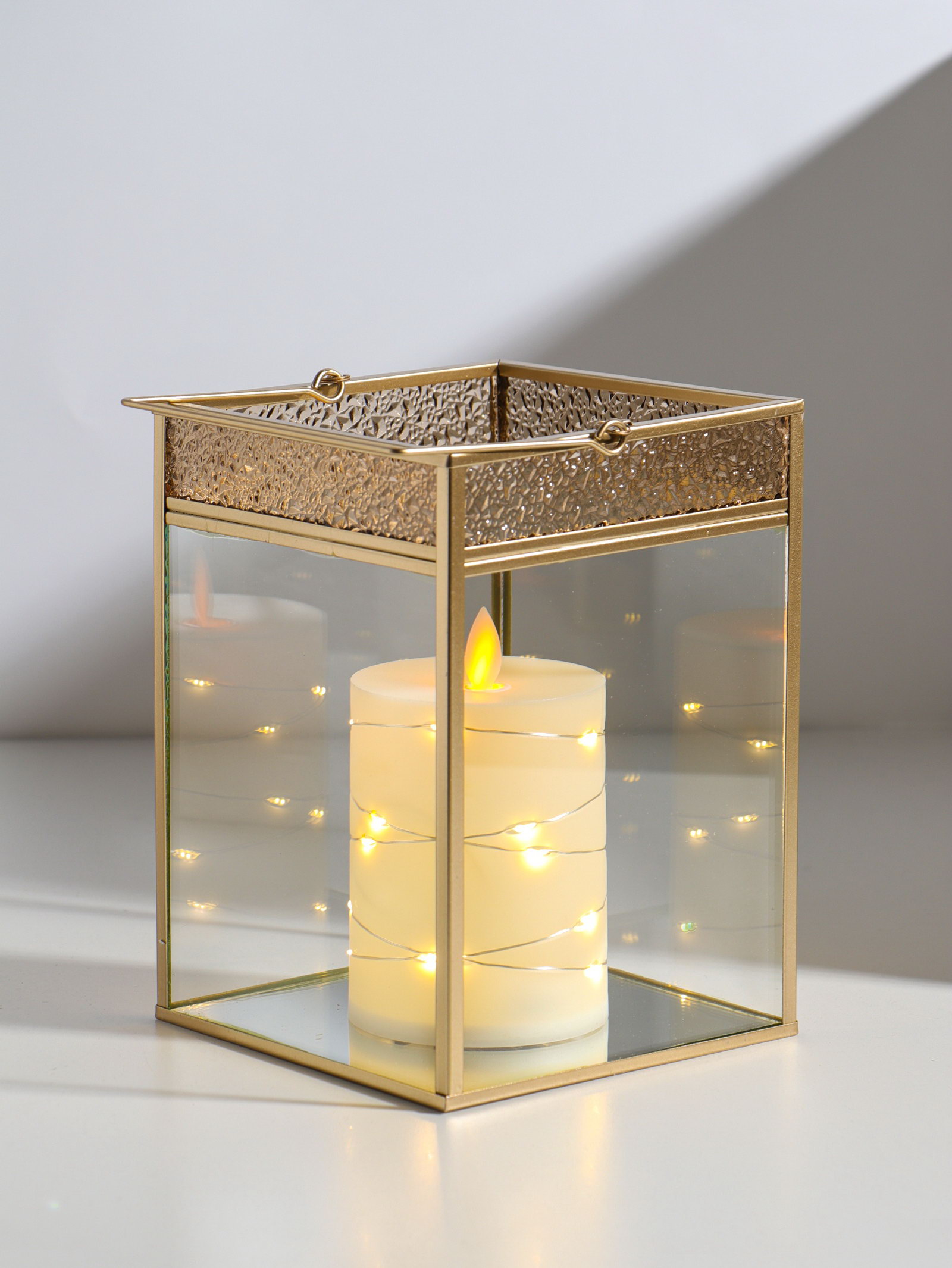 Атмосфера в деталях Мягкий свет, проходящий сквозь стекло и играющий на золотых гранях, превращает обычную свечу в центр притяжения. Фонарь не просто освещает пространство он задаёт настроение, создавая игру тени и света. Поставьте его на камин, обеденный стол или прикроватную тумбу, чтобы добавить интерьеру глубины и тепла. | ||