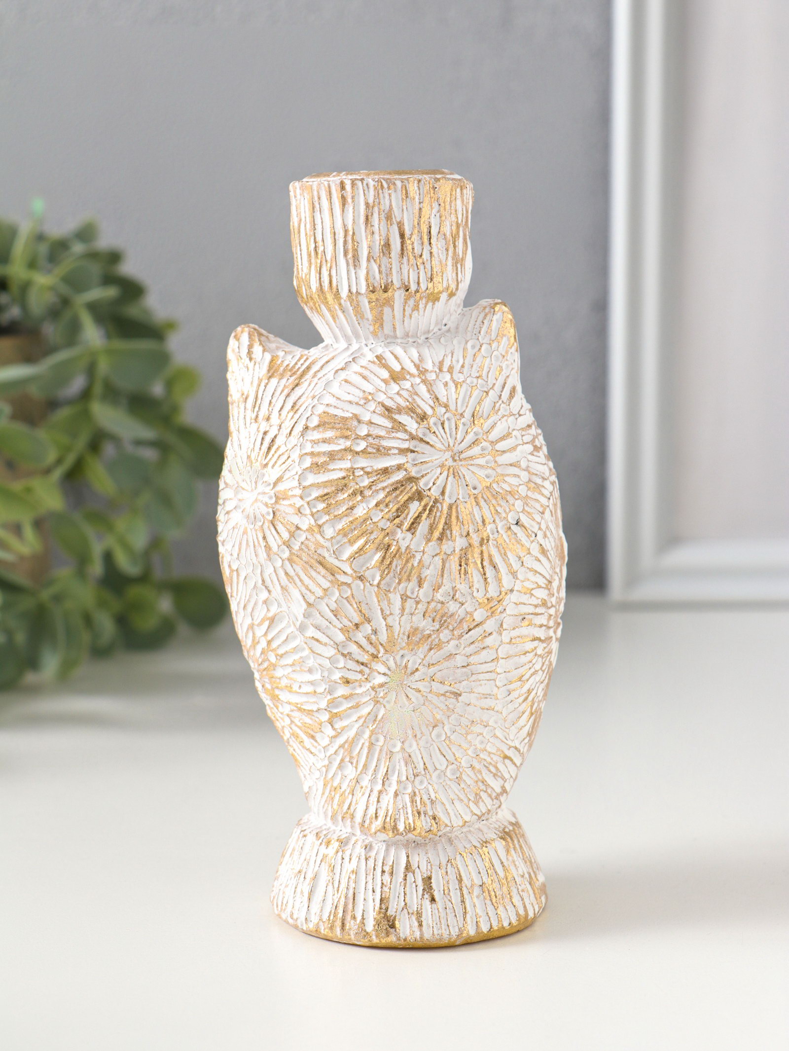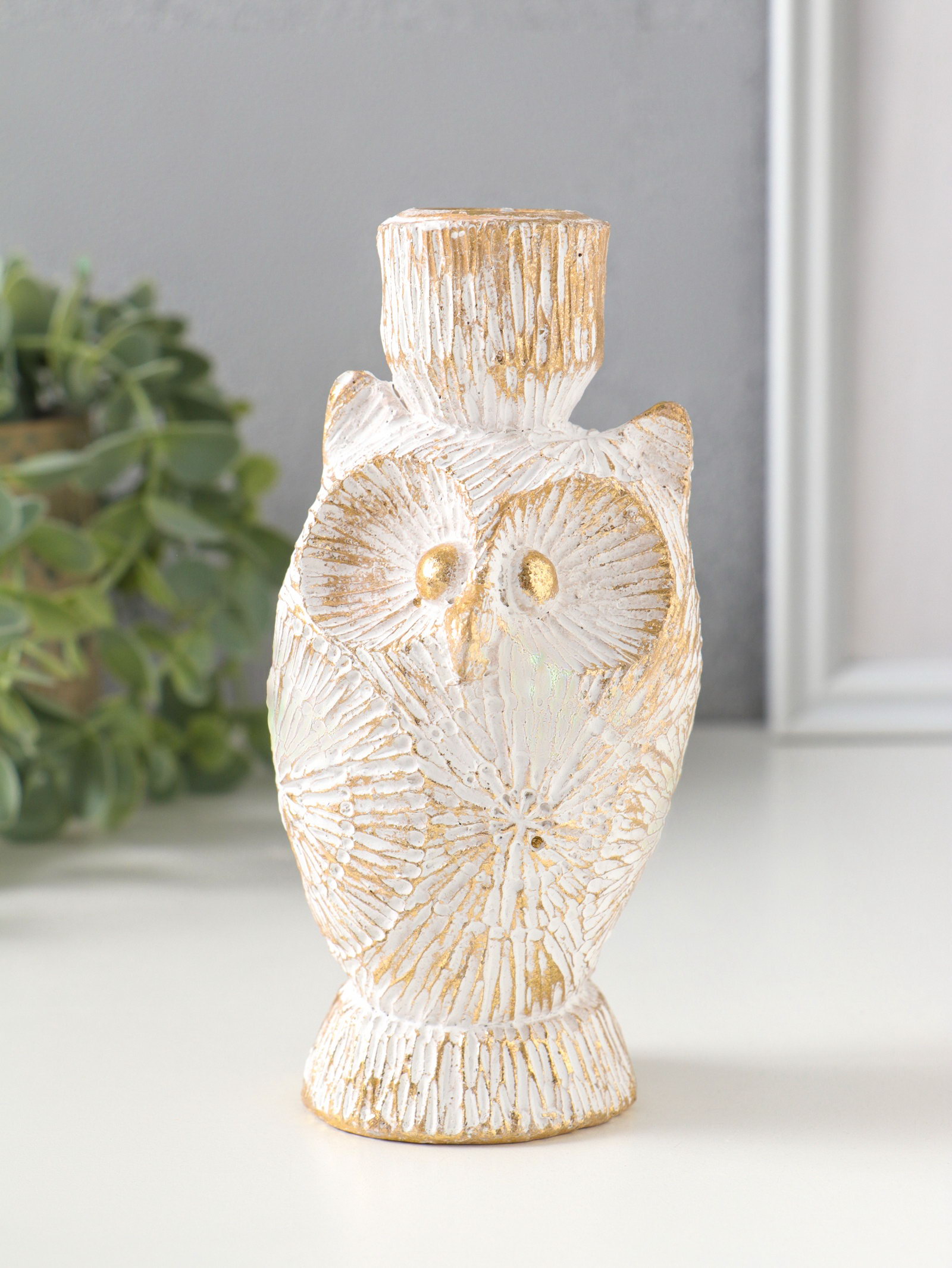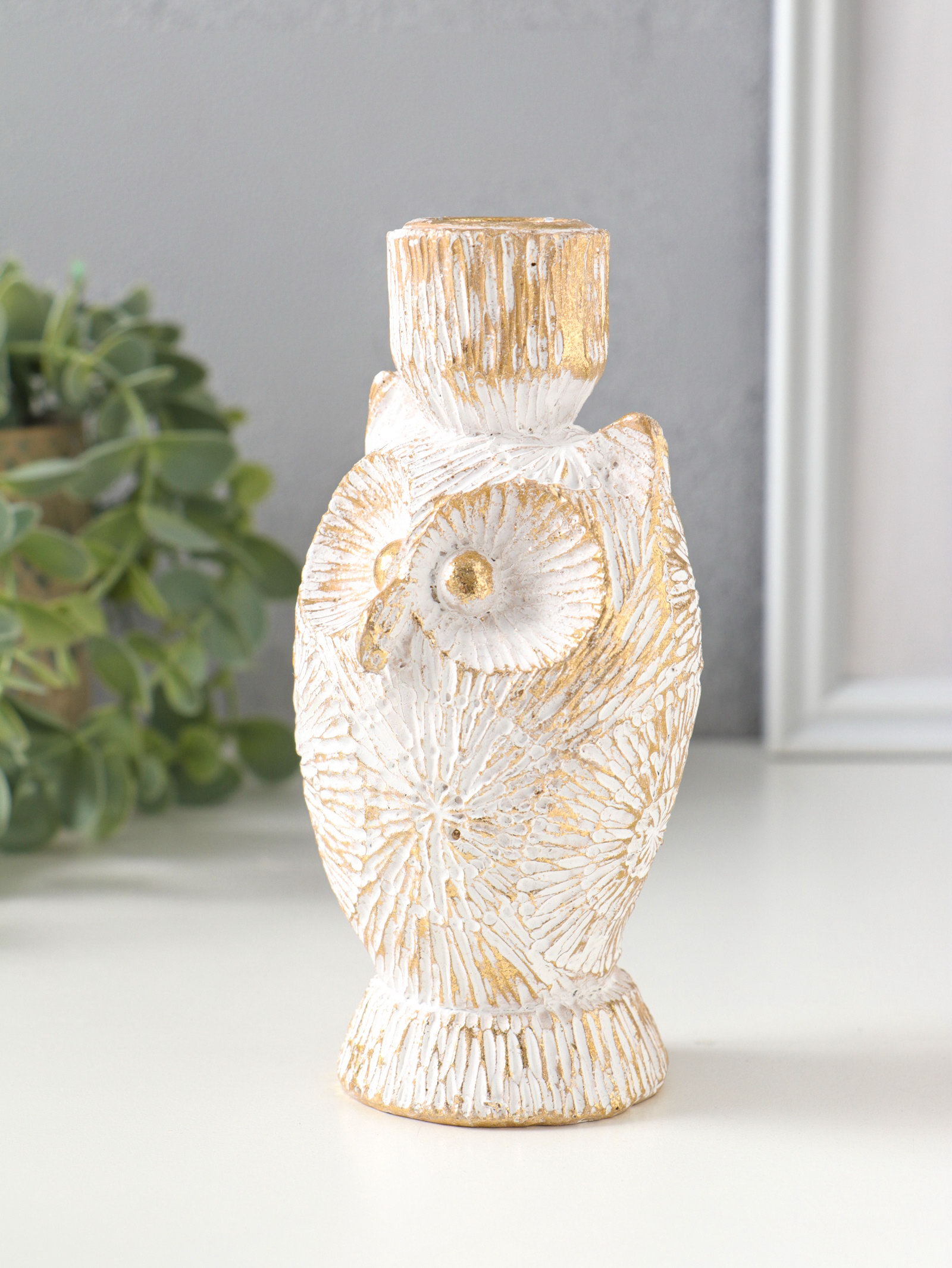 Подсвечник полистоун на 1 свечу "Филин. Золотые круги" d=2.2 см 7х6.5х14 см, 5.5x7x14 см., Китай