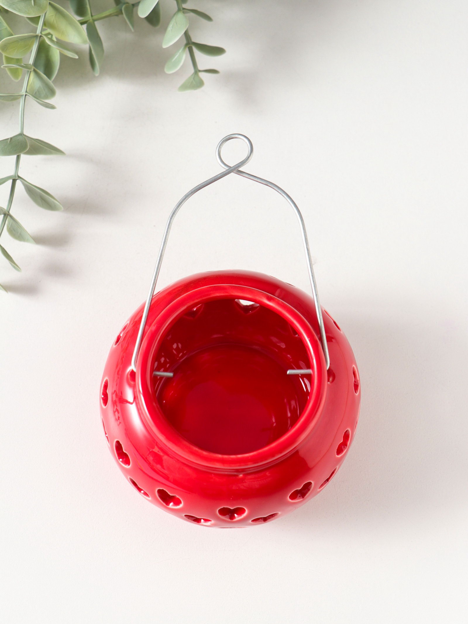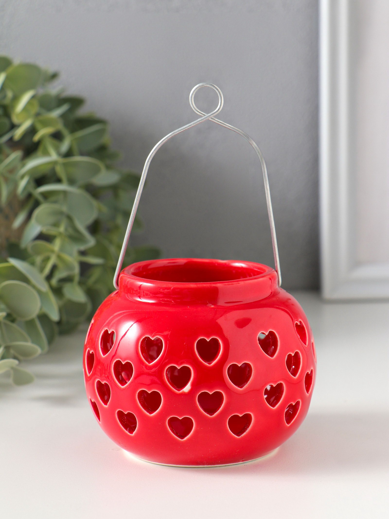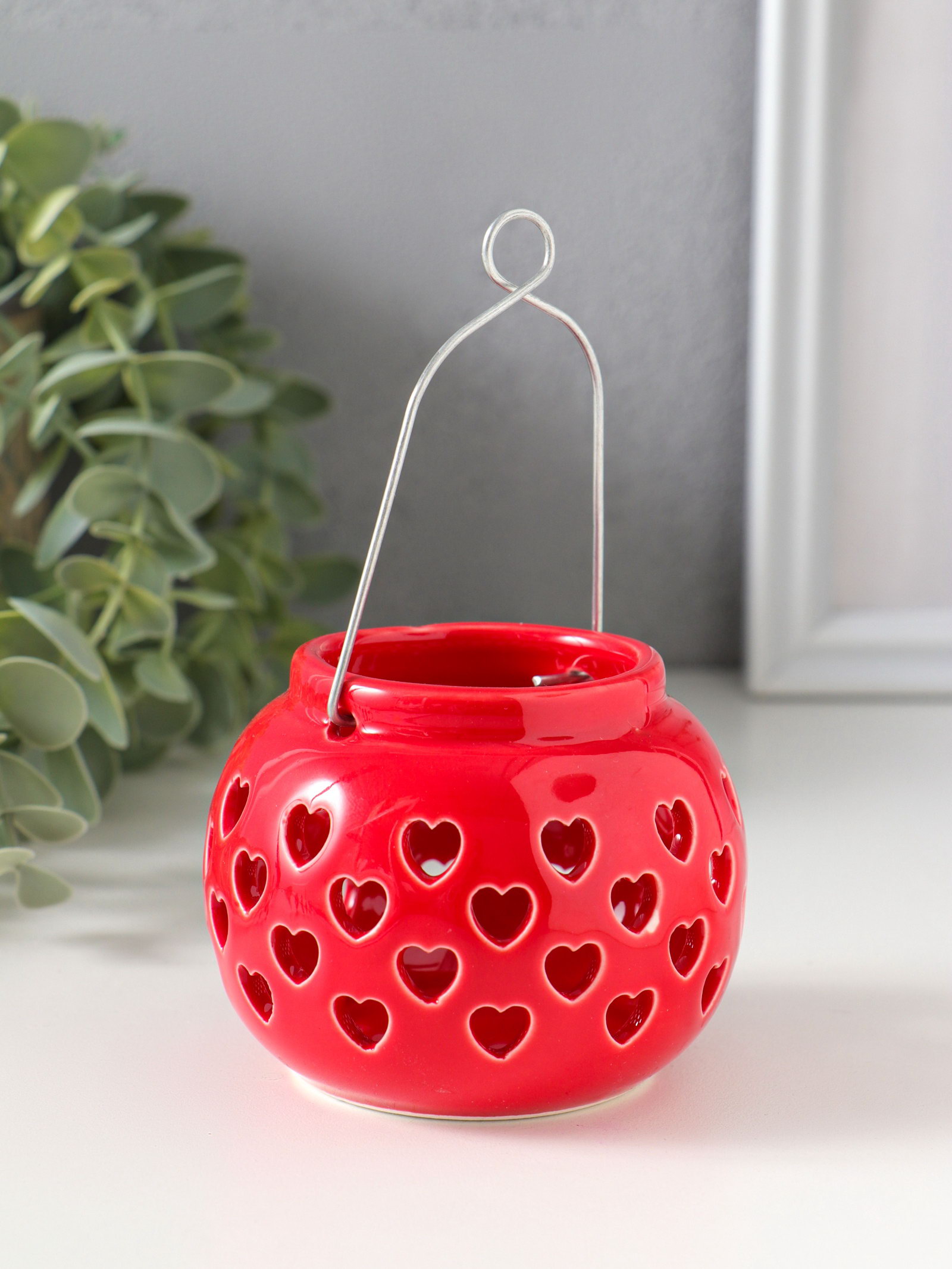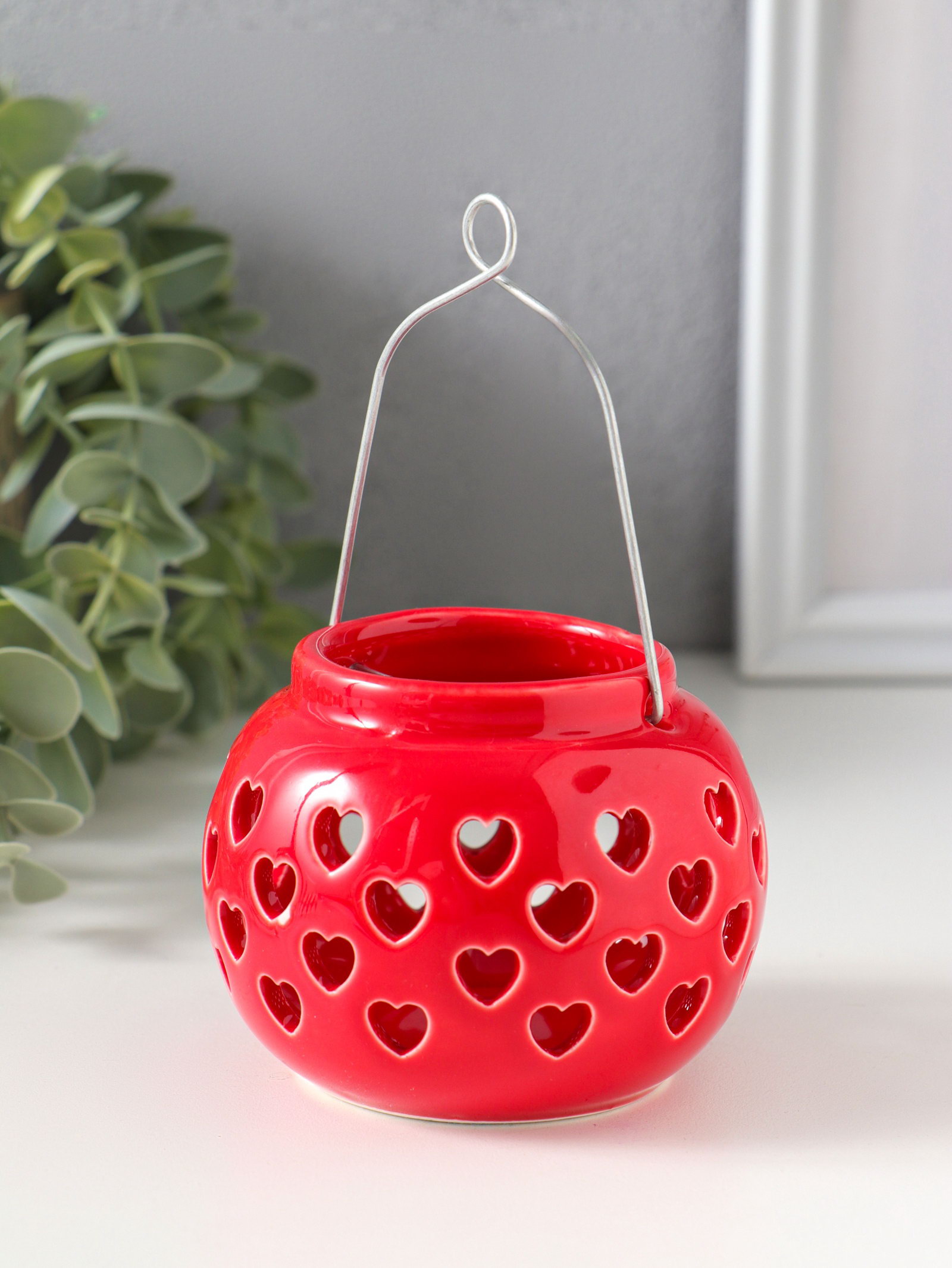 Подсвечник керамика 1 свеча "Фонарик с сердцами" красный 8х8х6.7 см, 8x8x6.7 см., Китай