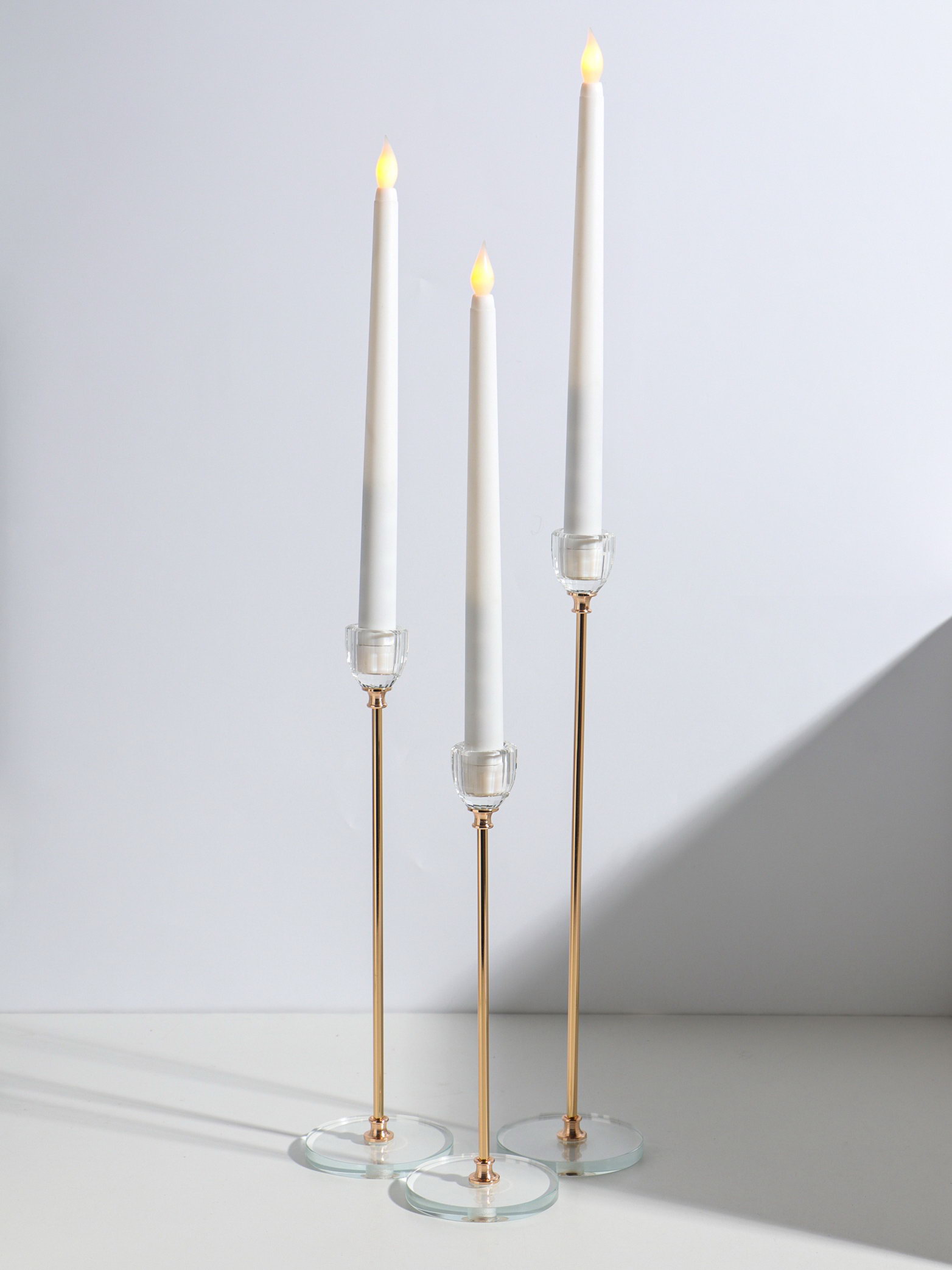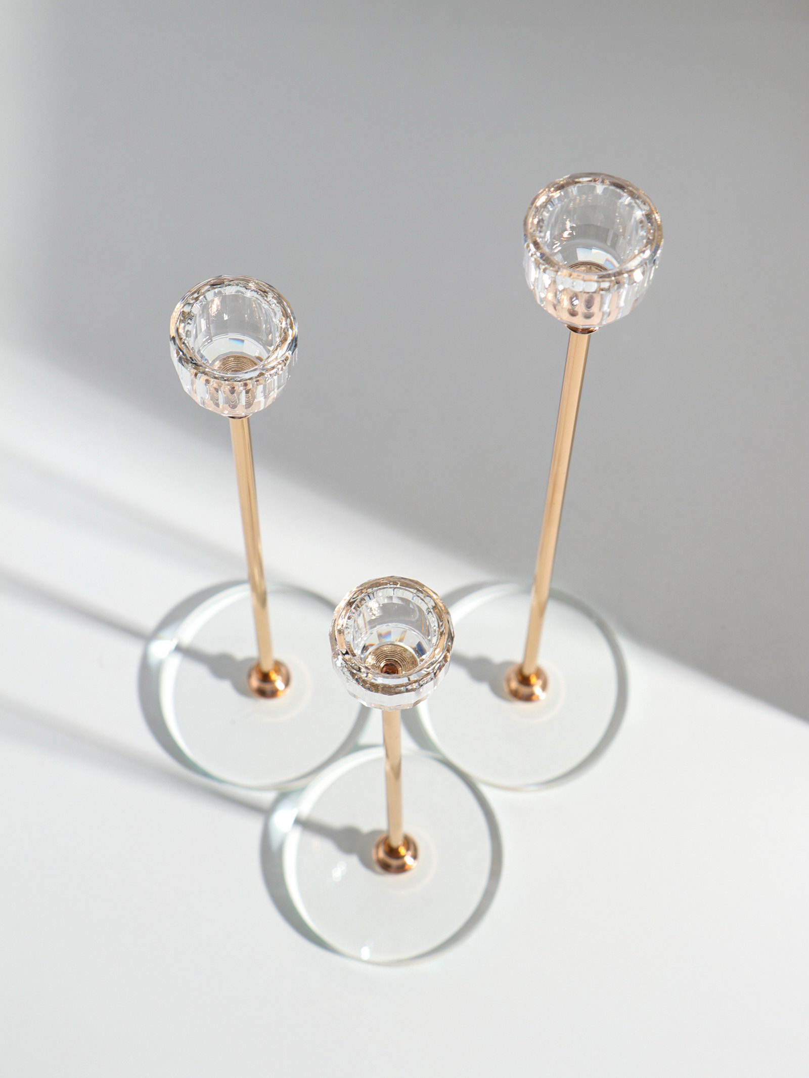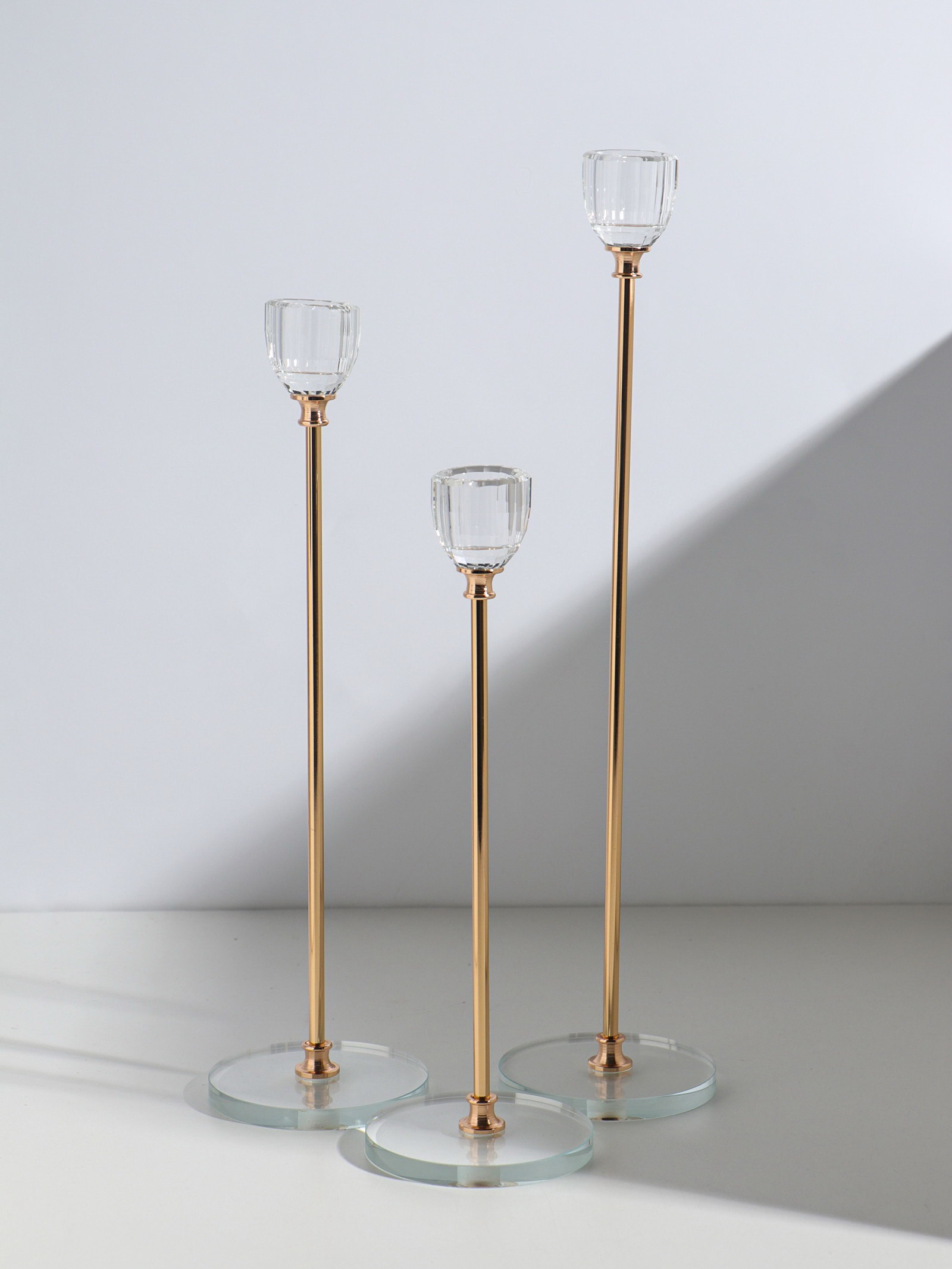 Подсвечник стекло, металл "Чаша-кристалл" d=2.2 см набор 3 шт h=23, 27.5 и 32.5 см, 8x8x32.5 см., Китай