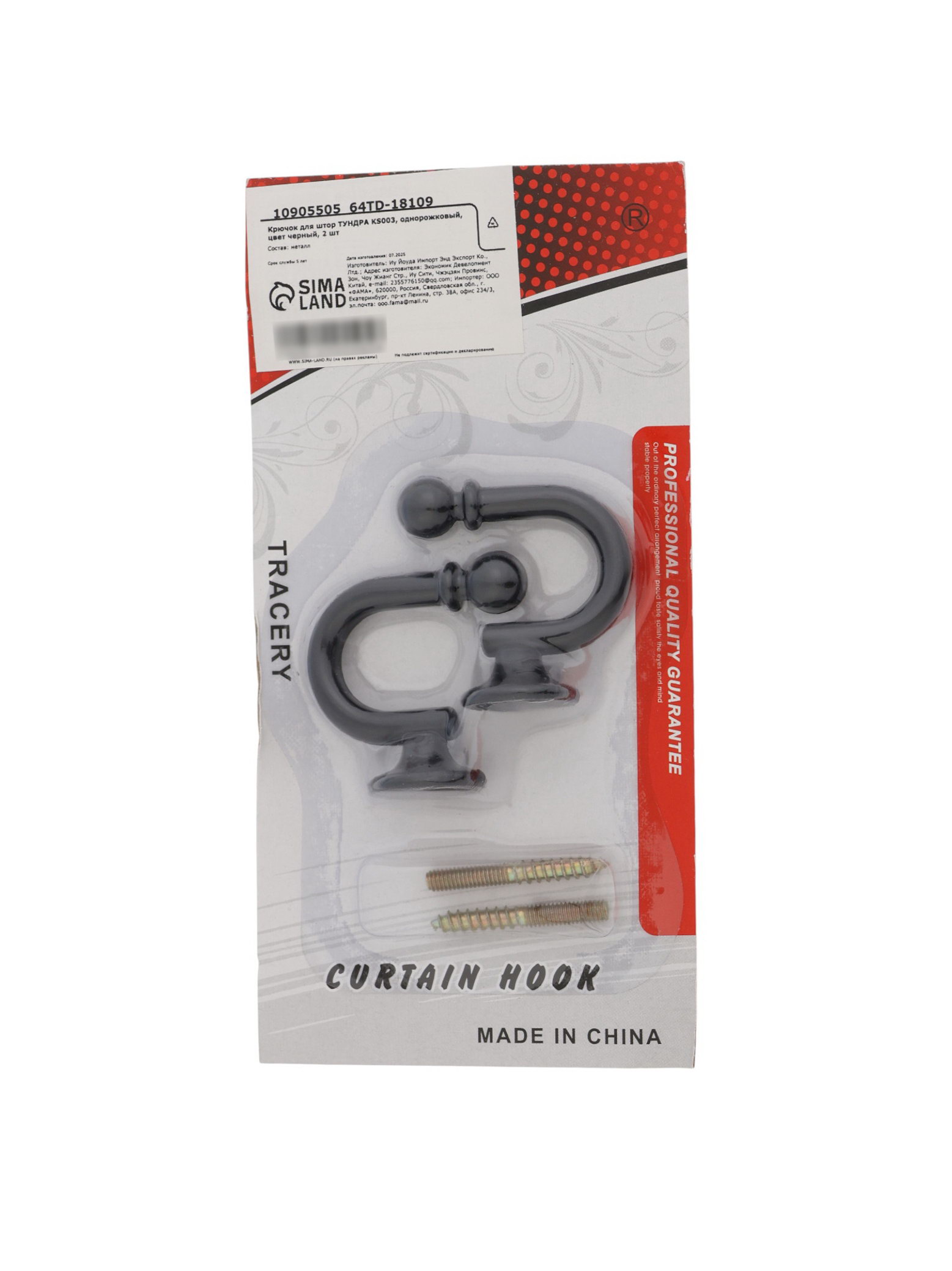 Держатель для штор KS003, однорожковый, черный, 2 шт., 3.1x3.5x3.7 см., ТУНДРА, Китай