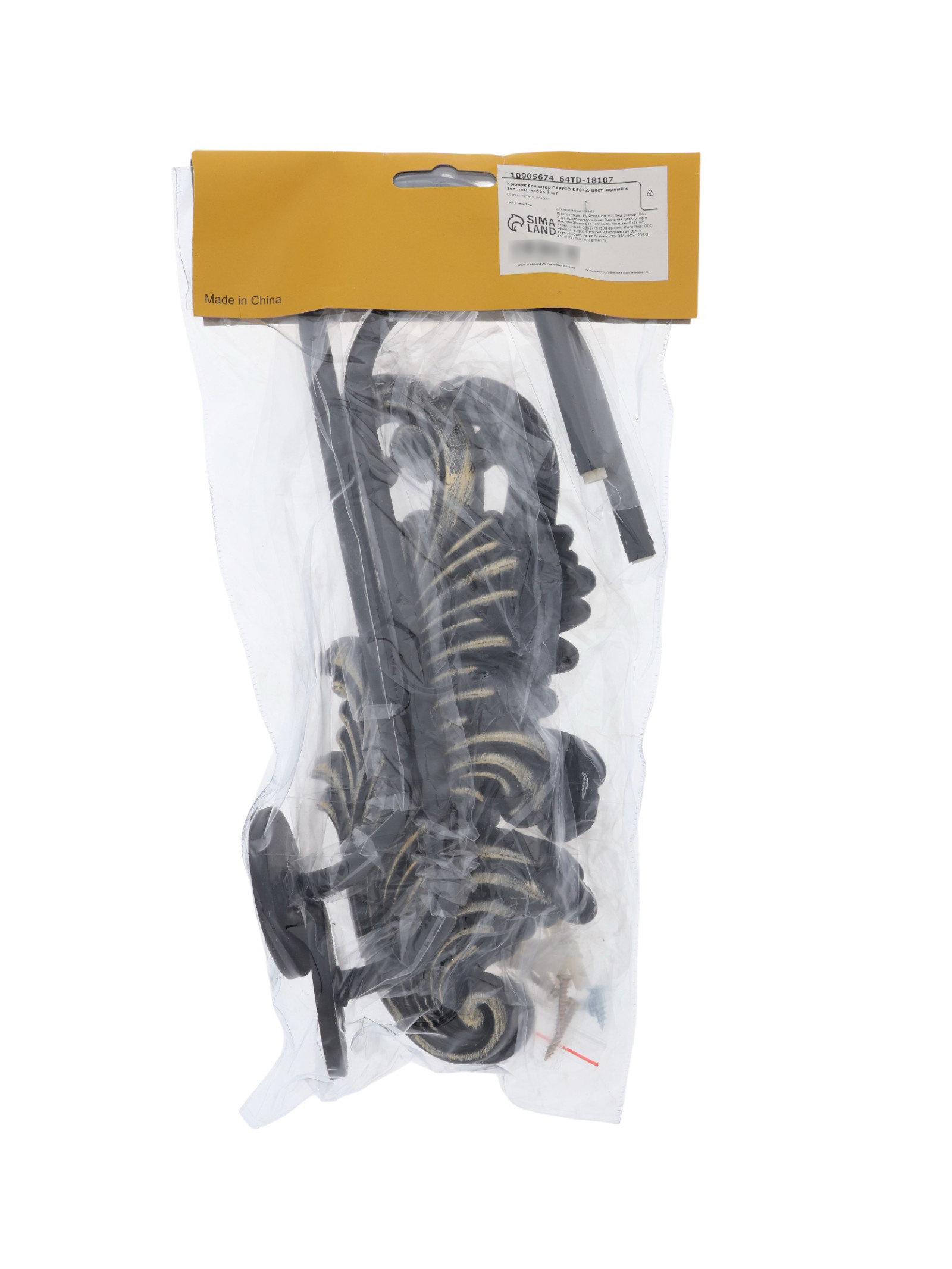Держатель для штор KS042, черный с золотом, набор 2 шт., 15x26x3 см., CAPPIO, Китай