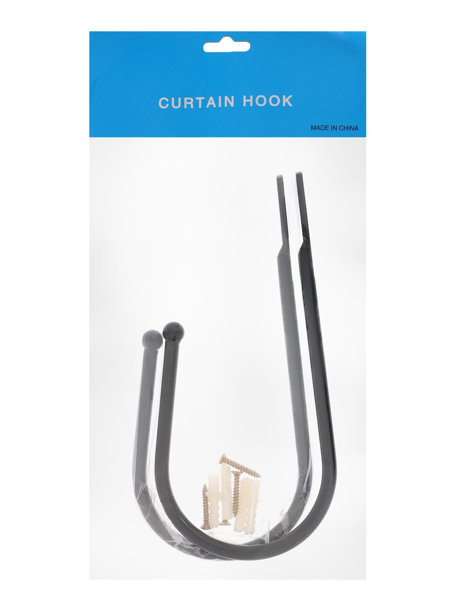 Держатель для штор KS011, однорожковый, черный, 2 шт., 9.5x20x0.8 см., ТУНДРА, Китай