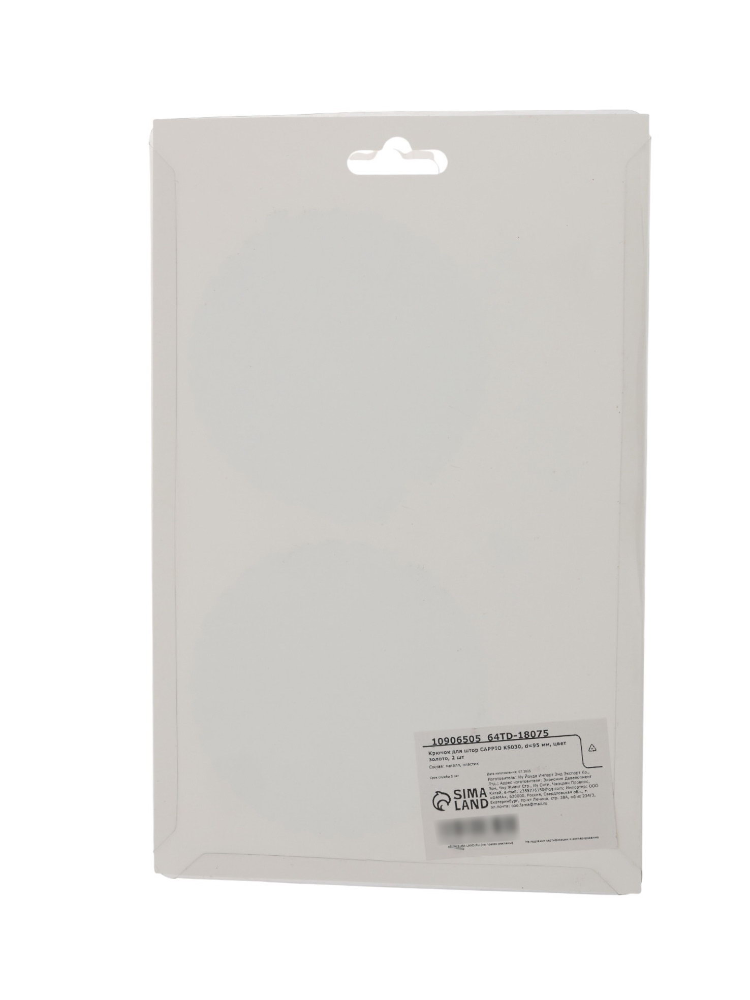 Размер упаковки: 15.5 x 4 x 24 см. tnved: 3925901000 Гарантийный срок, мес.: 6 Цвет: Золото Количество крючков: 1 | ||