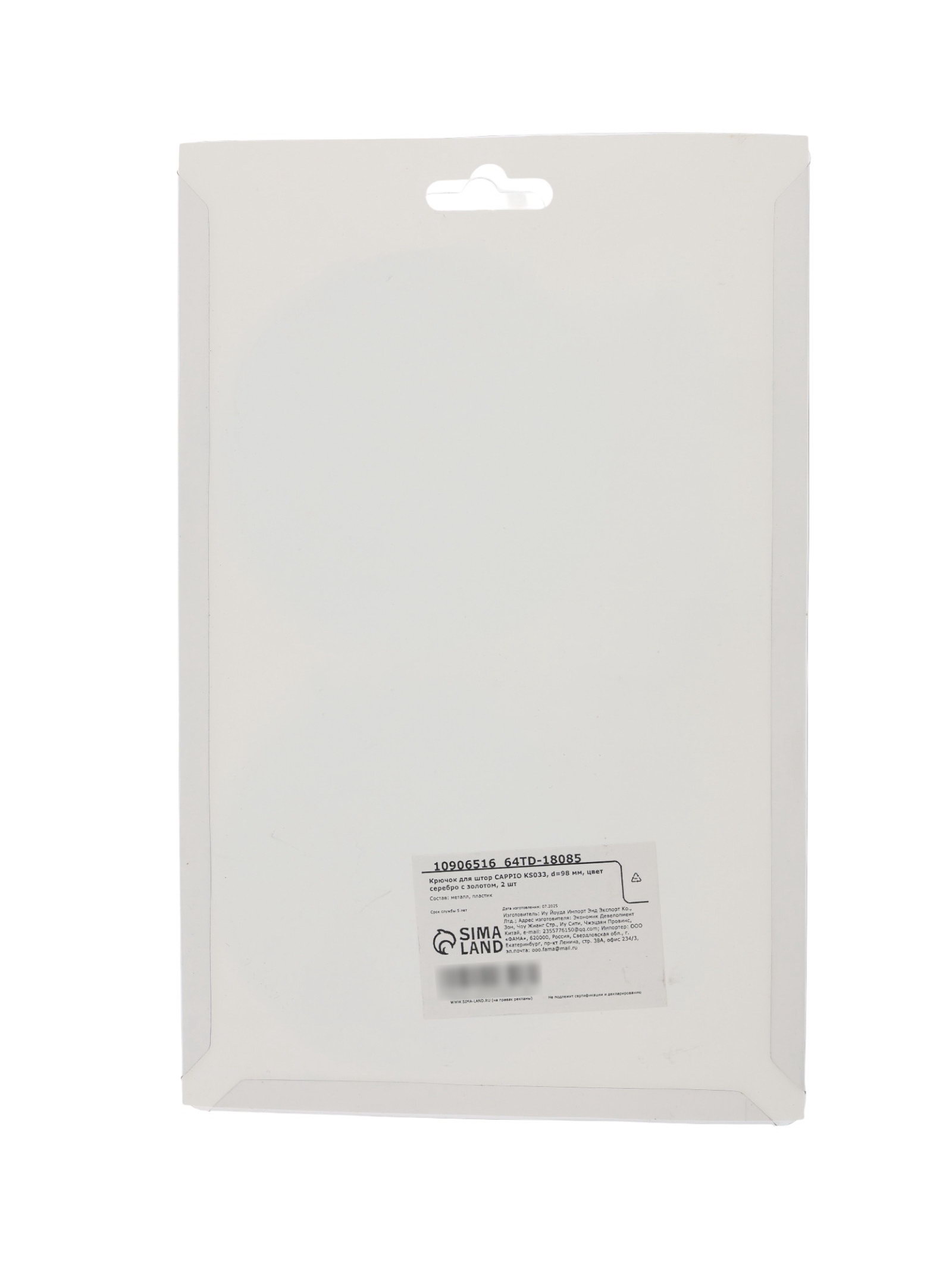 Размер упаковки: 15.5 x 4 x 24 см. Гарантийный срок, мес.: 6 tnved: 3925901000 Цвет: Серебро Количество крючков: 1 | ||