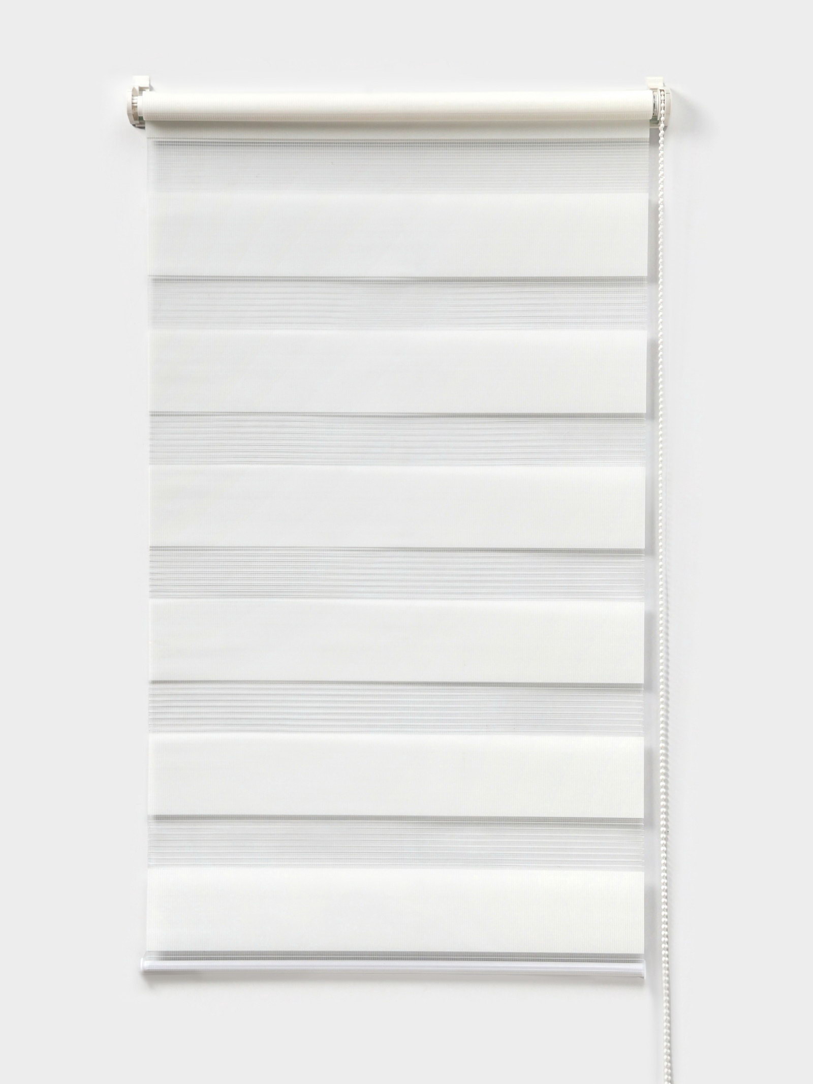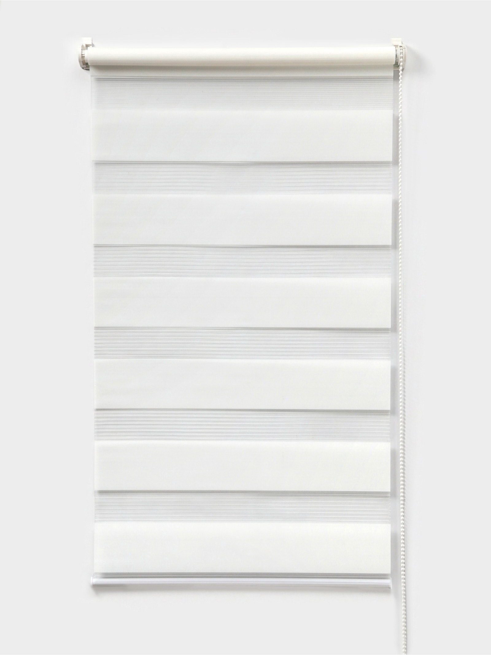 Гибкость без лишних деталей В городских квартирах окна редко выходят на идеальную сторону. То солнце палит весь день, то вечные сумерки. Эта штора не меняет сторону света, но даёт возможность подстроить освещение под себя. Утром вы открываете полосы, впуская свет, днём притеняете комнату, вечером закрываетесь от фонарей. Один механизм заменяет и плотные шторы, и лёгкий тюль. Белый цвет добавляет воздуха даже в небольшие помещения, а компактный рулон не мешает открывать створки. Всё просто: свет в комнате перестаёт быть случайностью. | ||