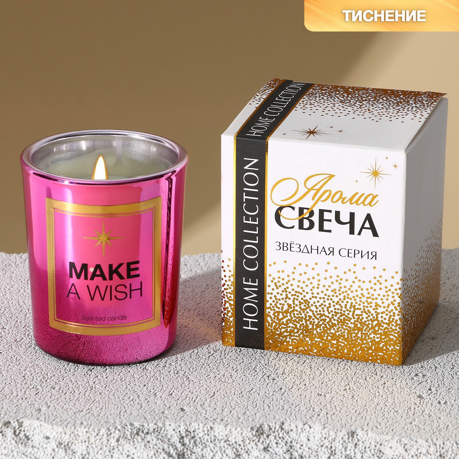 Свеча в стакане "Make a wish", 6x5x5 см., Китай