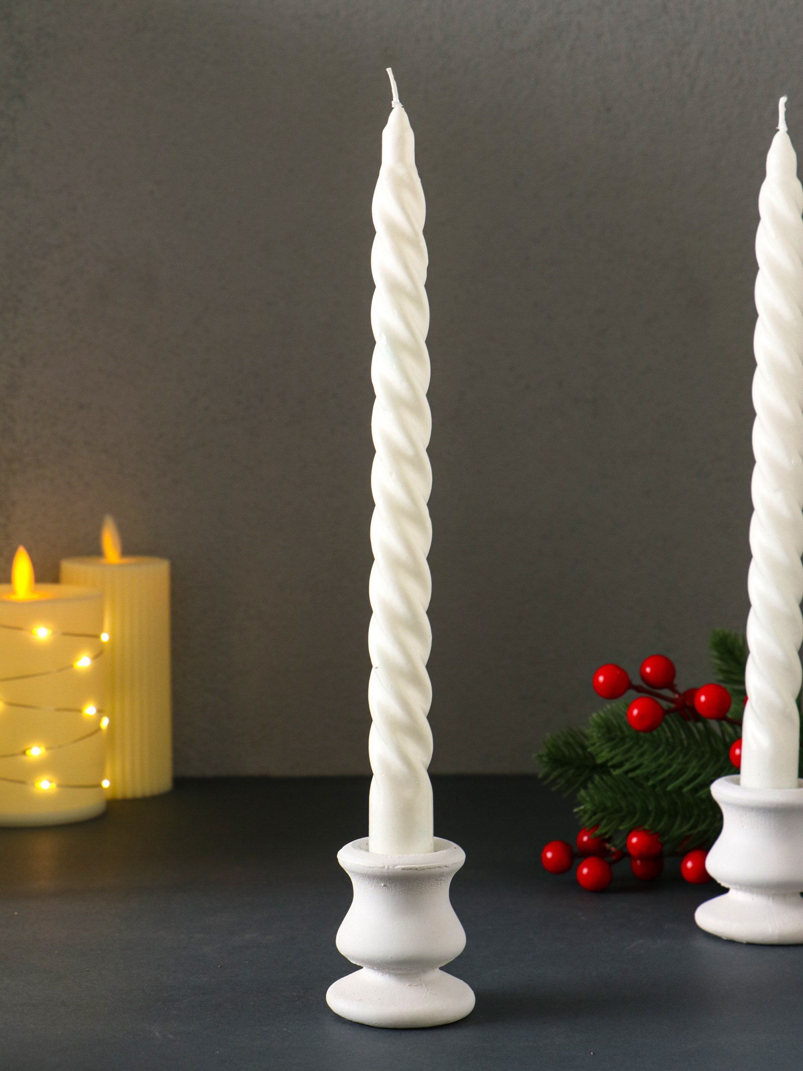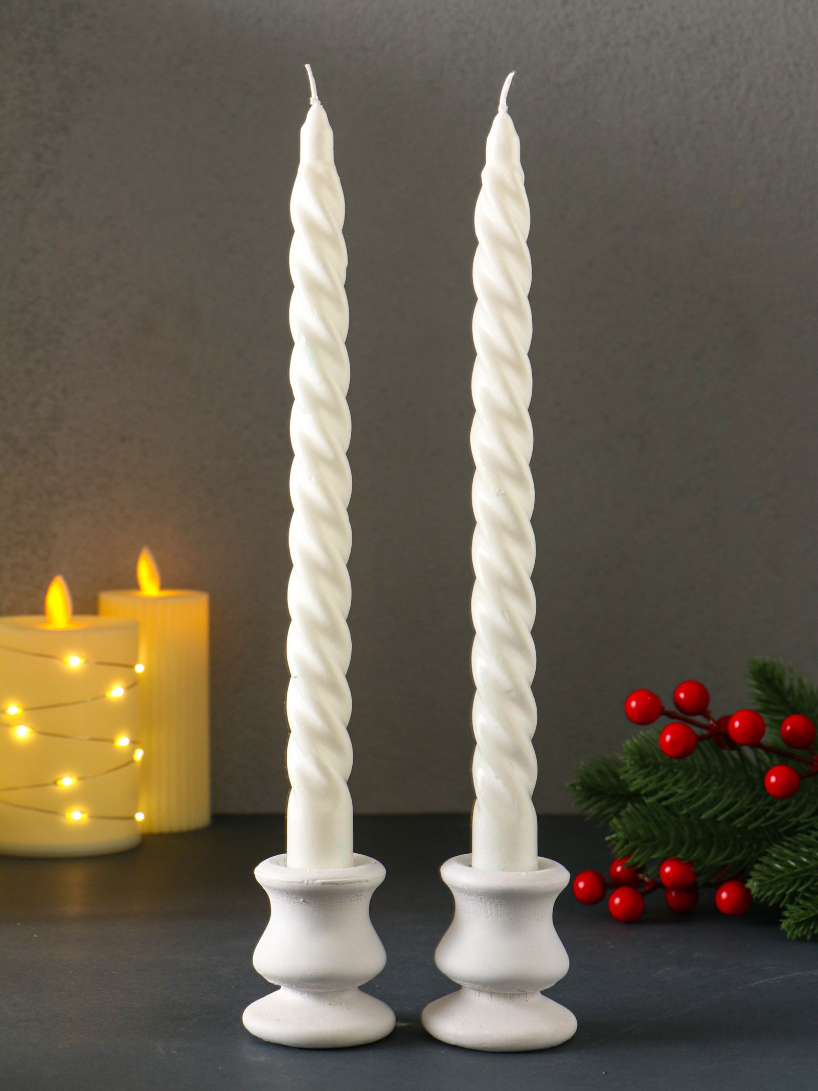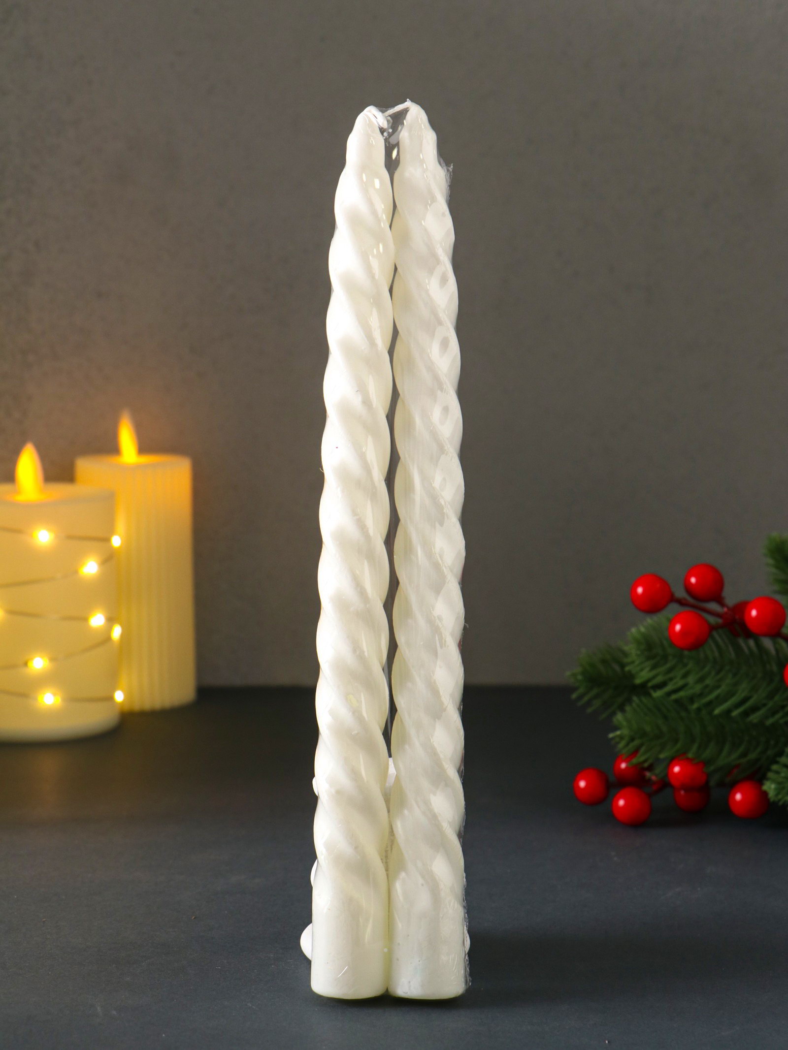 Набор свечей витых, 2.2x25 см, лакированная 2 шт., белый, 2х2х25 см., Дарим Красиво, Россия