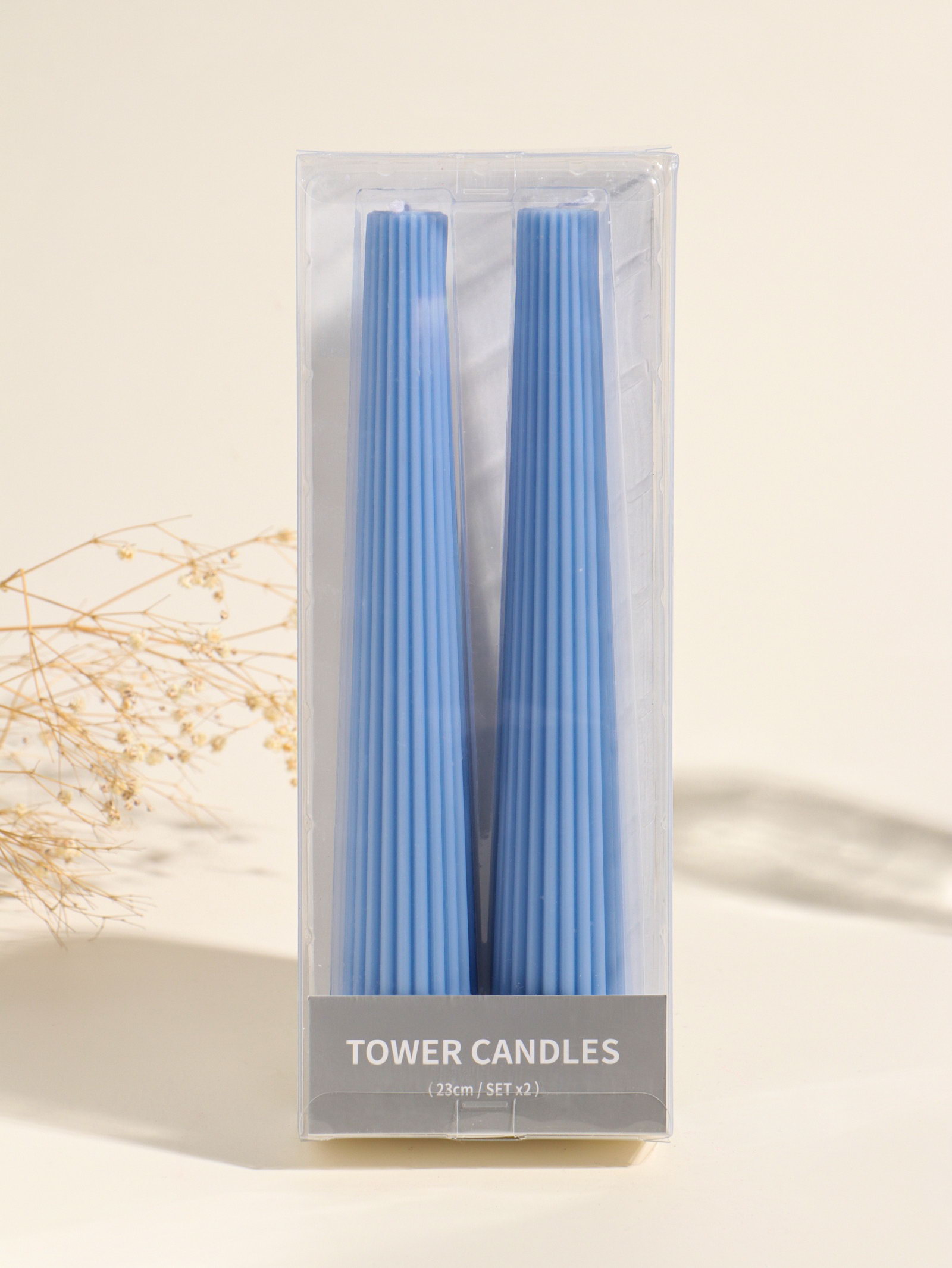 Набор свечей, 3.5x23 см, 2 шт. "Башня", тёмно-синий, 4x9.5x25 см, 3.5х3.5х25 см., Китай
