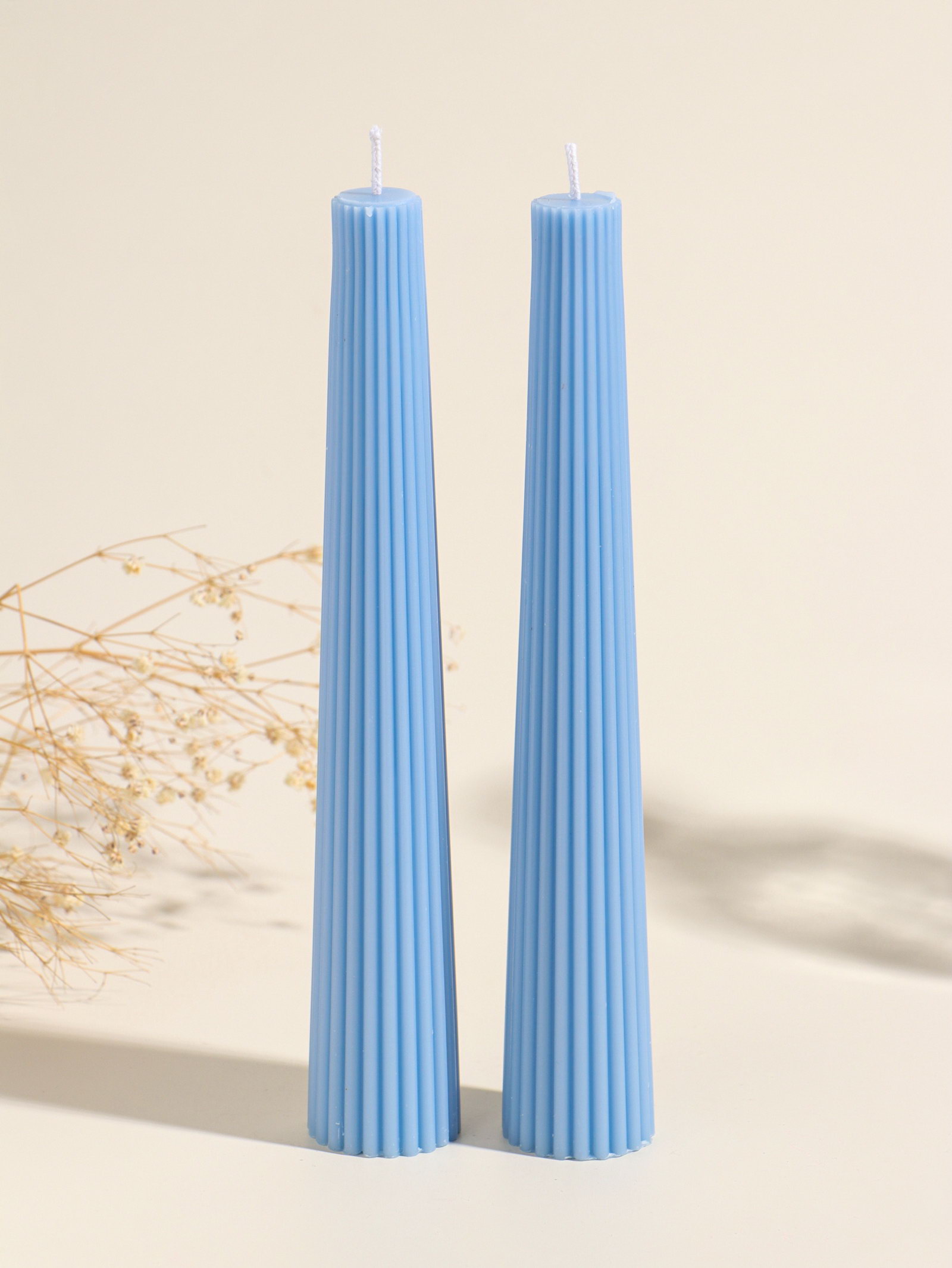 Размер упаковки: 9.5 x 25 x 4 см. tnved: 3406000000 Ручная работа: Нет Цвет: Синий Ароматизированные: Нет Высота свечи, см: 23 Набор: Да Состав: Воск Темпер. ограничение НЕ НИЖЕ ℃: -10 Темпер. ограничение НЕ ВЫШЕ ℃: +25 Аромат: Без аромата Тематика праздника: Универсальная тематика Форма свечи: Коническая Набор из двух высоких синих свечей создаёт атмосферу уединённого размышления или торжественного вечера. Их строгий конический силуэт напоминает шпили старинных башен, добавляя интерьеру вертикальный акцент и ощущение спокойной атмосферы. Пара одинаковых свечей идеально подходит для симметричной расстановки по бокам камина, зеркала или центральной композиции. Особенности набора