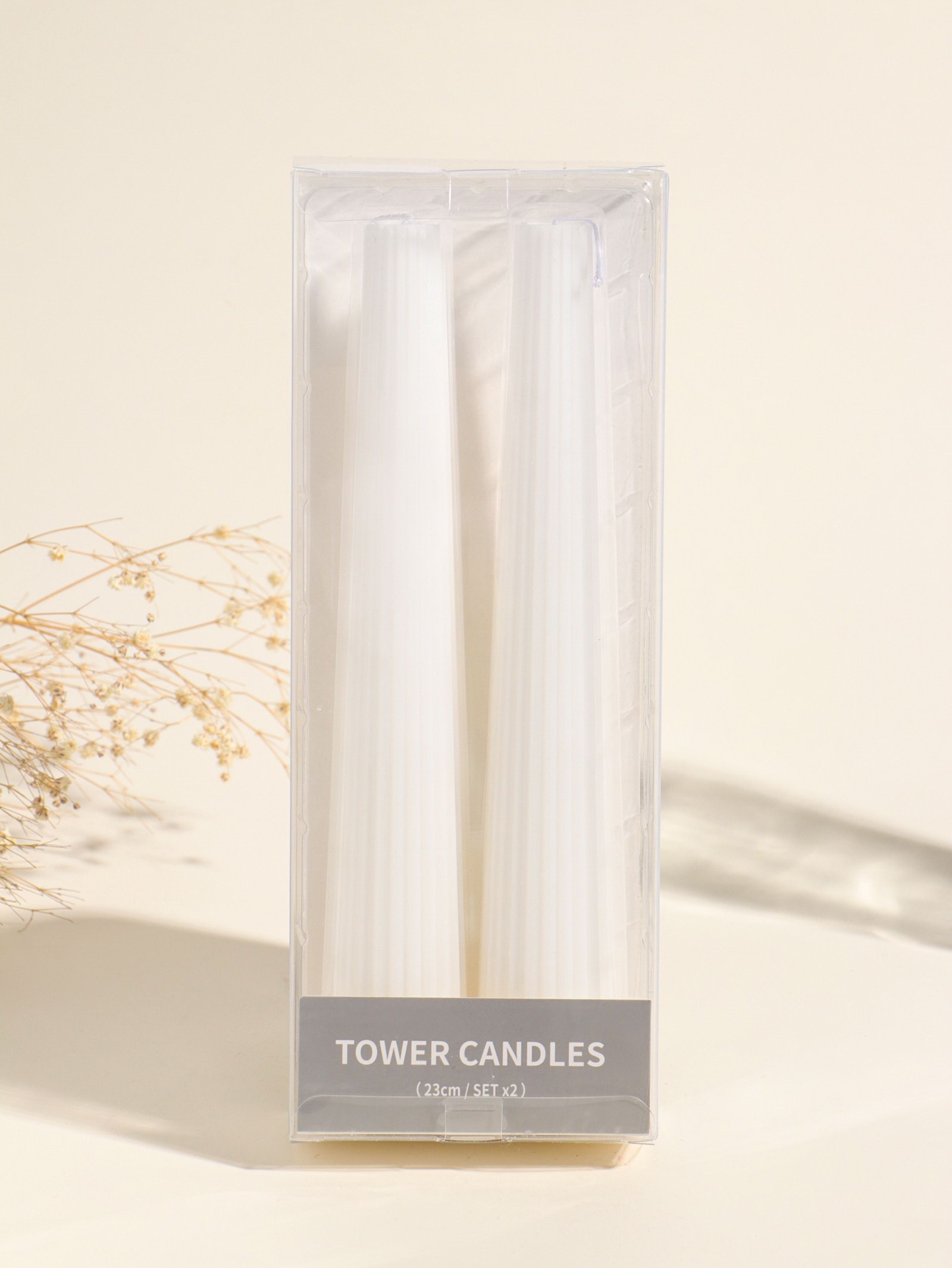 Набор свечей, 3.5x23 см, 2 шт. "Башня", белый, 4x9.5x25 см, 3.5х3.5х25 см., Китай