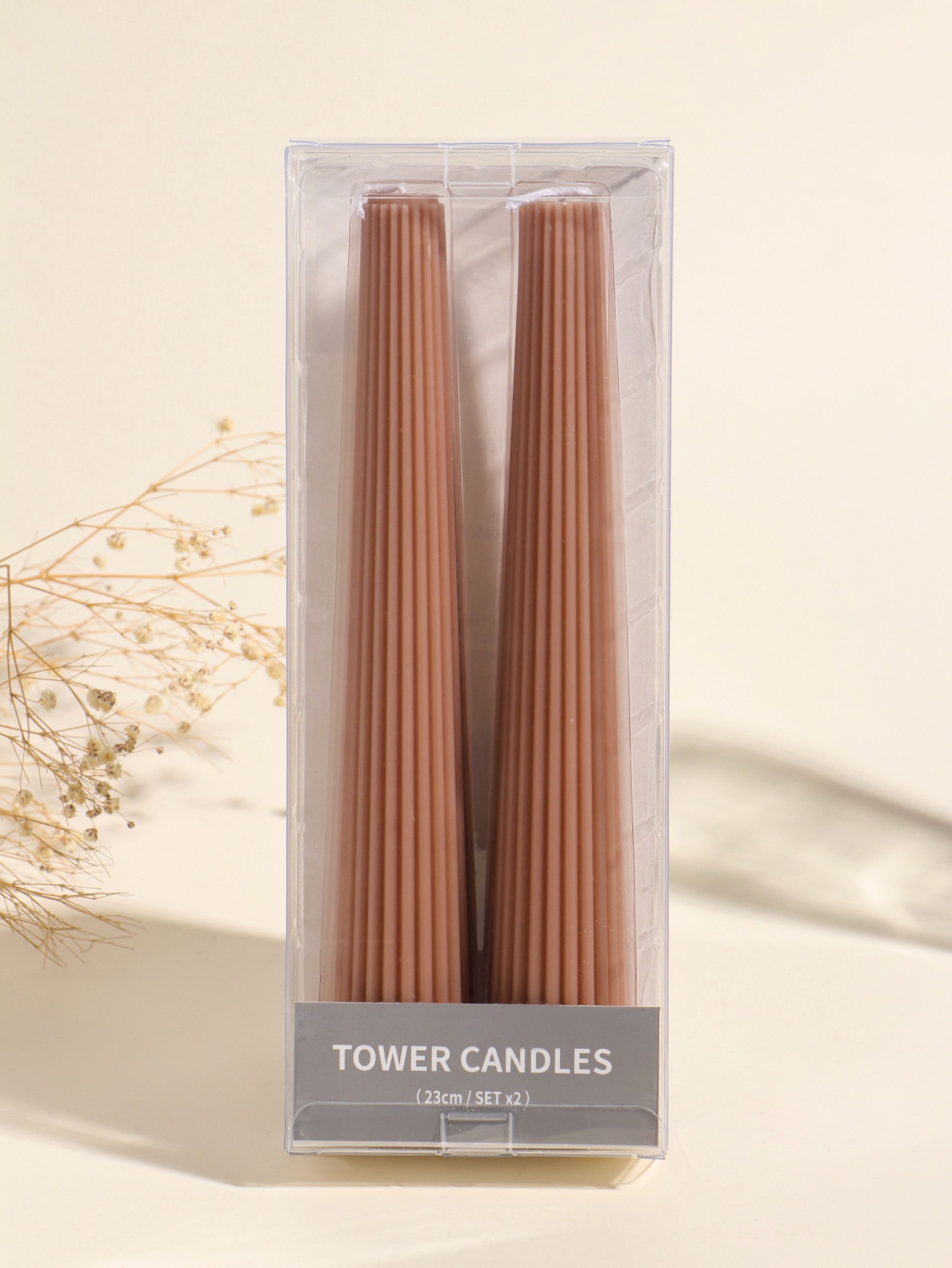Набор свечей, 3.5x23 см, 2 шт. "Башня", корица, 4x9.5x25 см, 3.5х3.5х25 см., Китай