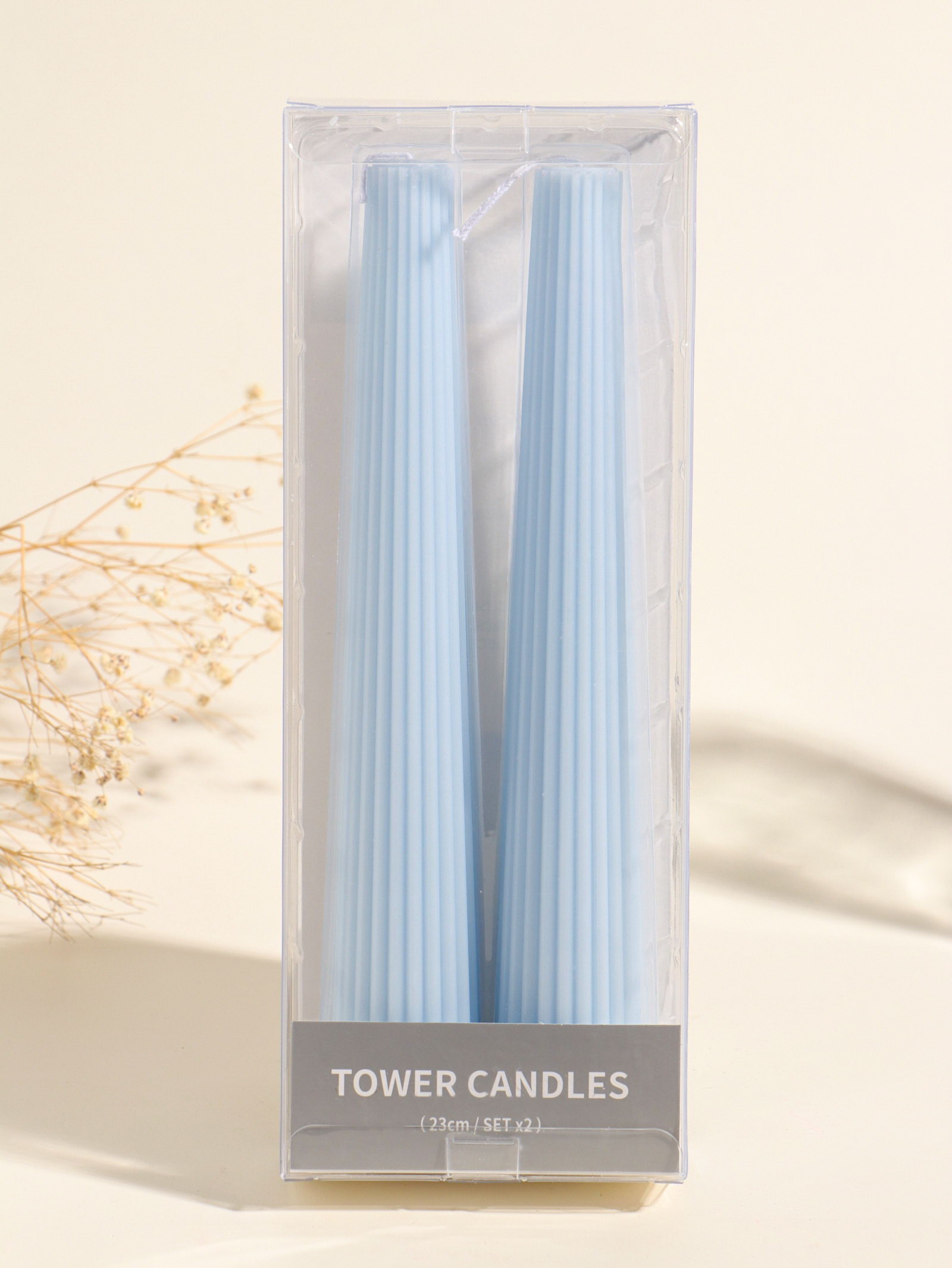 Набор свечей, 3.5x23 см, 2 шт. "Башня", светло-голубой, 4x9.5x25 см, 3.5х3.5х25 см., Китай
