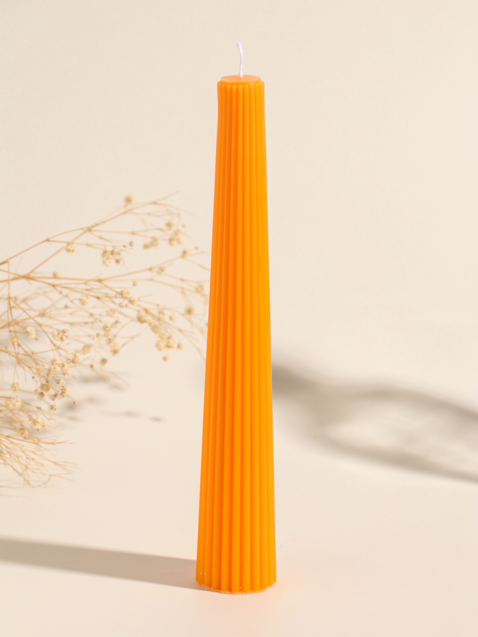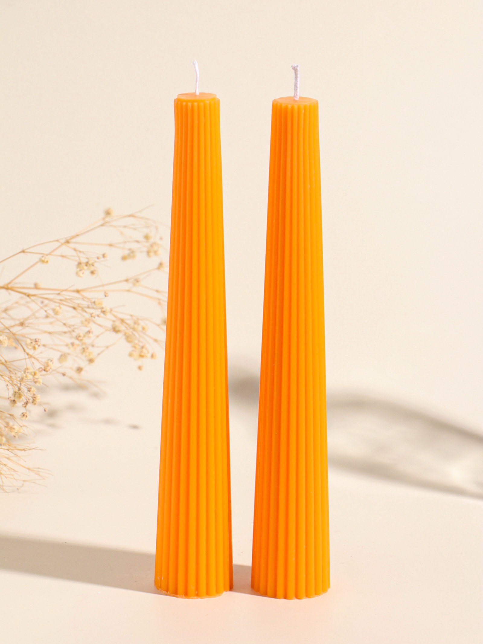 Размер упаковки: 9.5 x 25 x 4 см. tnved: 3406000000 Ручная работа: Нет Цвет: Оранжевый Ароматизированные: Нет Высота свечи, см: 23 Набор: Да Состав: Воск Темпер. ограничение НЕ НИЖЕ ℃: -10 Темпер. ограничение НЕ ВЫШЕ ℃: +25 Аромат: Без аромата Форма свечи: Коническая Тематика праздника: Универсальная тематика Набор из двух высоких оранжевых свечей в форме башни создаст в вашем доме атмосферу уюта и торжественности. Их строгий конический силуэт и насыщенный теплый цвет подходят для любого события от романтического ужина до праздничного застолья. Особенности набора