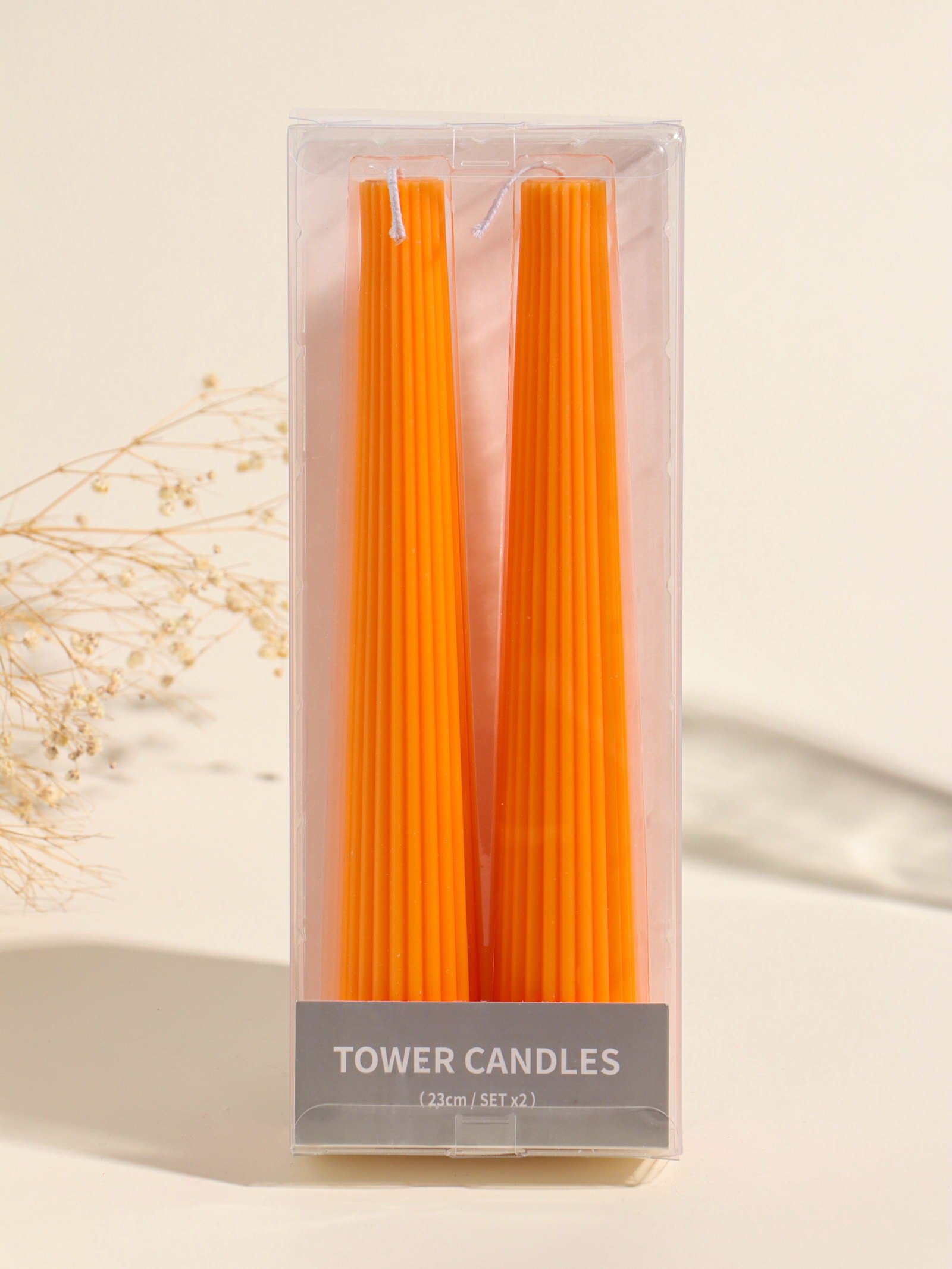 Набор свечей, 3.5x23 см, 2 шт. "Башня", апельсин, 4x9.5x25 см, 3.5х3.5х25 см., Китай
