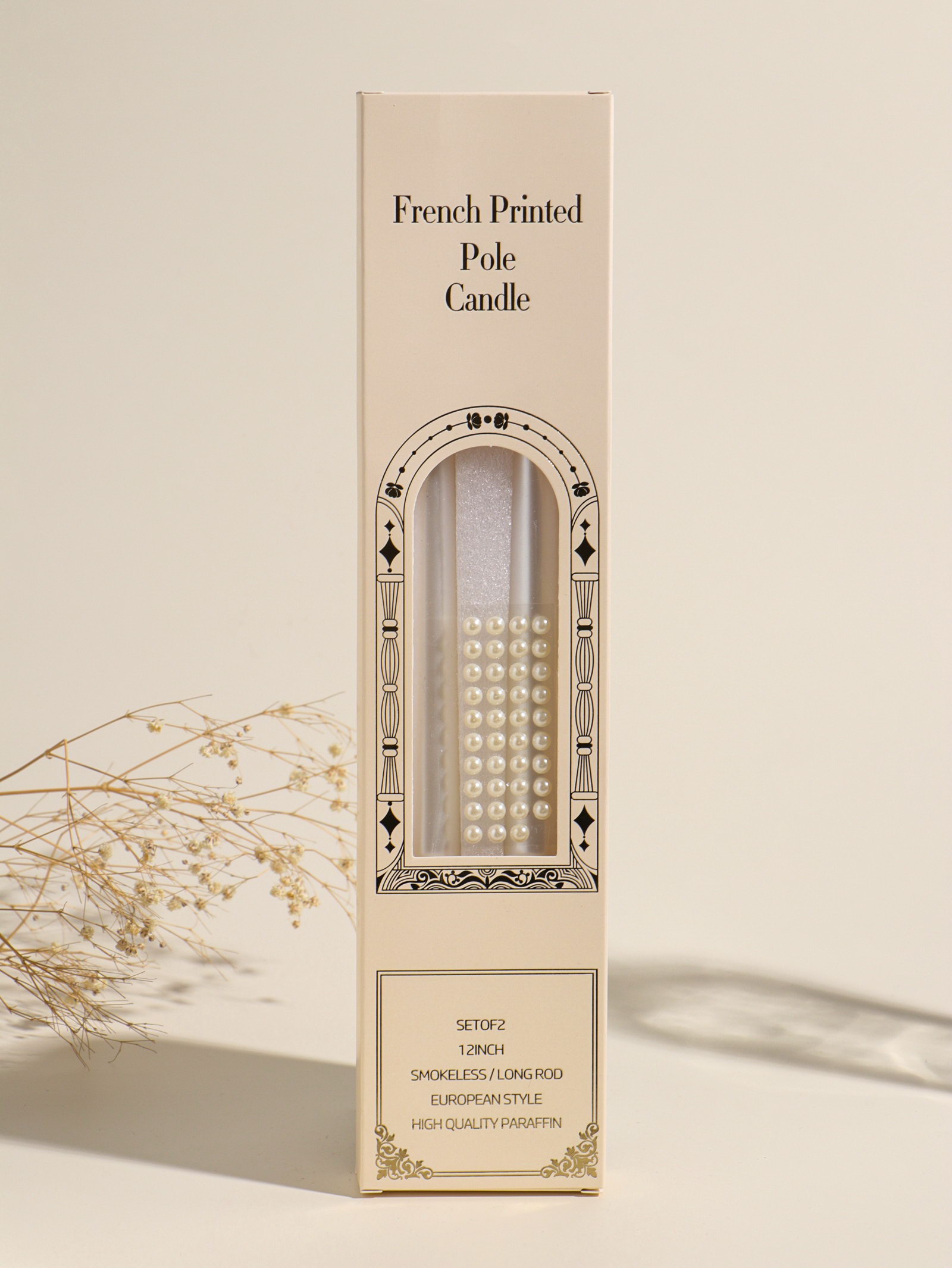 Набор свечей античных, 2.3x30 см, 2 шт. "Белый жемчуг", 7.5x33.5x2.5 см, 2.3х2.3х2.5 см., Китай