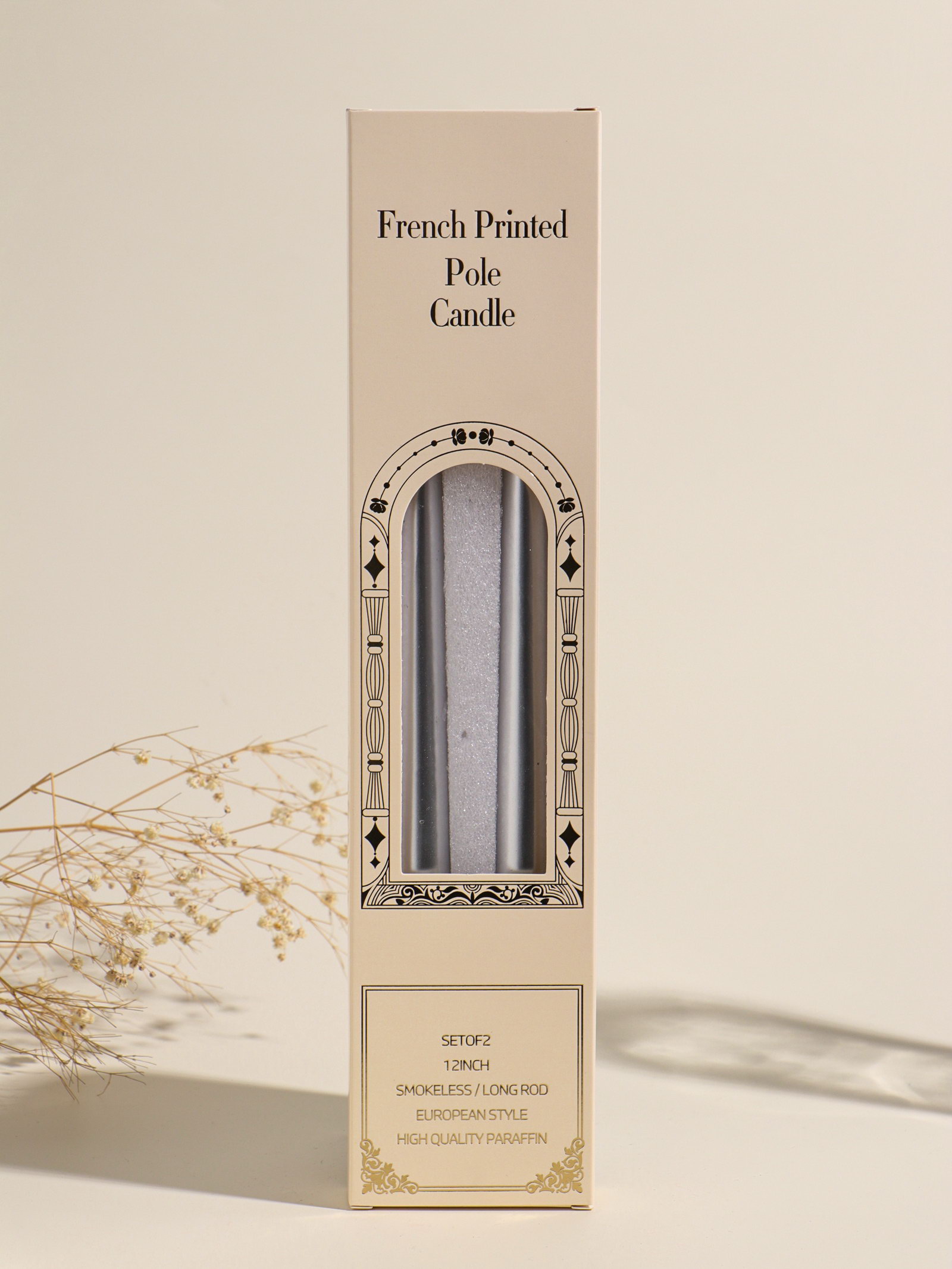 Набор свечей античных, 2.3x30 см, 2 шт. "Серебро и жемчуг", 7.5x33.5x2.5 см, 2.3х2.3х2.5 см., Китай