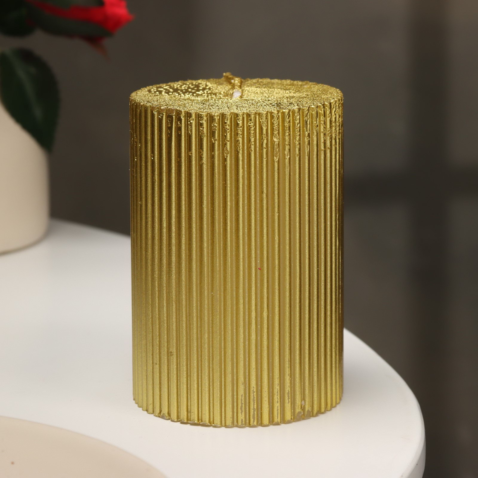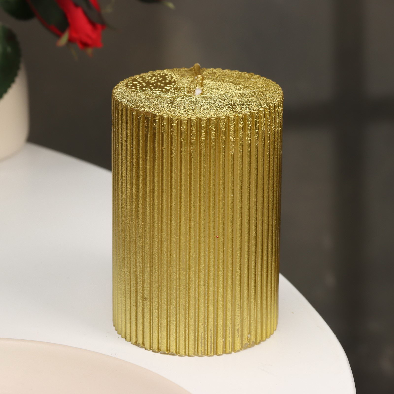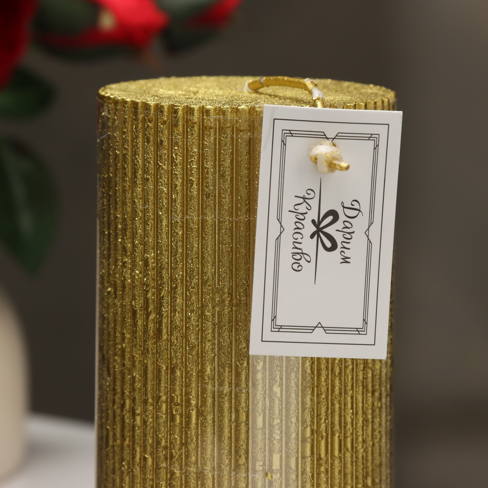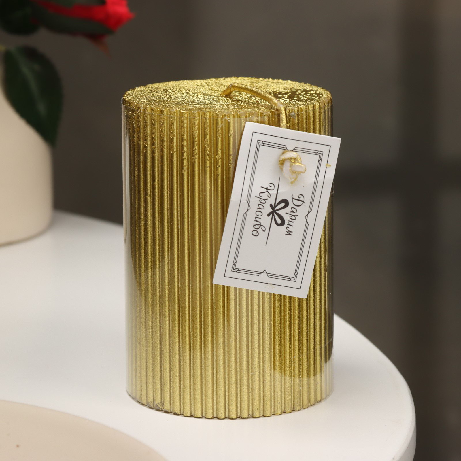 Свеча - цилиндр "Рельеф", 7x10 см, золотой металлик, Дарим Красиво, Китай