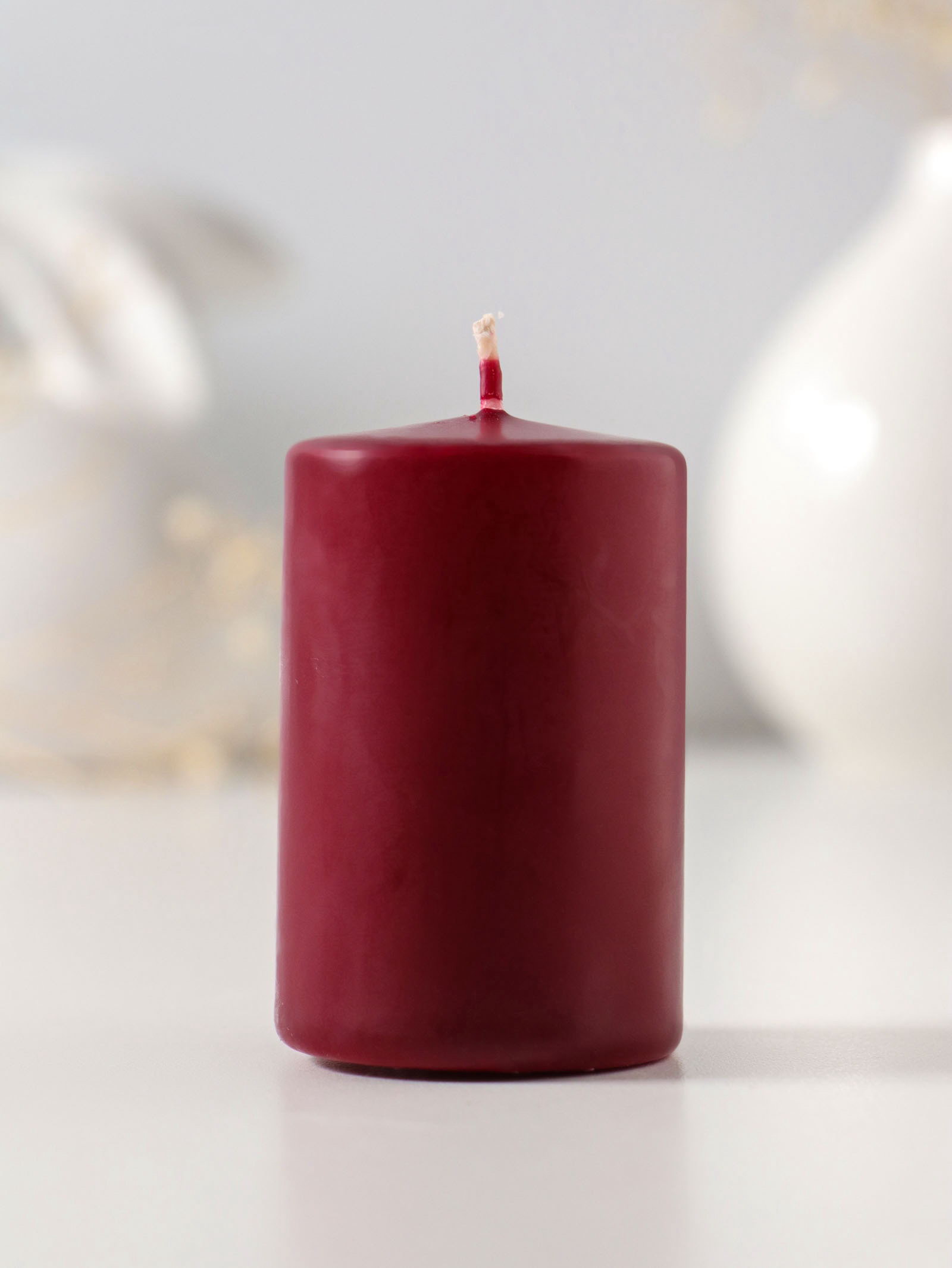 Свеча-столбик 4х6 см, 59 гр, 6 ч, цв. бордовый, Россия
