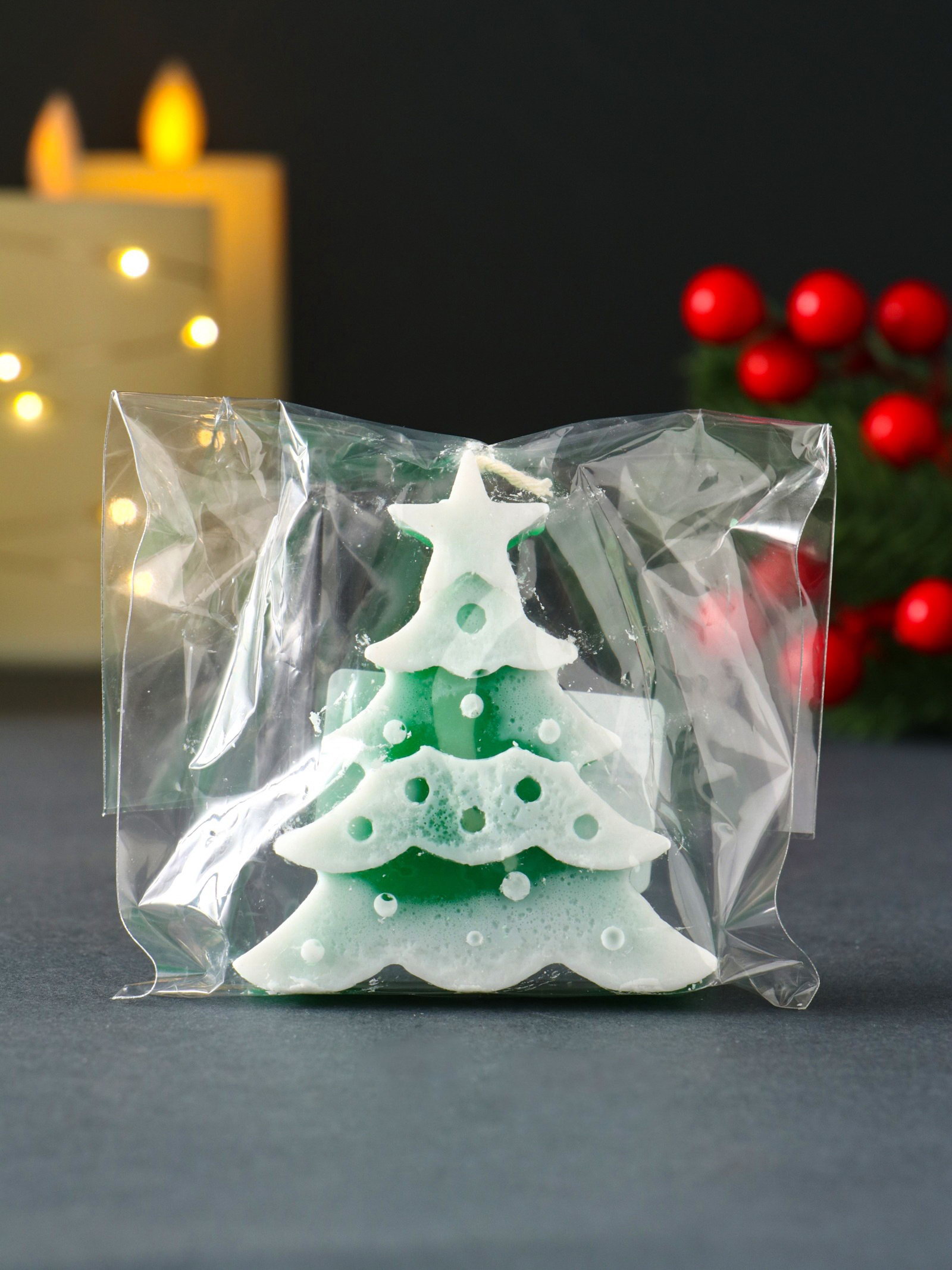 Тематика праздника: Новый год, Рождество Размер упаковки: 7 x 2 x 6 см. tnved: 3406000000 Температурное ограничение: Нет Символ года: Нет Ароматизированные: Нет Цвет: Зелёный Высота свечи, см: 7 Состав: Парафин Форма свечи: Фигурная Темпер. ограничение НЕ НИЖЕ ℃: -10 Темпер. ограничение НЕ ВЫШЕ ℃: +25 Ручная работа: Да Эта зелёная свеча в виде ёлочки создаёт тёплую праздничную атмосферу. Мерцание её огоньков напоминает о самом волшебном времени года, даря ощущение уюта и предвкушения праздника. Особенности