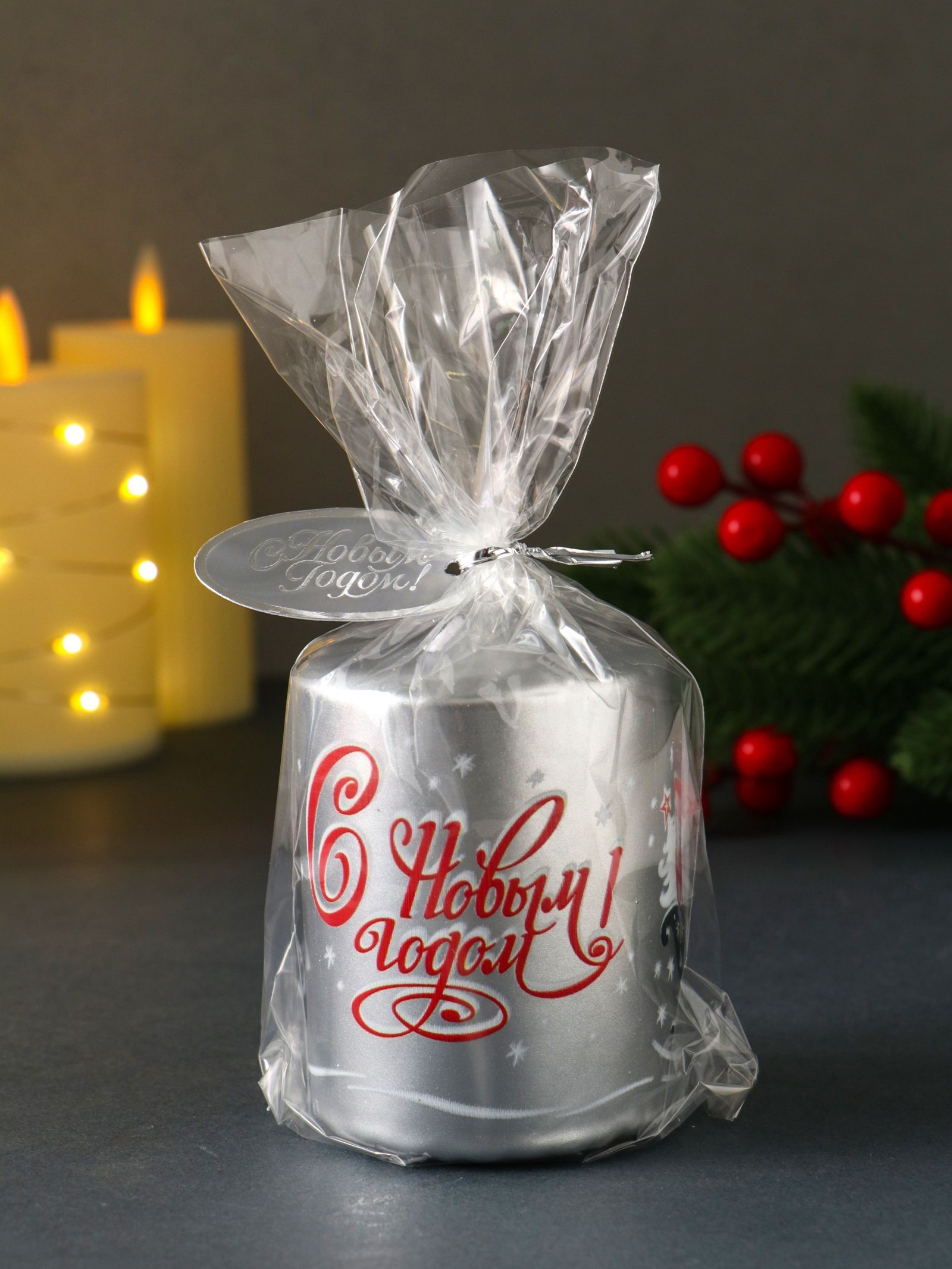 Свеча пеньковая "С Новым годом!", 6x6x8 см, Омский свечной завод, Россия
