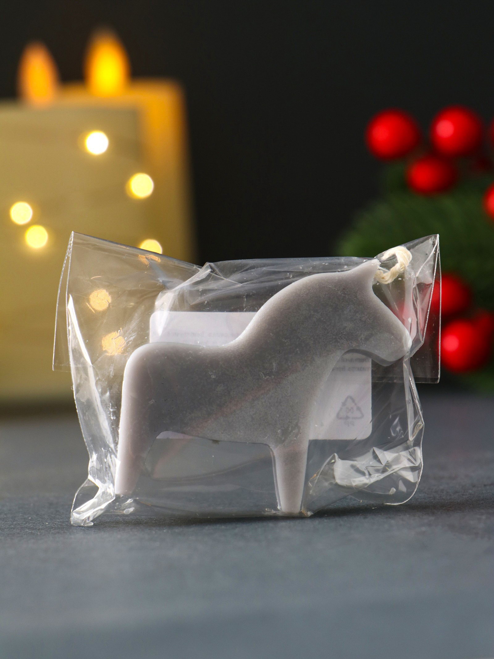 Декоративная свеча новогодняя "Лошадка мини", 55x50 мм, серый, Россия