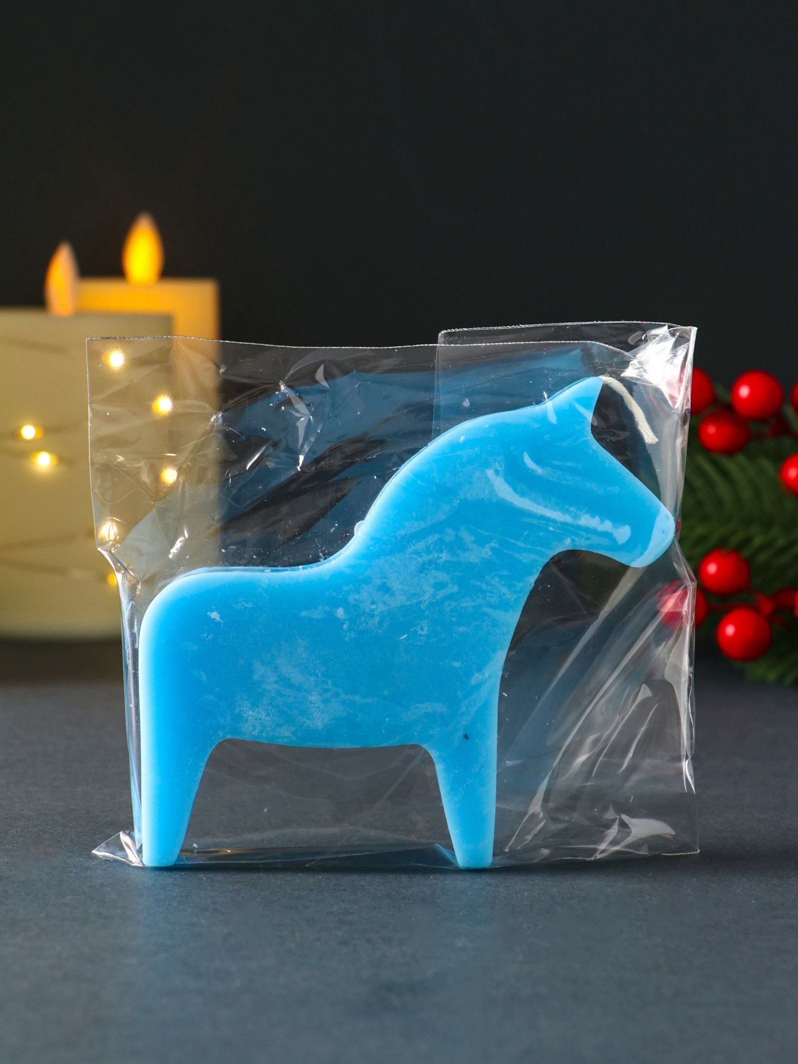 Декоративная свеча новогодняя "Лошадка", 95x105 мм, голубой, Россия